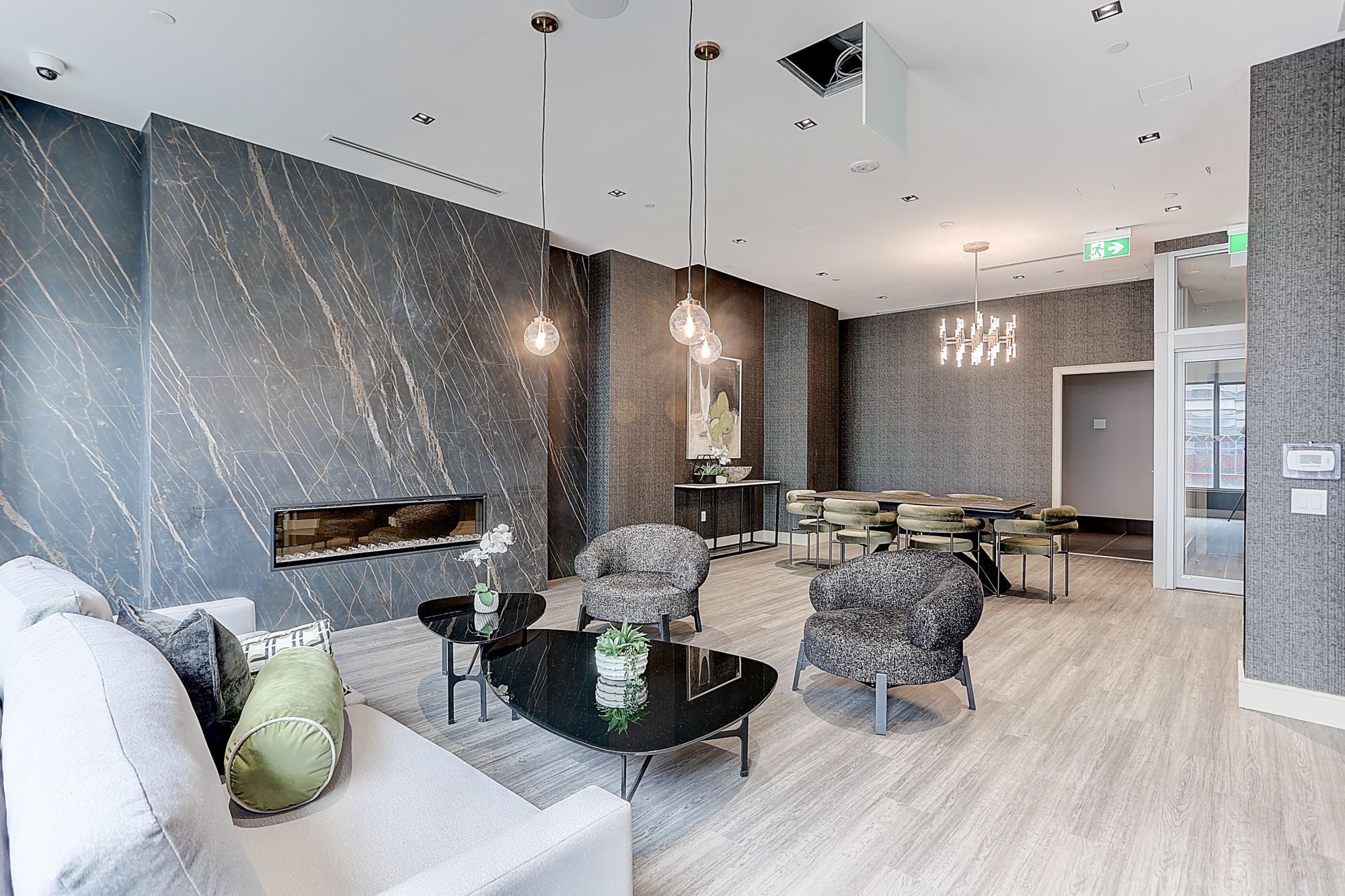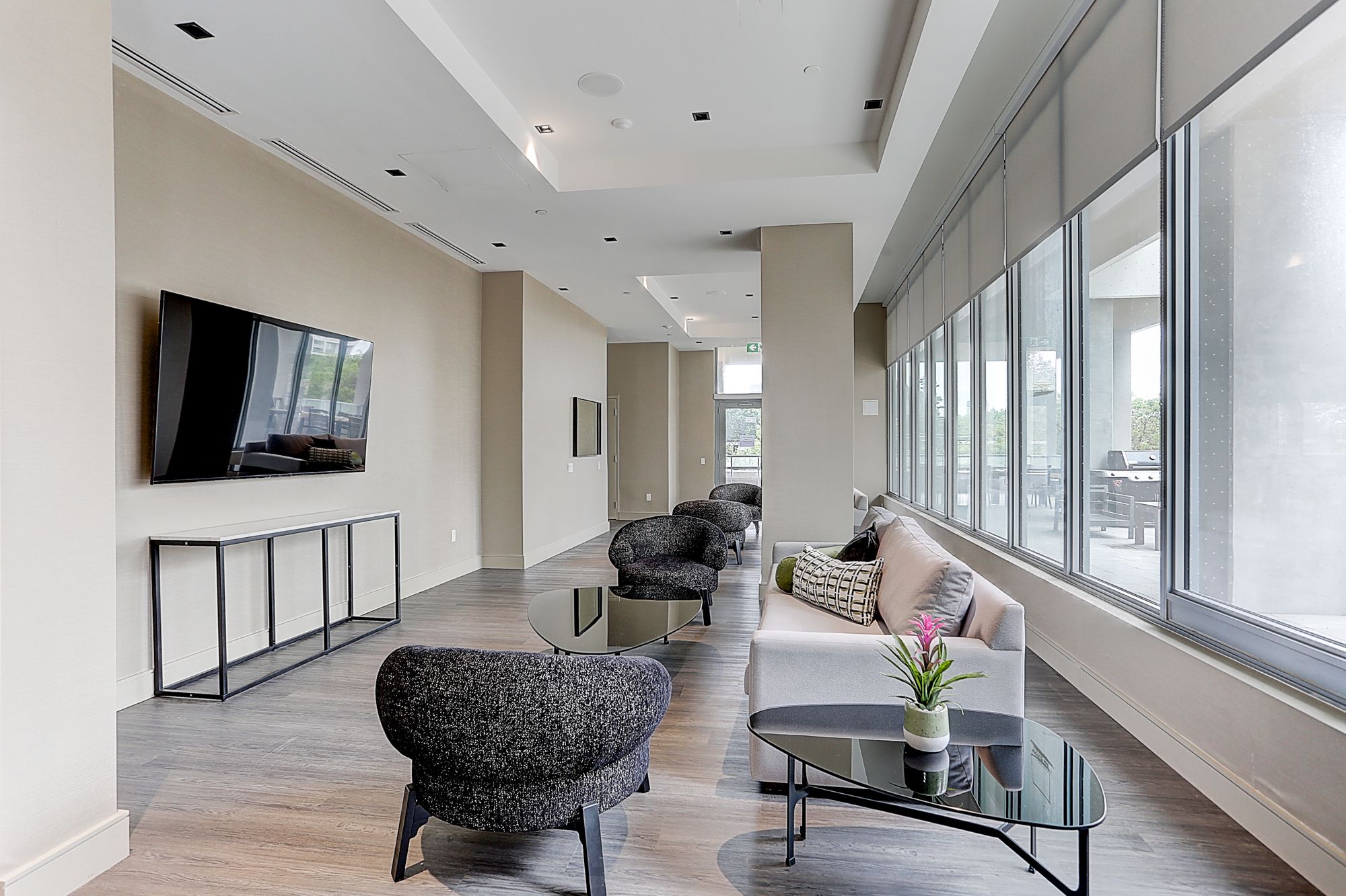 • Open-concept living area with floor-to-ceiling windows and balcony access.