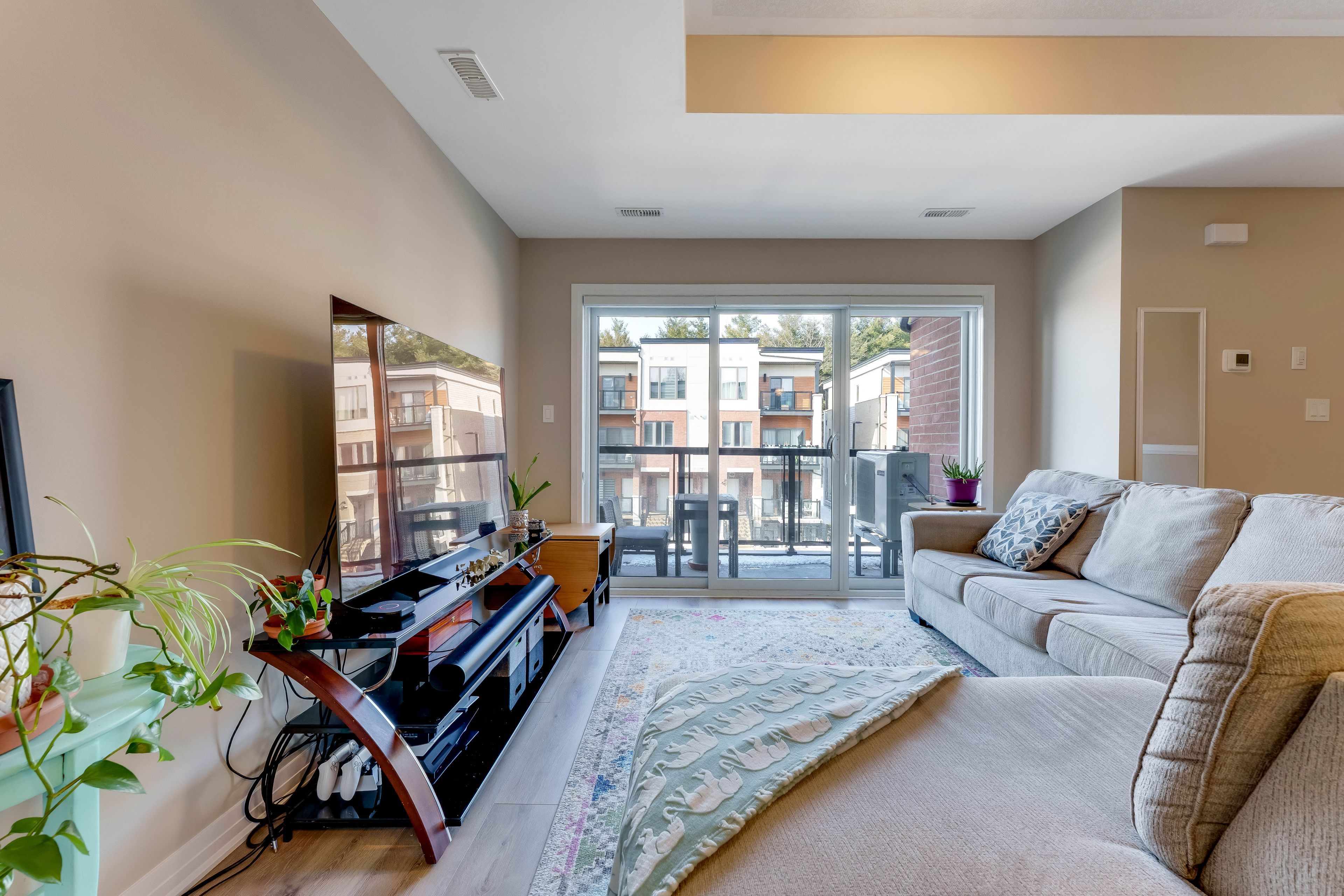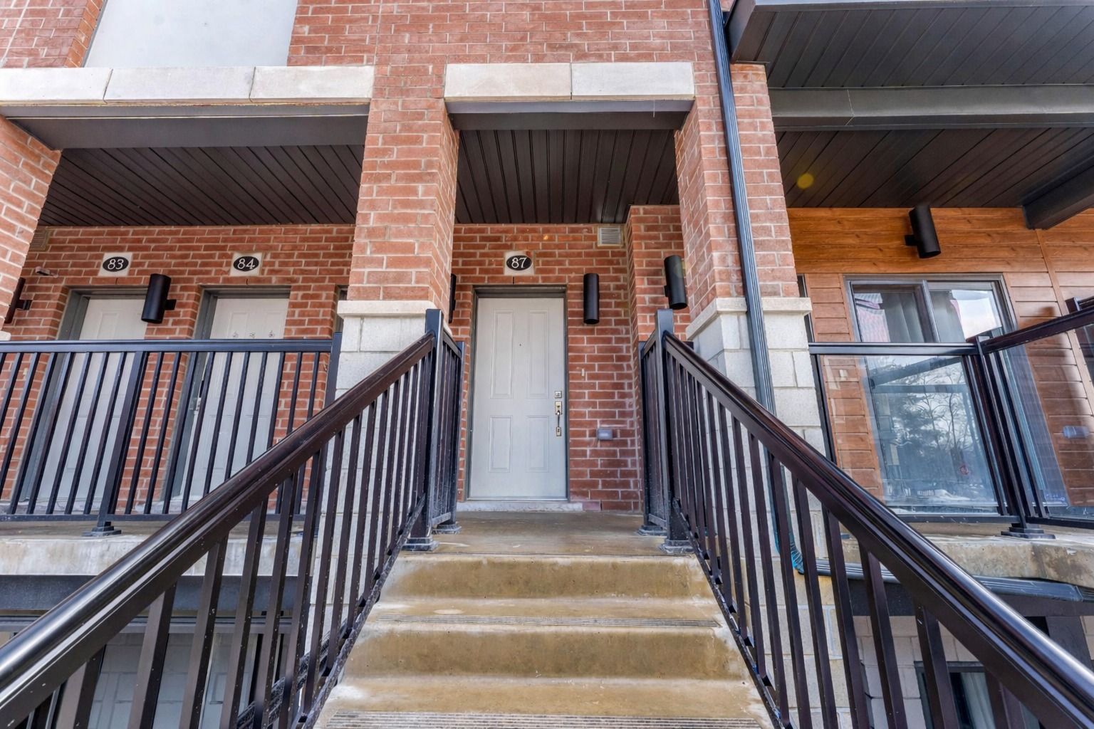 Welcome to 25 isherwood ave, unit 87, cambridge: a beautifully upgraded and meticulously maintained townhome offering modern finishes, thoughtful design, and exceptional convenience. This bright, carpet-free home (carpet on stairs only) showcases pride of ownership throughout and delivers the perfect blend of style and functionality. Step inside to a welcoming open-concept main level designed for both comfortable everyday living and effortless entertaining. The spacious living and dining area is bathed in natural light, creating a warm and inviting atmosphere that instantly feels like home. From the living room, step out onto your private main-level balcony, an ideal space to enjoy your morning coffee, unwind with a book, or relax outdoors after a long day. The well-appointed kitchen features ample cabinetry, generous counter space, and a practical layout that makes meal preparation both easy and enjoyable. Its seamless flow into the dining and living areas enhances the home's airy, connected feel. Upstairs, you'll find two generously sized bedrooms designed for comfort and privacy. The primary bedroom serves as a peaceful retreat, complete with a beautifully upgraded ensuite washroom and its own private balcony - a rare and desirable feature that provides a quiet personal escape. The second bedroom offers flexibility for family, guests, or a home office. With two private balconies, stylish modern upgrades, and a desirable carpet-free design, this home combines low-maintenance living with contemporary appeal. Ideally located close to schools, major highways, shopping centres, grocery stores, parks, and all essential amenities, everything you need is just minutes away. An excellent opportunity for first-time buyers, downsizers, or investors alike. Move-in ready and impeccably presented, this is a home you won't want to miss. Book your private showing today!