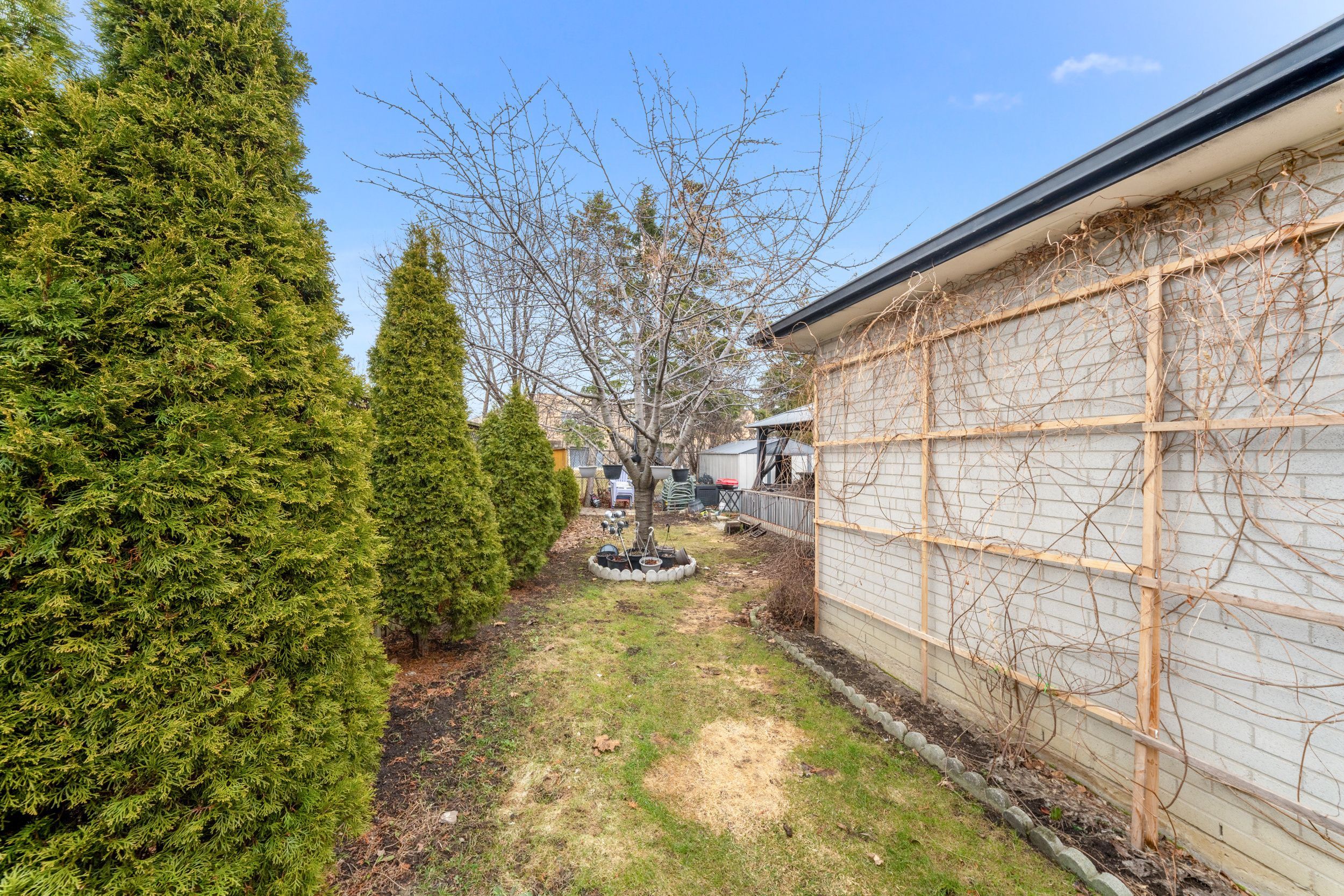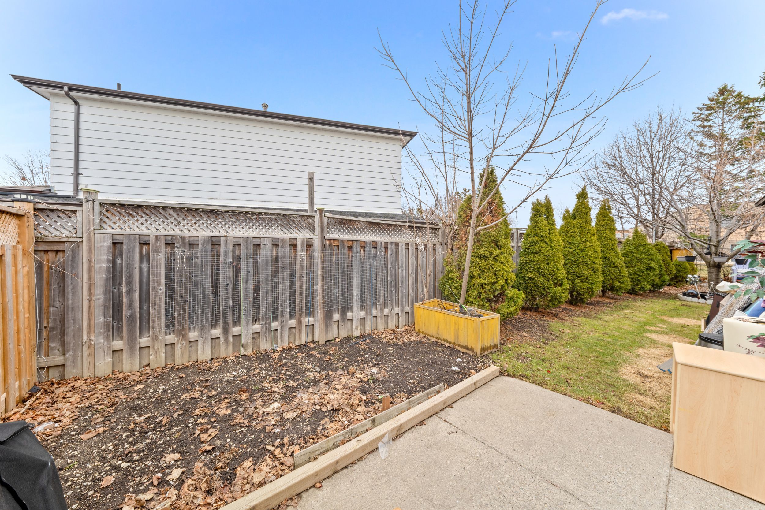• Quiet neighborhood with no sidewalk and serene backyard space.