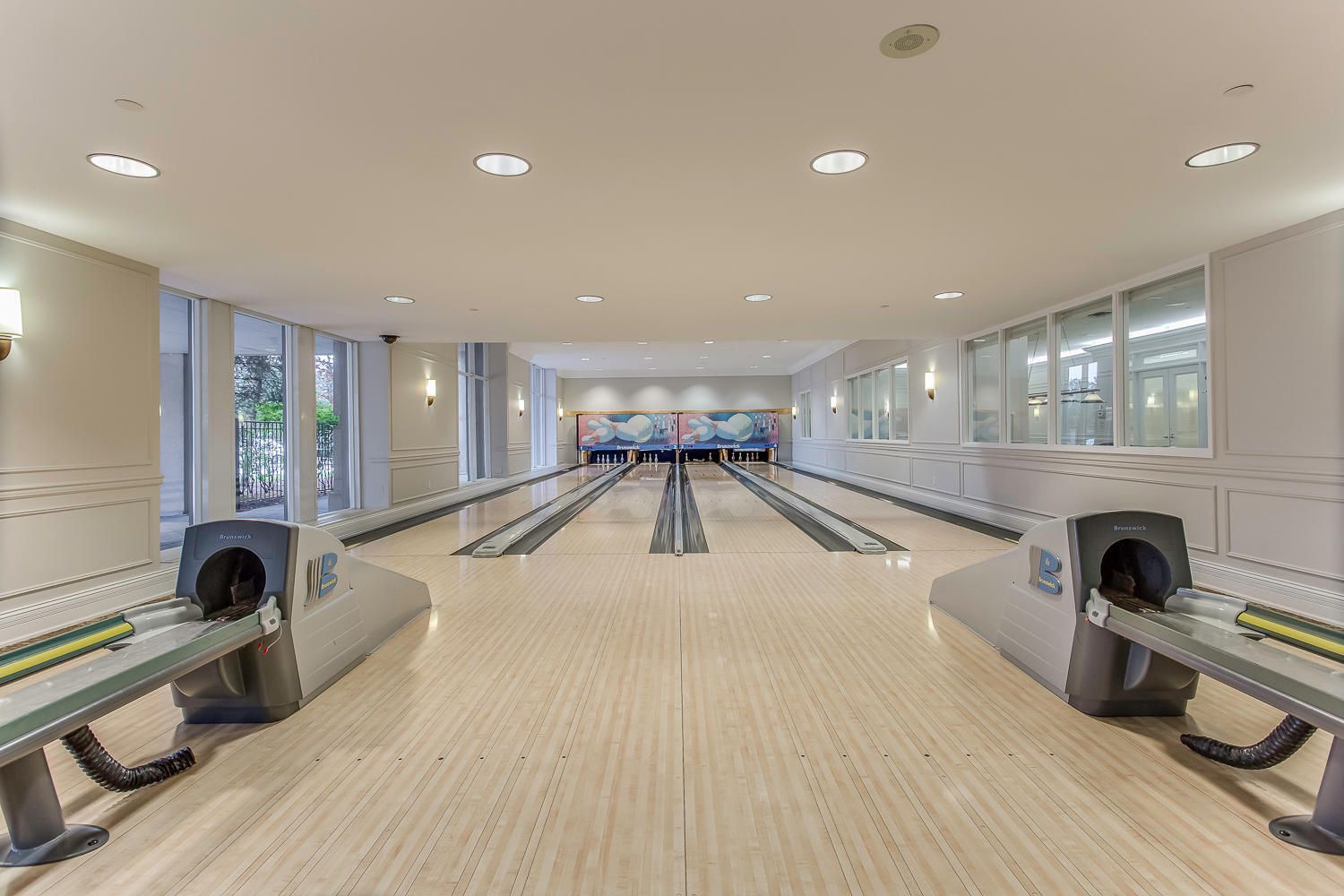 • Building amenities include gym, indoor pool, and bowling alley for leisure.