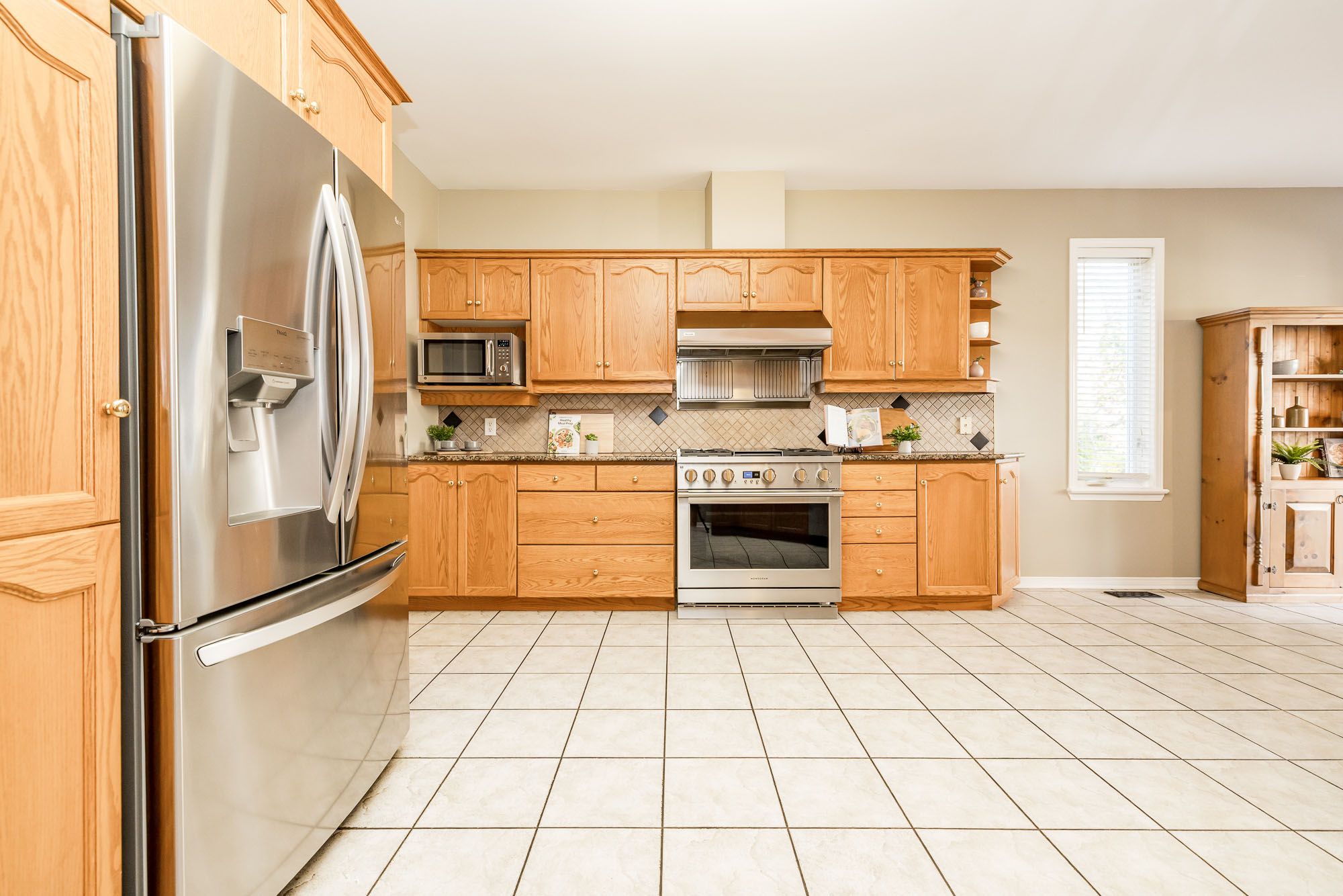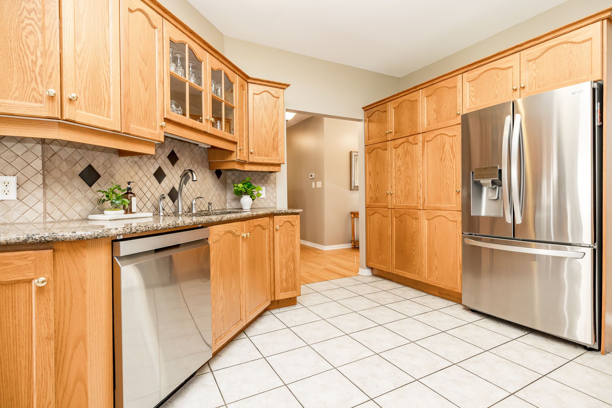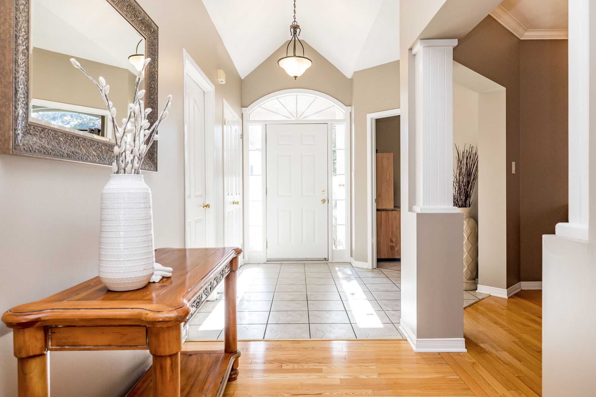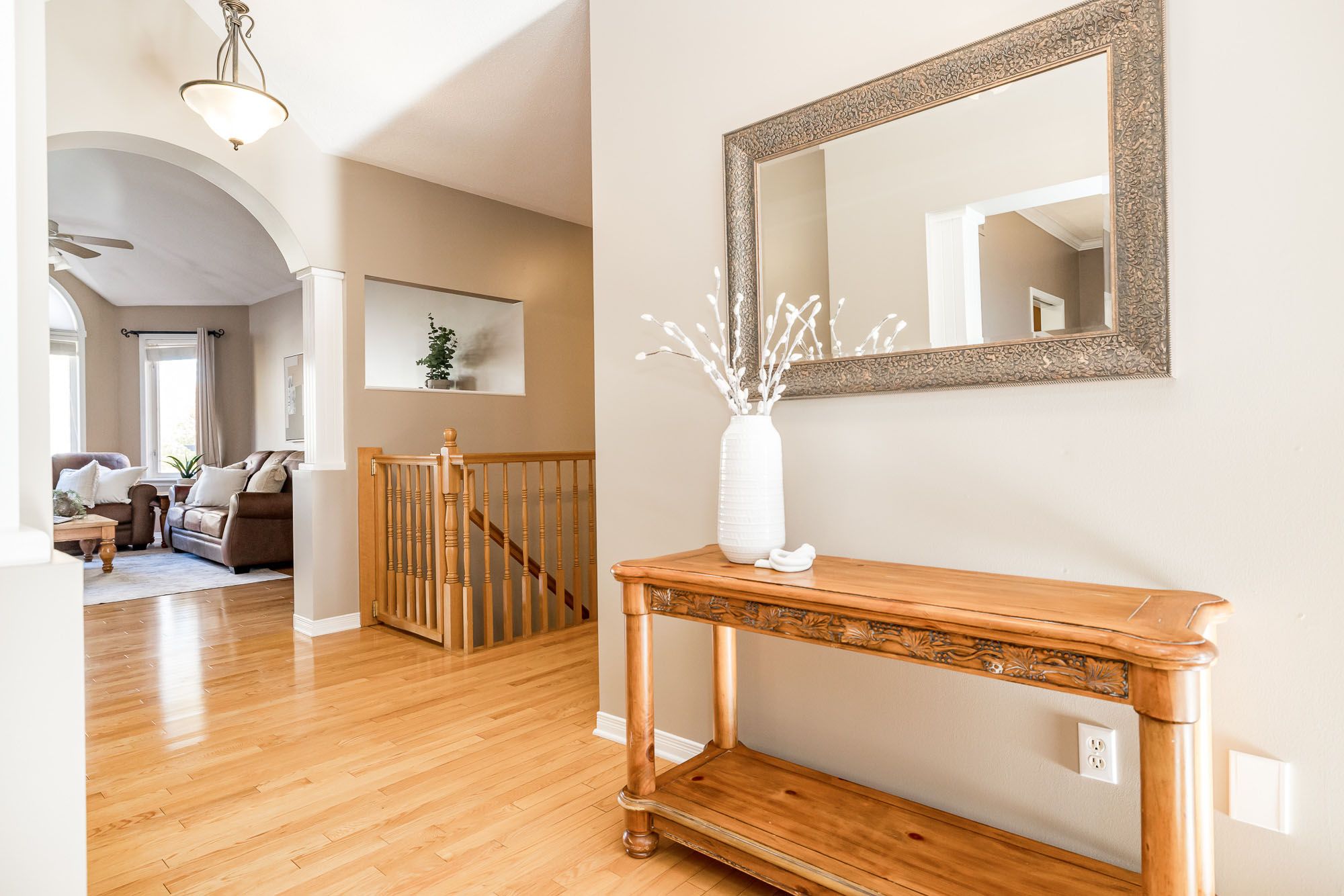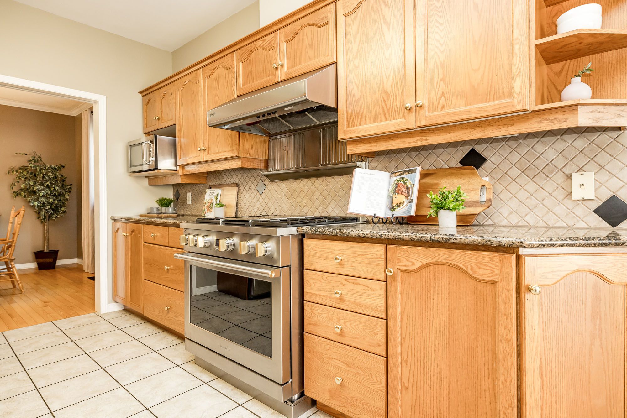 A rare find in crossing bridge - premier bungalow living! Step into a well-built custom bungalow blending main-floor ease, smart accessibility features, and a highly desirable crossing bridge address. Wide hallways, 36" doorways, and exterior ramps support living at every life stage, framed by an oversized, beautifully landscaped lot. Inside, the grand open layout suits modern living and entertaining. The bright family room-with cathedral ceiling and cozy gas fireplace-flows into a generous eat-in kitchen. Granite counters, deep pot drawers, extensive pantry cabinetry, and high-end stainless steel appliances (including a monogram gas stove with commercial-grade hood) make cooking a joy. A separate dining room welcomes family meals, shared laughter, and celebrations. The front bedroom serves as a home office, while the private primary suite boasts a walk-in closet and spa-like 4-piece ensuite with corner tub and separate shower. The second bedroom has cheater access to the second full bathroom; both feature durable granite countertops. A practical mudroom with direct ramp access from the garage ensures daily convenience. Summers shine here in the fully fenced backyard: interlock patios, heated saltwater pool (consistent 4'6" depth), pool house with retractable awning, and pergola-perfect for quiet mornings, family play, or warm summer evenings with friends. The lower level, with bathroom rough-in, offers potential for a gym, home theatre, games area, and generous storage. Bungalows of this size, quality, and condition rarely come available in crossing bridge. Enjoy spacious main-floor living steps from parks, pathways, restaurants, schools, and amenities in this friendly, community-focused neighbourhood. (a/c 2020, pool liner 2024, gaf roof 2016, monogram stove 2022, front lawn irrigation )