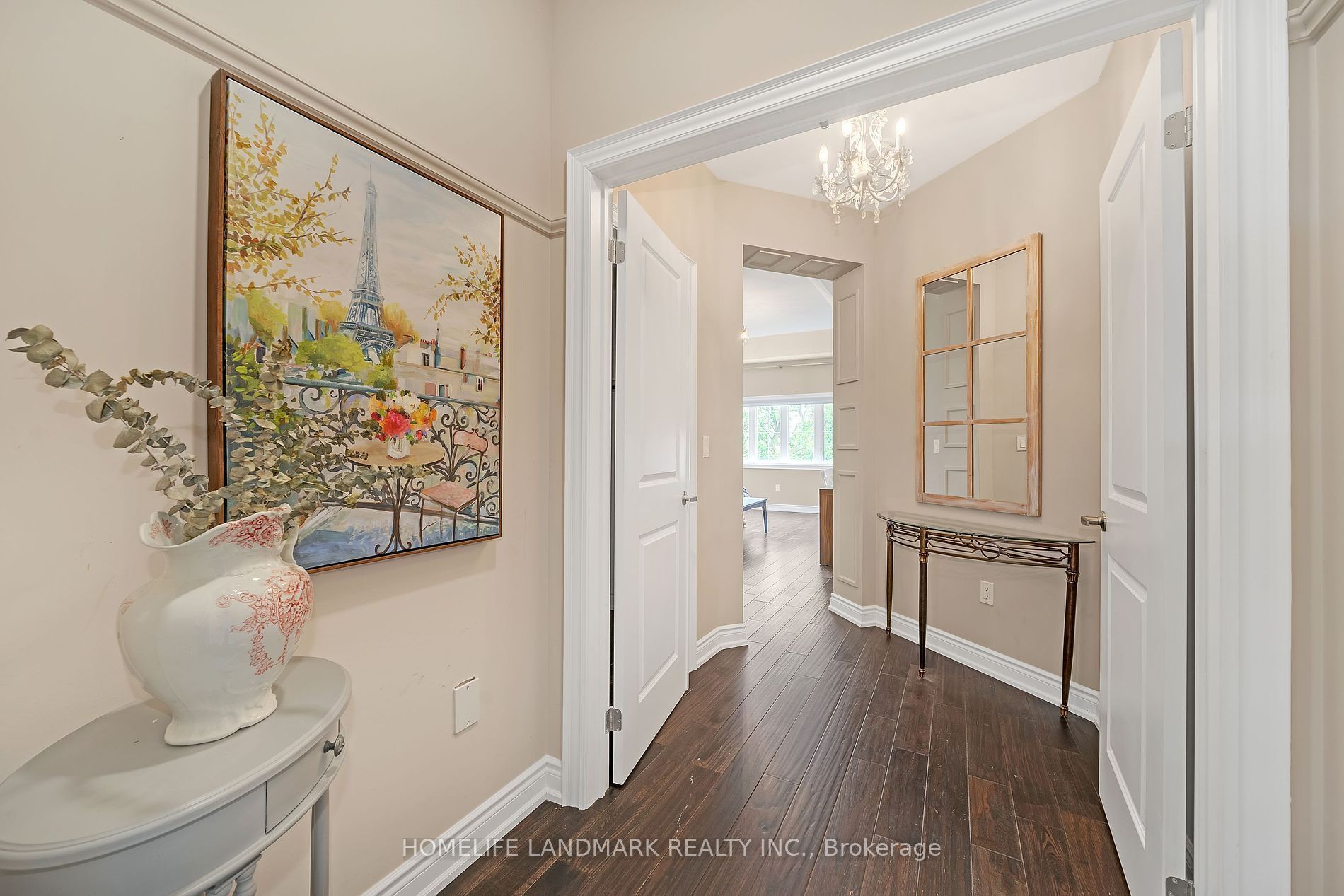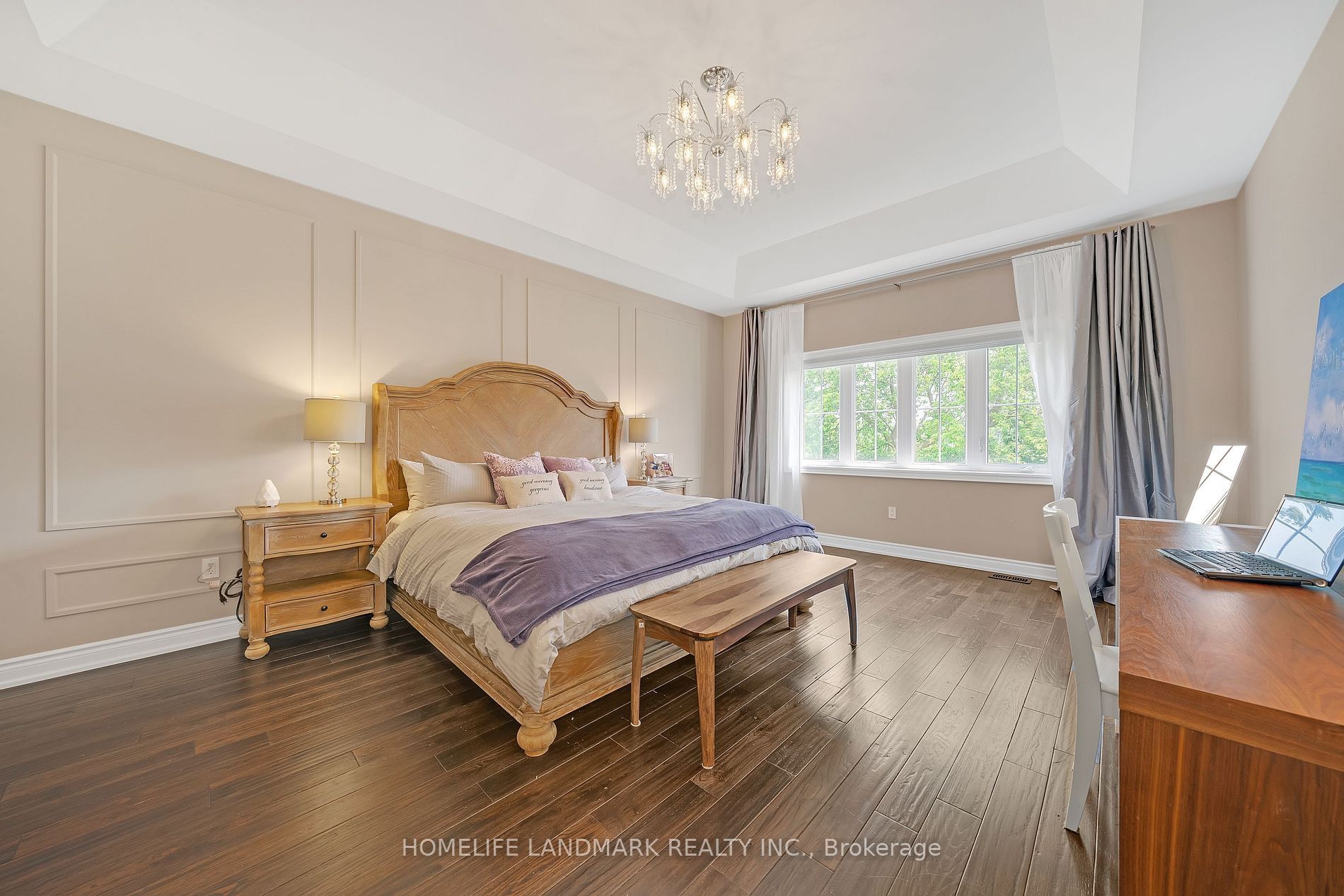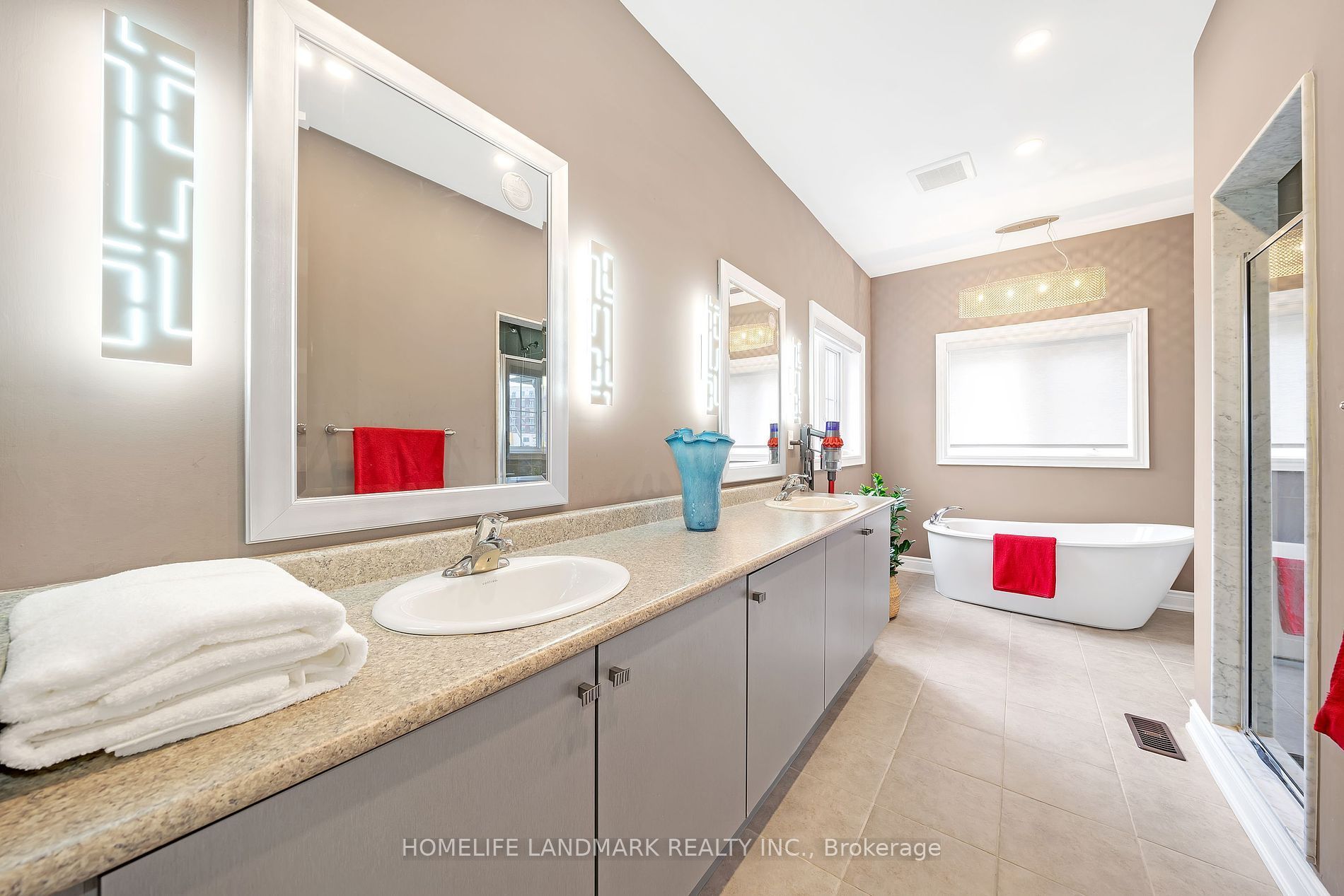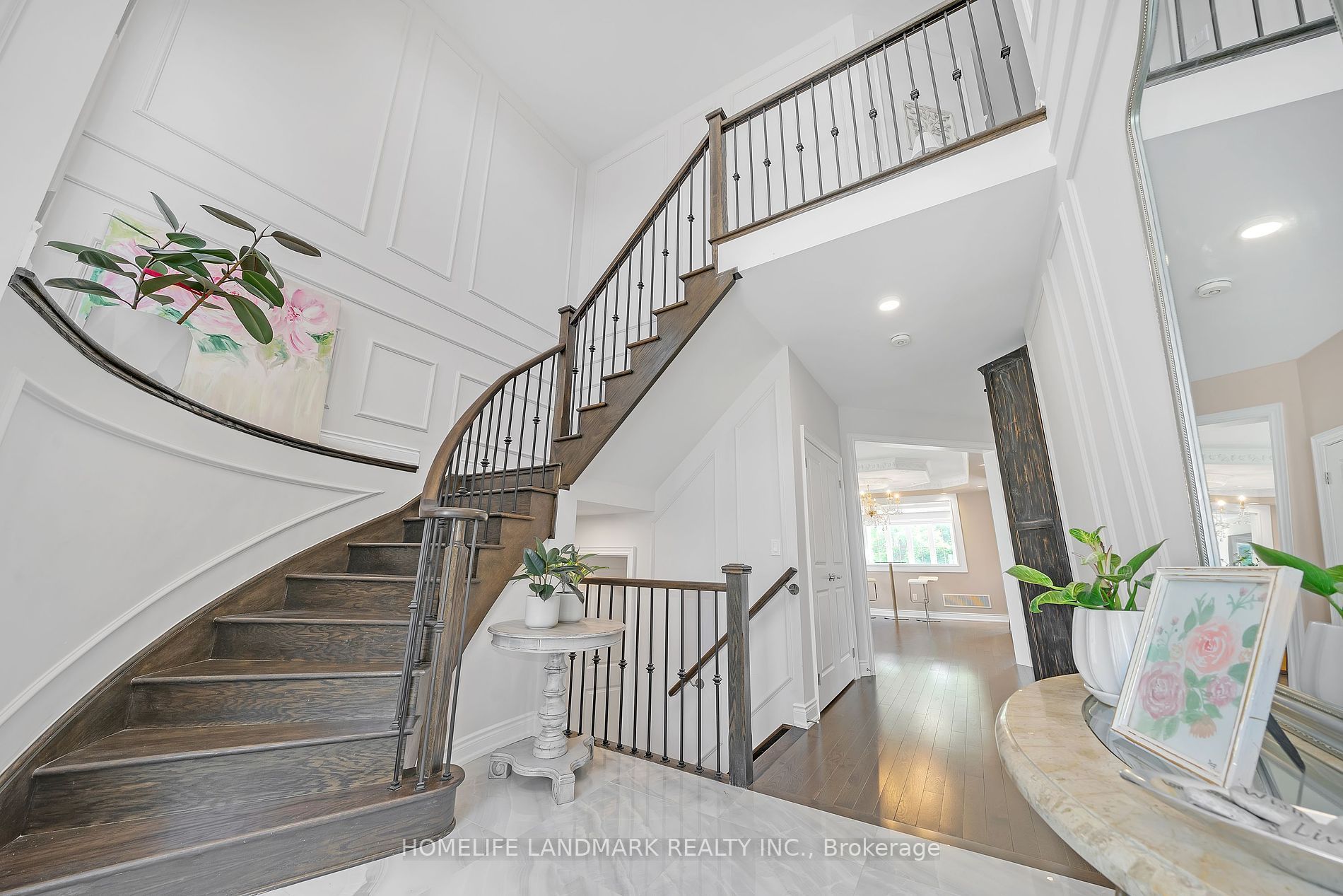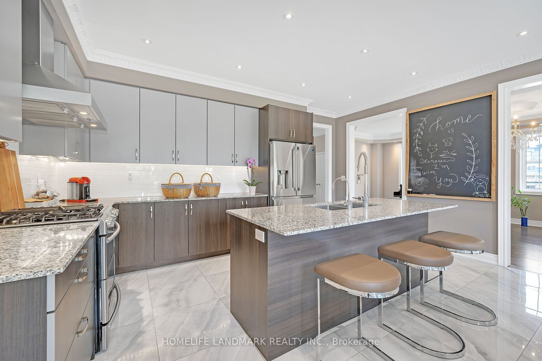 Incredible opportunity to own a luxury home in a prime location! Nestled on a rare premium ravine lot with only one neighbor and a park next door, this stunning 4+1 bedroom, 4-bathroom executive residence offers the perfect blend of luxury, privacy, and versatility in the heart of sharon village. Step inside to find smooth ceilings throughout, soaring 9' ceilings on both main & second floors, crown moulding, wainscoting walls, hardwood floors, and pot lights illuminating the living room, family room, and kitchen. Designer lighting fixtures and zebra blinds enhance the upscale ambiance. The gourmet kitchen features stainless steel appliances (2018), a powerful 800 cfm range hood (2022), gas stove, subway tile backsplash, and opens to serene ravine views. The professionally finished basement offers a separate side entrance, full kitchen, laundry, and private bedroom - perfect for extended family or rental income potential. Exterior upgrades include: interlocking driveway, sidewalk & backyard, composite deck with glass railing, professional landscaping, garage door opener, and a fully fenced backyard. Comfort upgrades: newer central a/c, air filtration system, and water softener. This home combines luxury with convenience, located minutes from shopping centers, conservation areas, and easy highway 404 access for a quick commute. With its fantastic location, exceptional upgrades, and spacious layout, this is the one you've been waiting for!