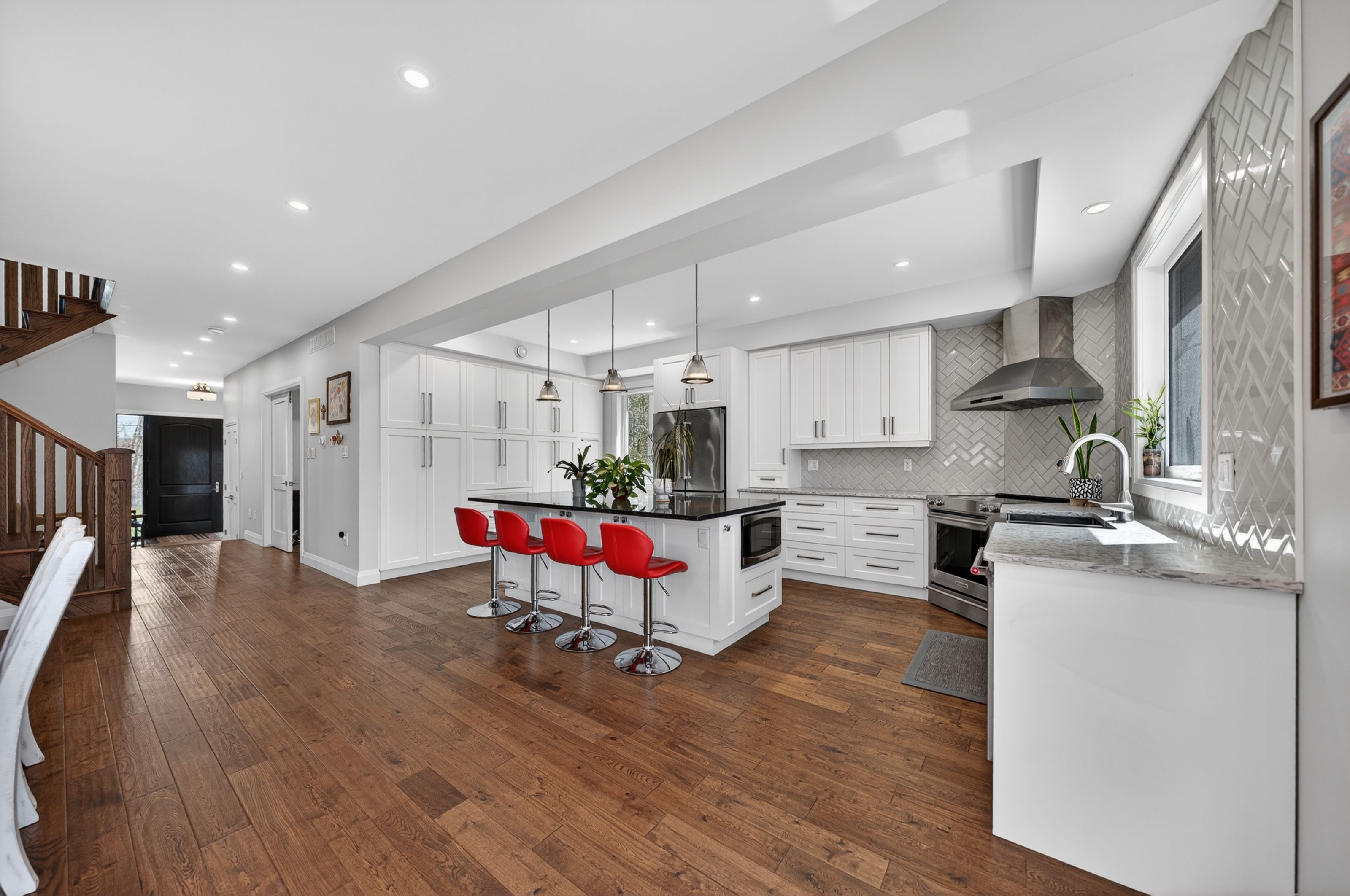• Bright bedrooms with walk-in closets and ensuite bathrooms, two with heated floors.