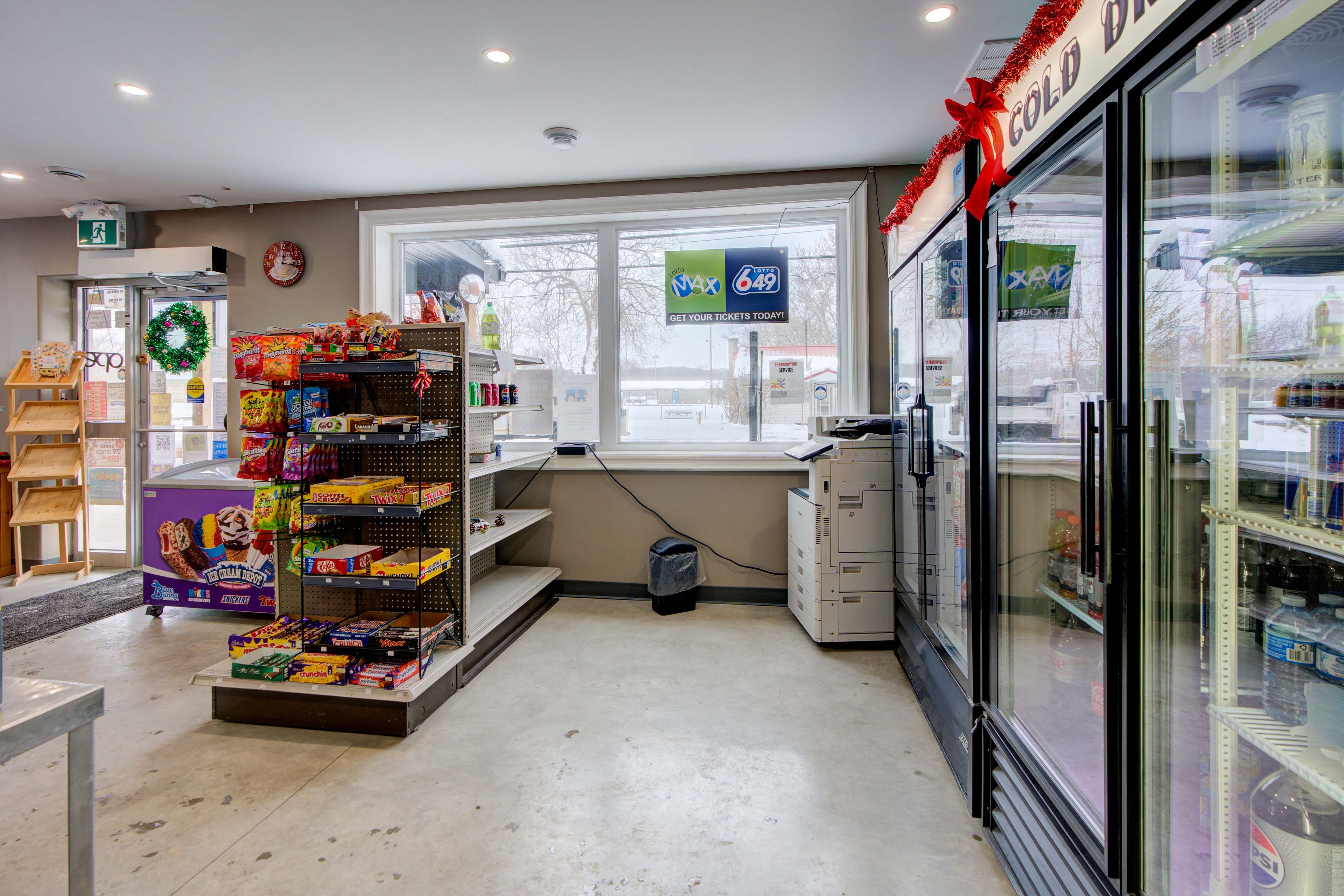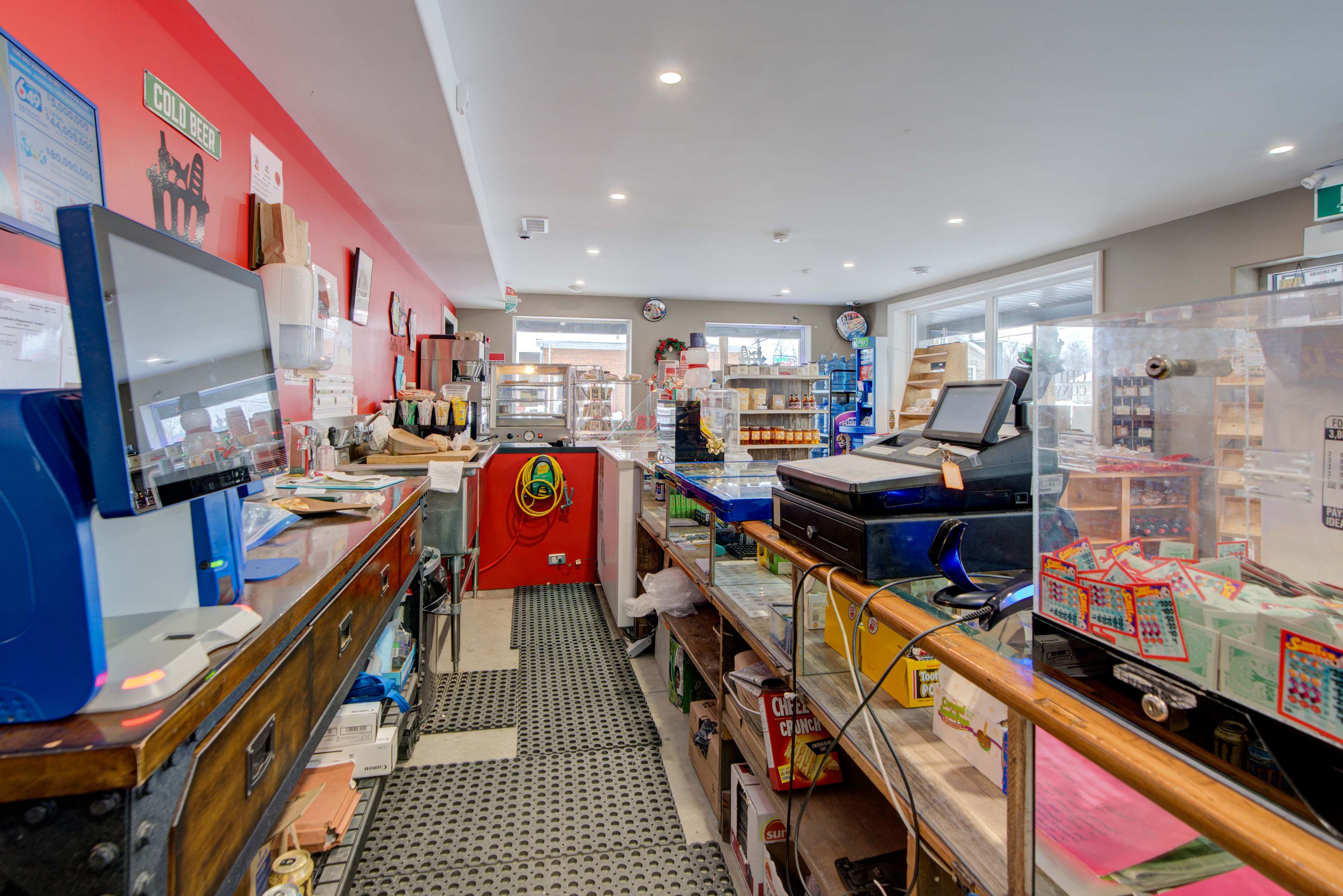 Convenience store and food service location in the village of lyn, ontario, located between brockville and mallorytown. The premises are currently operated as a convenience retail business offering freshly made pizza and hot food, subs, burgers, poutine, baked goods, coffee, ice cream, seasonal frozen treats, groceries and snacks, lottery services, propane exchange, firewood, ice, and related retail items. The business holds agco approvals for beer, wine, and ready-to-drink beverages, as well as olg authorization, with licence transfers subject to cpic approval. A newer operation that is performing well, with strong upside and opportunity for expansion under new ownership. The main floor layout is efficient and purpose-built, featuring a large retail area, kitchen and food preparation spaces, cooler, storage rooms, washroom, and service areas. Fixtures and equipment are included; inventory to be purchased separately.