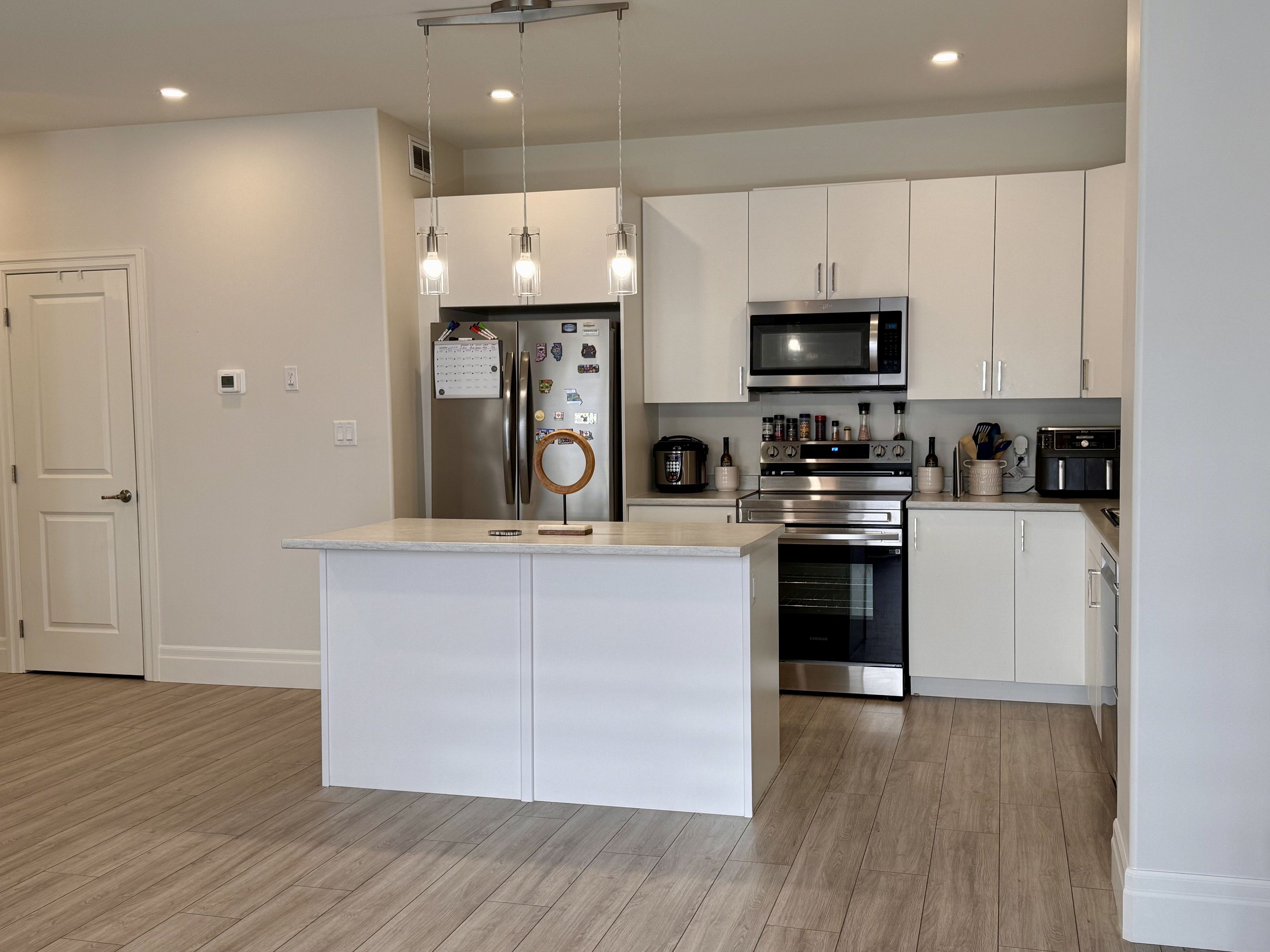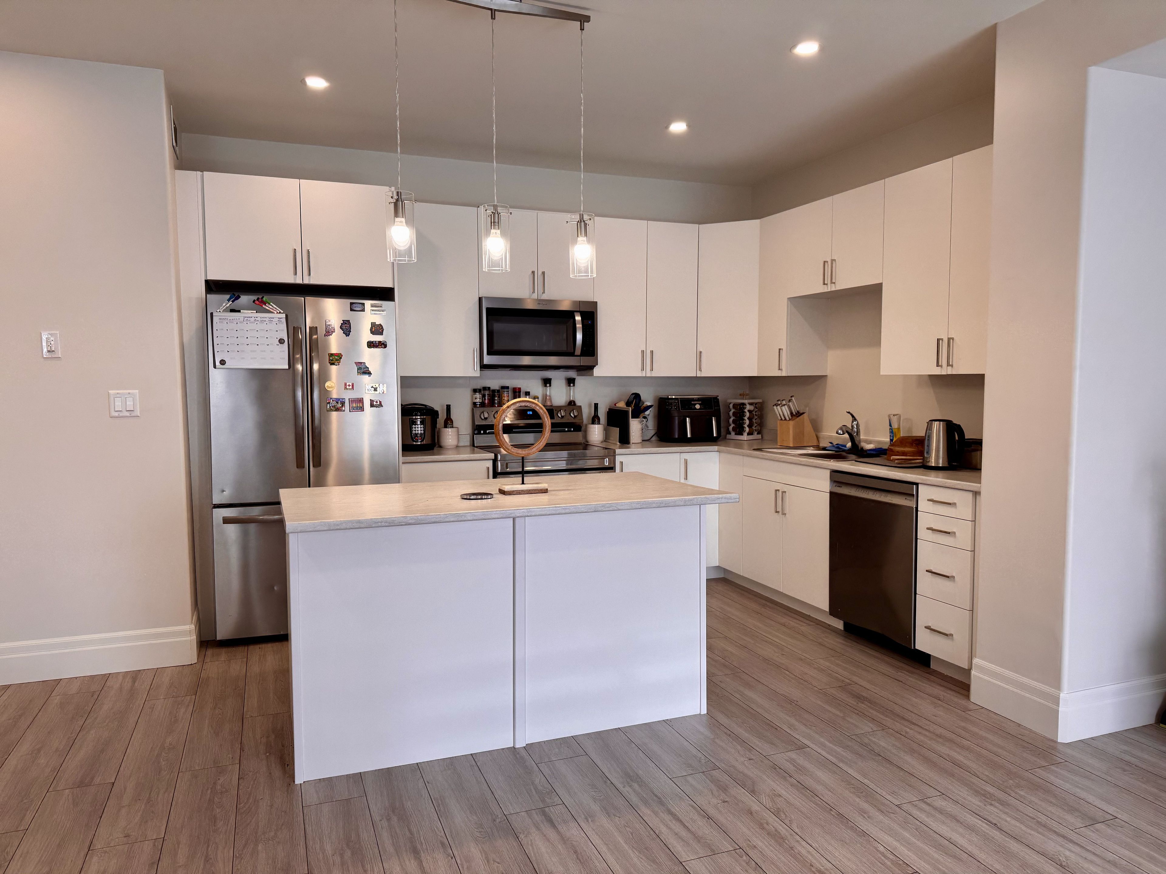 • Sleek kitchen with stainless steel appliances for easy cooking.