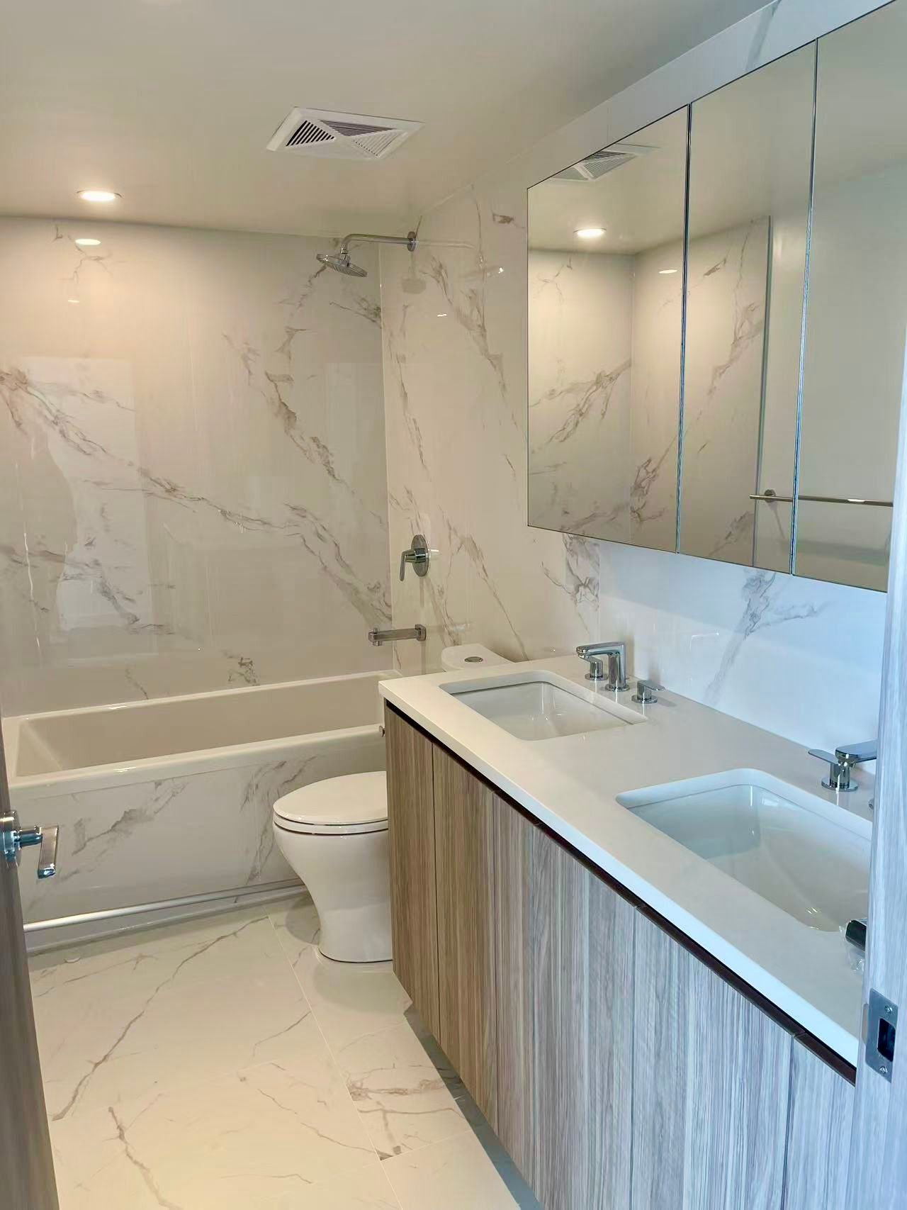 Modern 3-bedroom corner suite at saisons by concord. Approximately 1,100 sq. Ft. Plus 200 sq. Ft. Balcony, south-west exposure with cn tower and city skyline views. Features 9-ft ceilings, engineered hardwood floors, custom closets, and a modern kitchen with miele appliances, quartz countertops, and centre island. Primary bedroom with 5-piece ensuite and walk-in closet. Prime location steps to bessarion & leslie subway stations, parks, shops, and restaurants. Easy access to hwy 401/404 and downtown. Luxury amenities. Move-in ready.