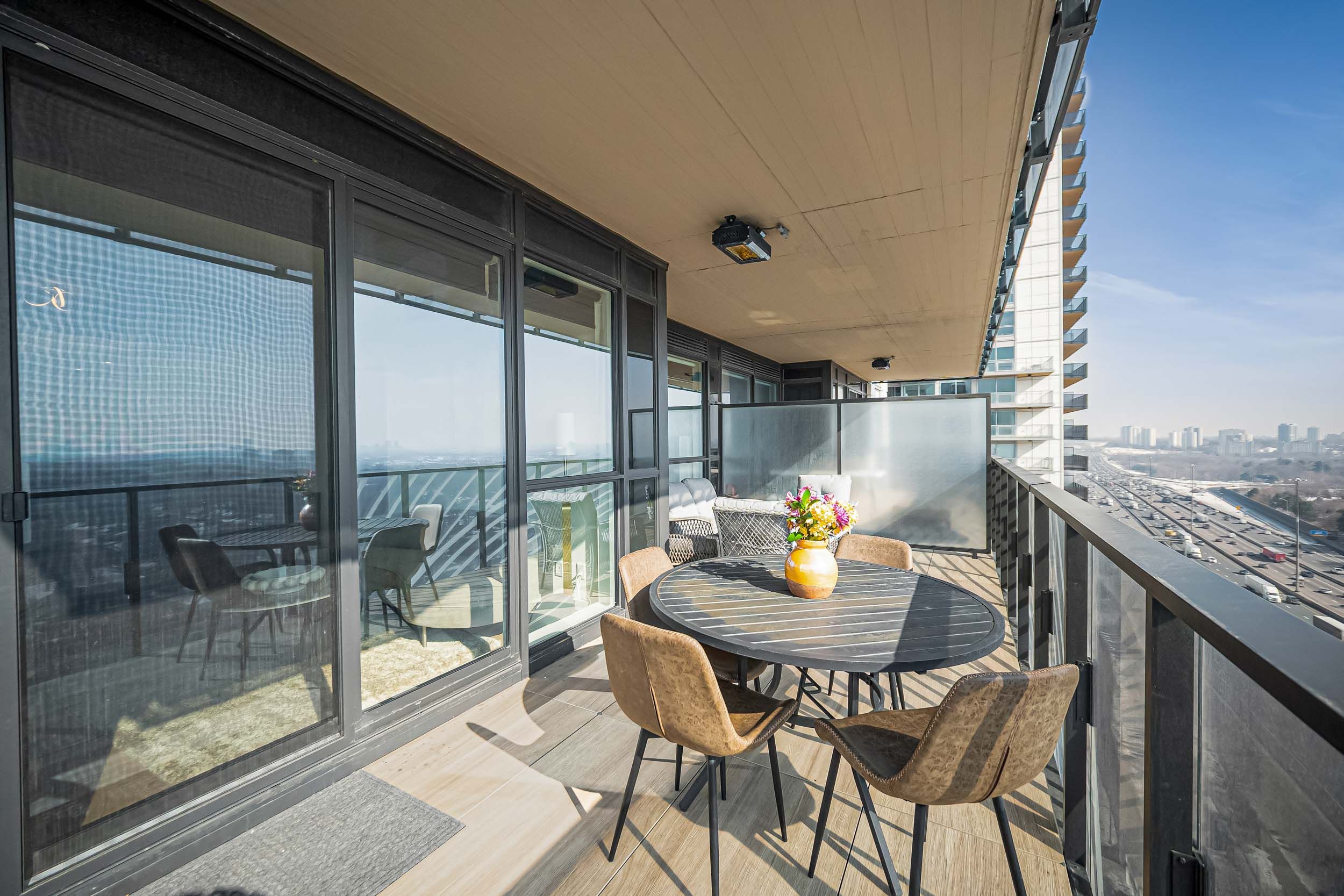 • Floor-to-ceiling windows provide stunning views of the CN Tower and skyline.