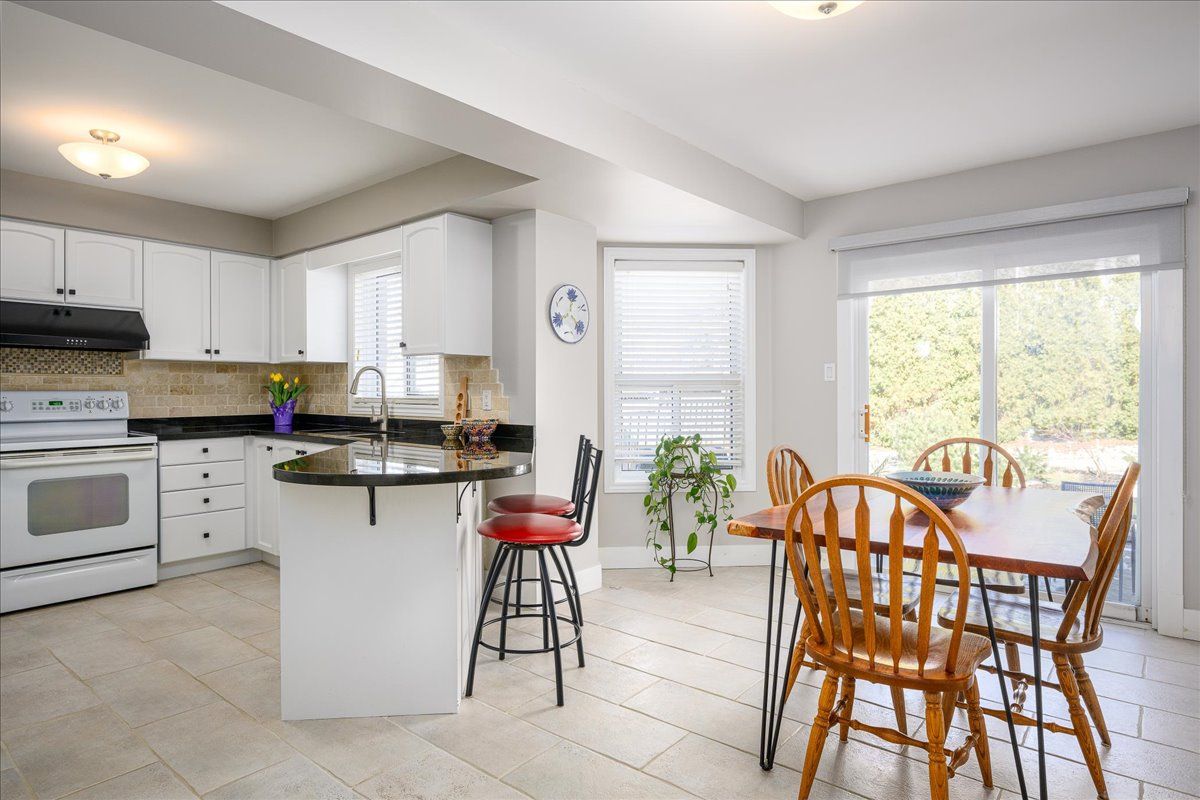 • Bright kitchen with granite countertops and breakfast area overlooking the backyard.