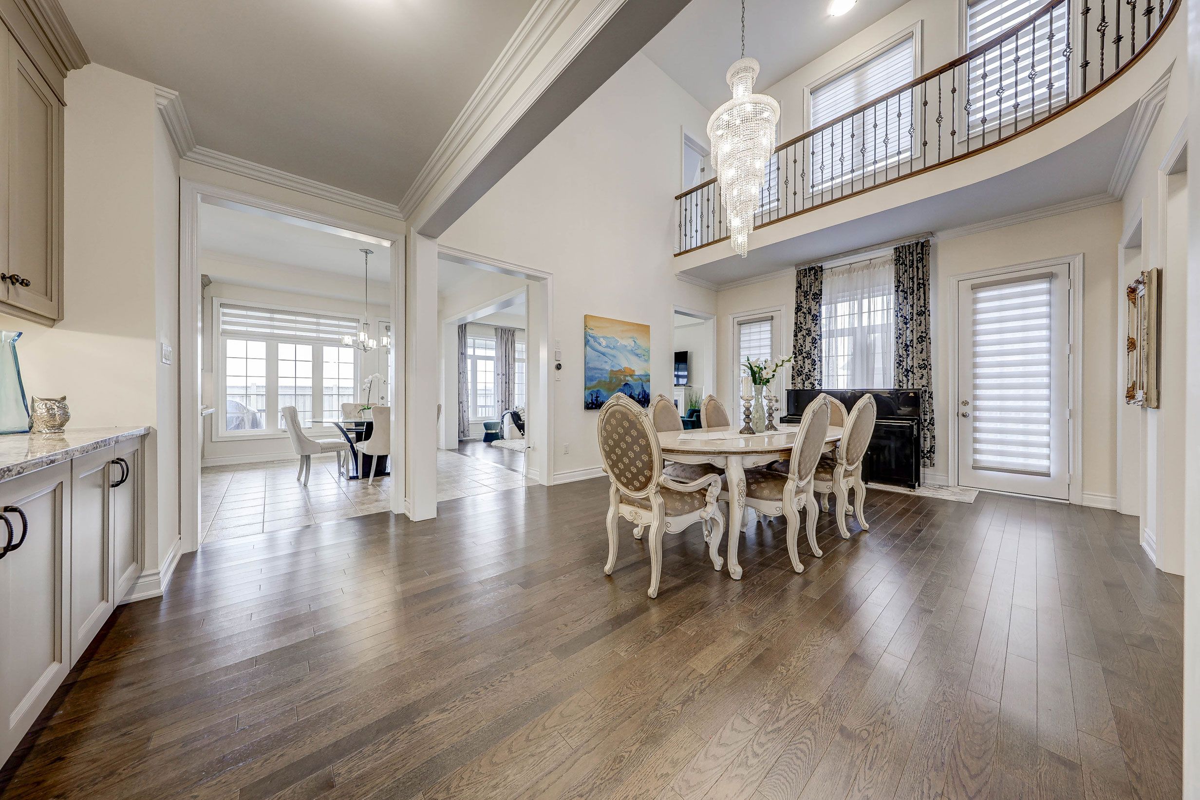 An exceptional opportunity in the prestigious gates of nobleton! This impeccably upgraded 4+1 bedroom, 6-bathroom residence offers luxurious living with every bedroom featuring its own private ensuite and walk-in or double closet. Boasting over $500k in upgrades, this stunning home features 10 ft ceilings on the main floor and 9 ft ceilings on the second floor and basement, creating a bright and elegant atmosphere throughout. The main level is designed for both everyday living and entertaining, showcasing a grand dining room with 20 ft ceilings and crystal chandelier, a formal living room with coffered ceiling, and an inviting family room with gas fireplace open to the kitchen. The gourmet eat-in kitchen features jennair built-in appliances, granite countertops, a large centre island/breakfast bar, walk-in pantry, coffee station, and a functional servery with walk-out to the covered loggia. Additional highlights include a main floor office, hardwood floors throughout, 8 ft doors, and oak stairs with custom iron pickets. Upstairs, all bedrooms are generously sized with private ensuites and walk-in closets. The primary suite offers his & hers walk-in closets, a spa-like 6-piece ensuite, and walk-out to a private south-facing balcony. Enjoy outdoor living with a wraparound covered loggia and bbq line, overlooking the private backyard and green space. The finished basement with separate entrance includes a bedroom, bathroom, its own laundry, and ample space for extended family or income potential. A rare offering in a serene, family-friendly community just minutes to king city amenities.