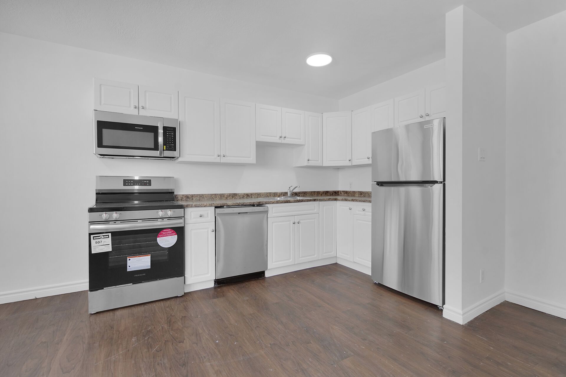 • Updated second-floor unit with two bedrooms and a modern bathroom.
