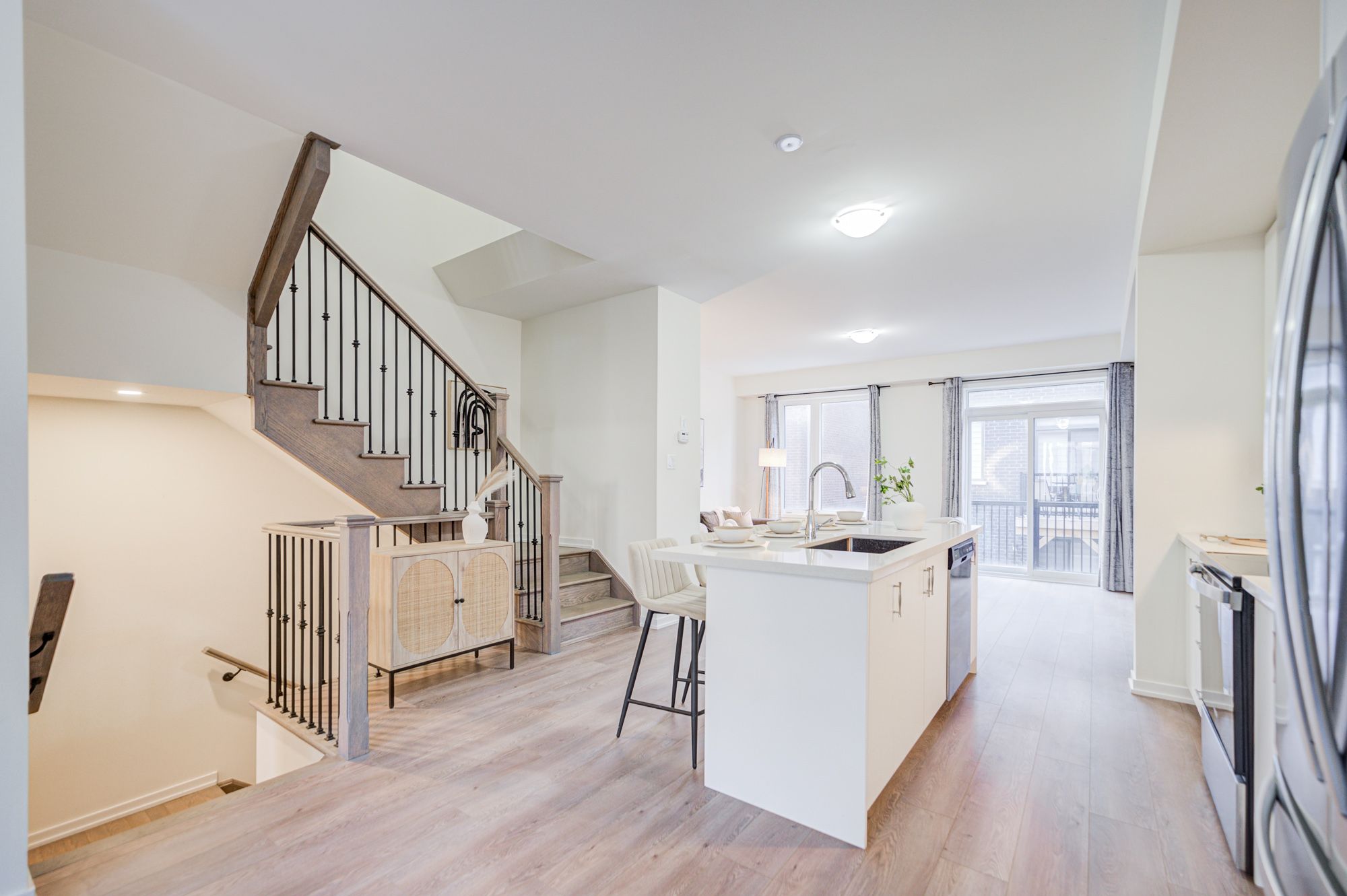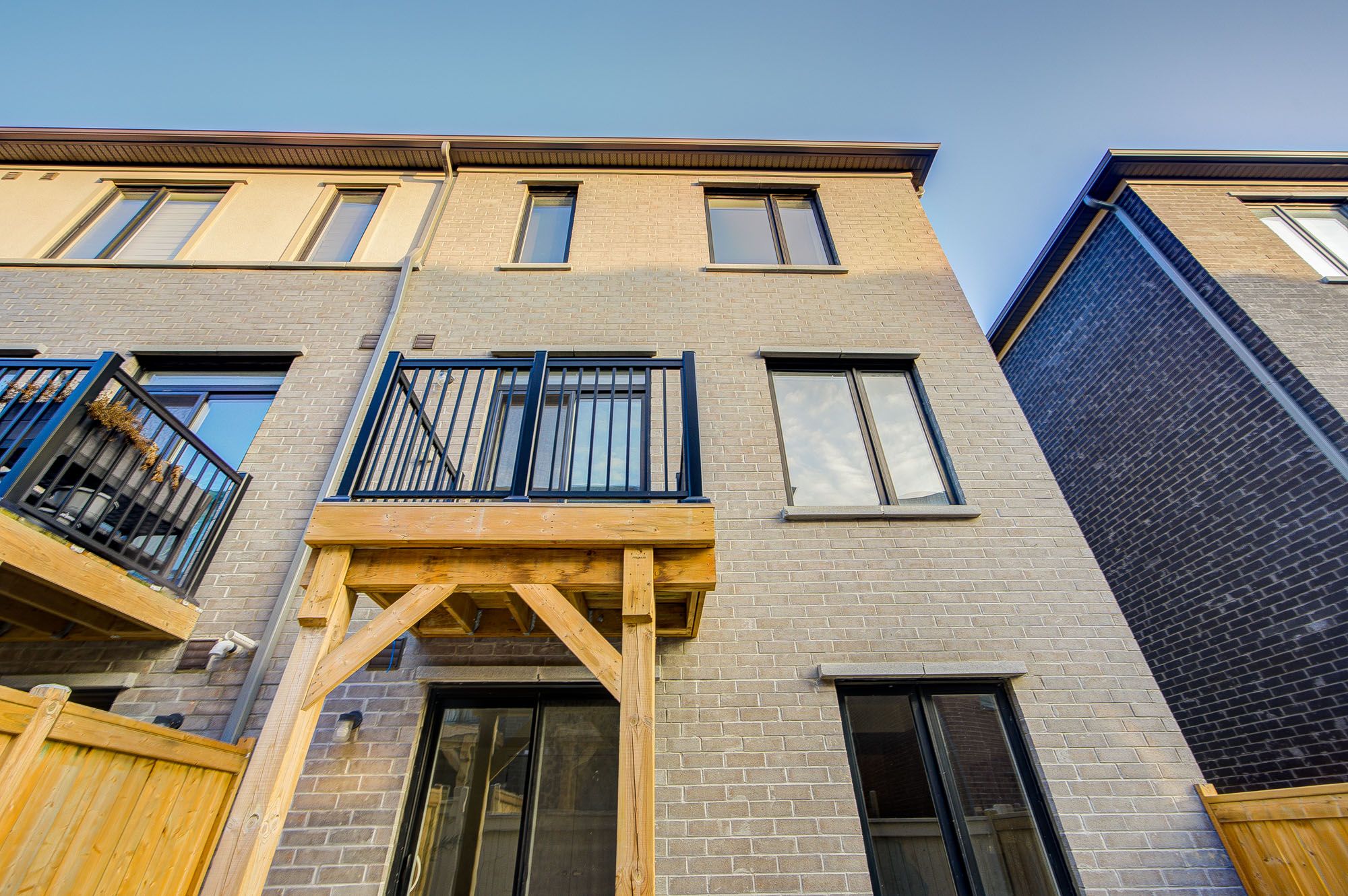 Luxurious end unit freehold townhouse, only 2 years new, built by renowned builder treasure hill, nestled in the highly sought-after patterson community in vaughan. Featuring a bright open-concept layout with soaring smooth ceilings, hardwood flooring throughout the main and upper levels, and oversized windows that fill the home with natural light. The upgraded kitchen showcases stylish countertops and backsplash, a large center island, and seamlessly connects to a spacious living area with terrace access, perfect for enjoying backyard views. Upstairs offers generously sized bedrooms, including a luxurious primary suite with a fully upgraded 5-piece ensuite and walk-in closet. Additional bedrooms are spacious and functional, with the third bedroom featuring its own private terrace. The finished lower level includes walk-out access to the backyard, and direct access to the garage, providing additional convenience and flexibility. Located in a wonderful family-friendly neighbourhood, with easy access to top-rated schools, community centres, parks, scenic trails, shopping centres, public transit, and major highways such as highway 407 and highway 7.*low monthly potl fee of $161. 96 covers snow removal and landscaping of common area