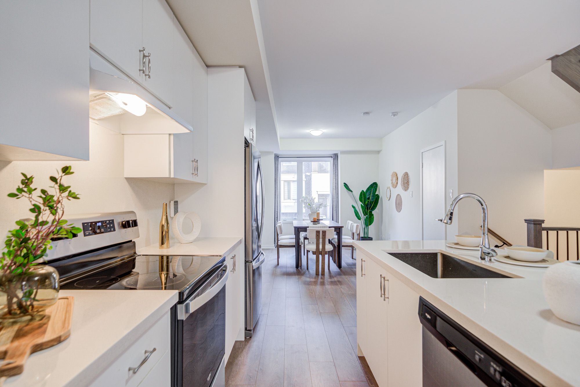 • Stylish kitchen with upgraded countertops, large island, and easy terrace access.