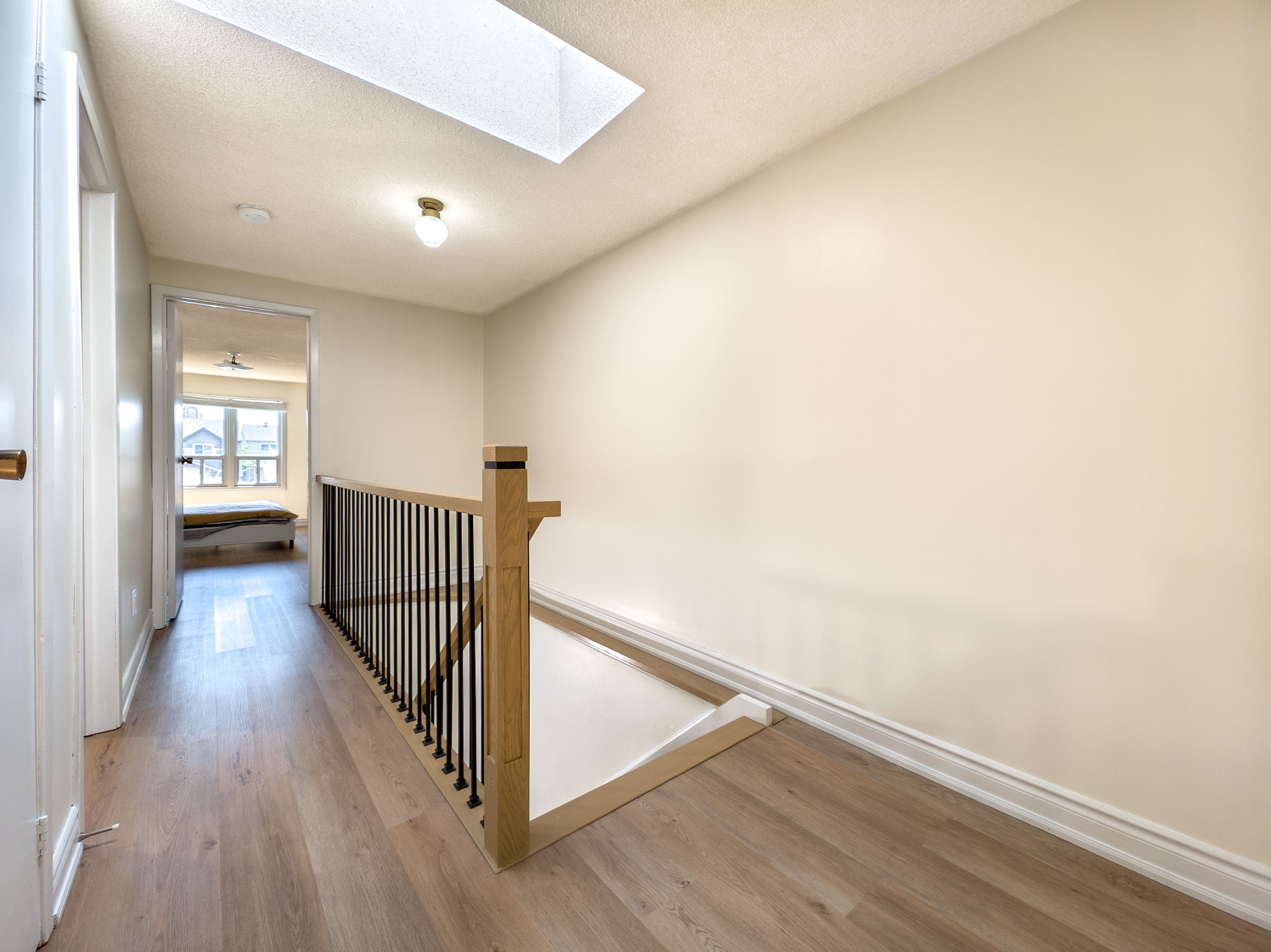 A lovely upgraded 3bedroom plus den home located in one of scarboroughs most desirable communities! Thoughtfully maintained and movein ready, this residence features a sunfilled modern kitchen, fully updated flooring, and a fresh contemporary palette throughout. A striking skylight brightens the upper hallway, while the fully finished basement provides flexible living space with a den that can serve as a home office, gym, or guest bedroom. The private backyard includes a handy storage shed, perfect for seasonal items. Close proximity to major highways, topranked schools, parks, and scenic trails, this home offers an ideal balance of style, comfort, and convenience.***few pictures are virtual staging!