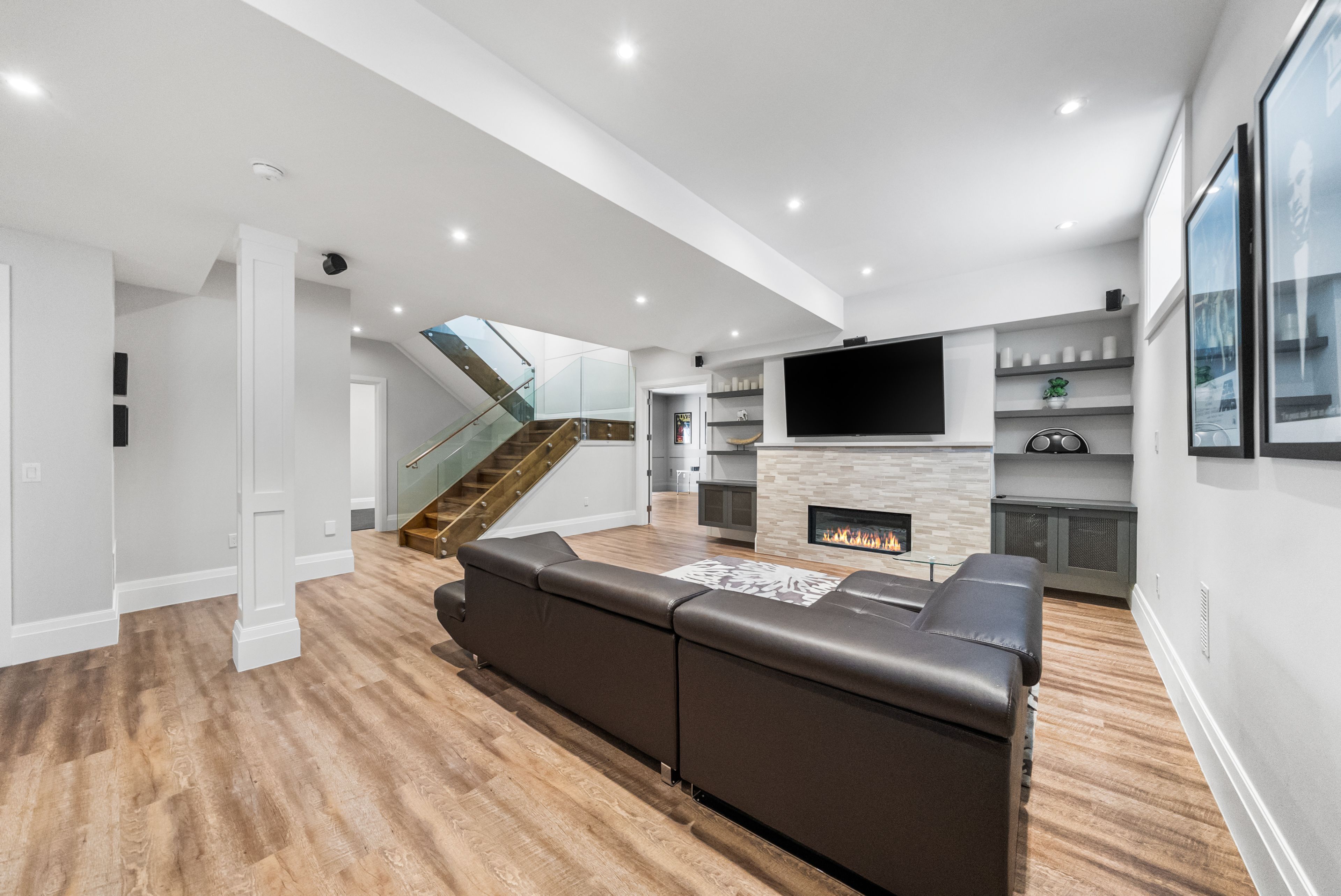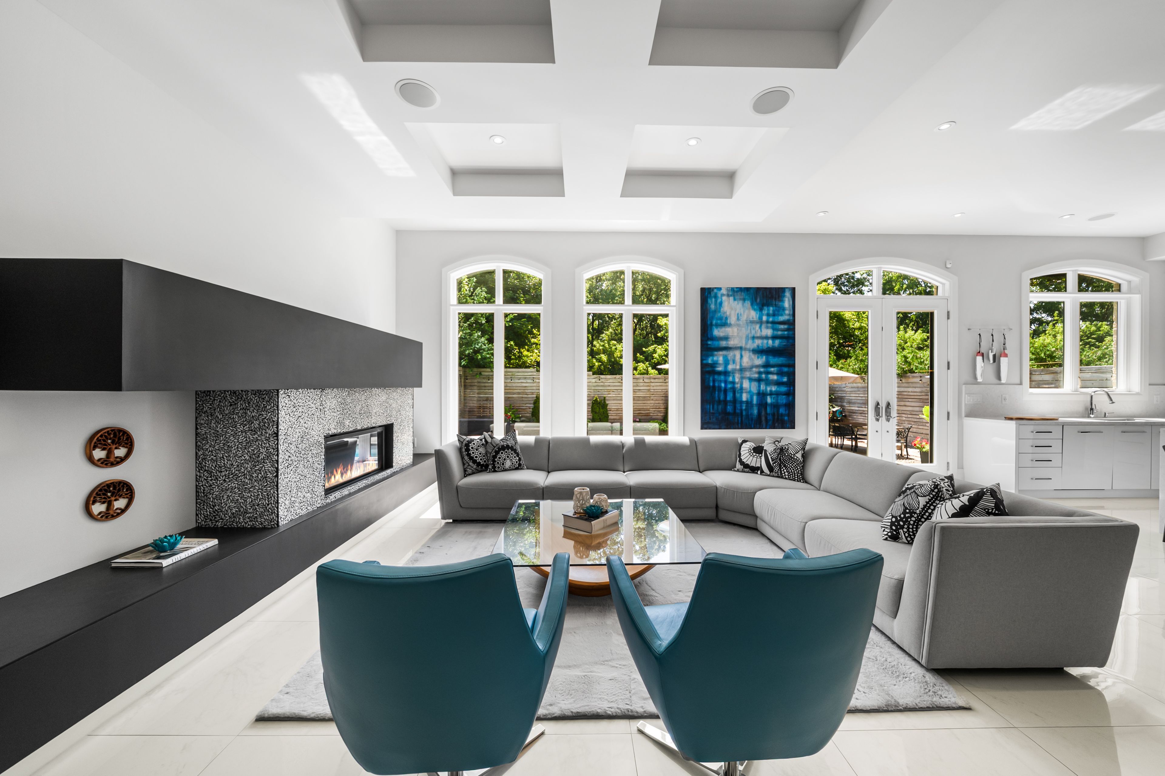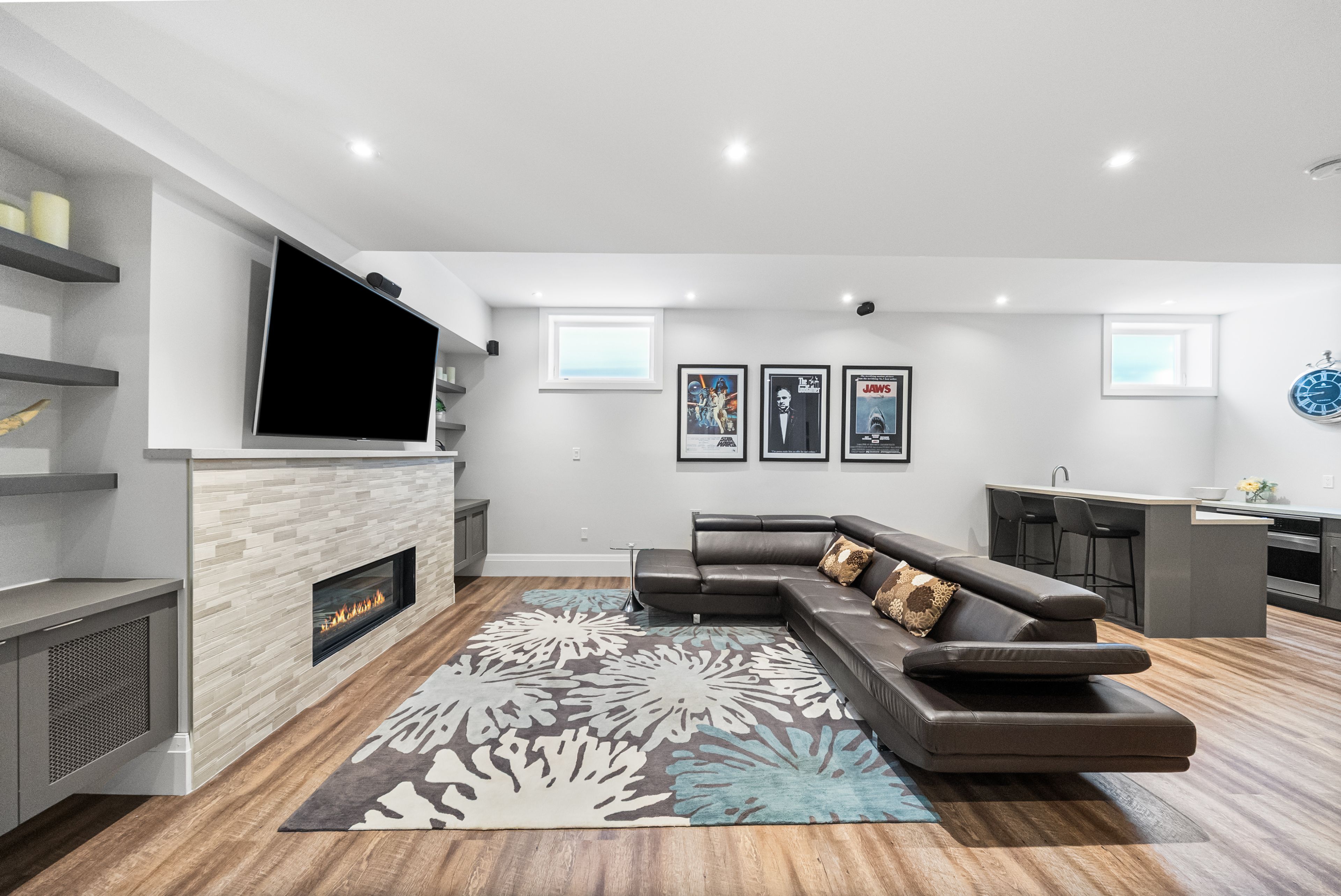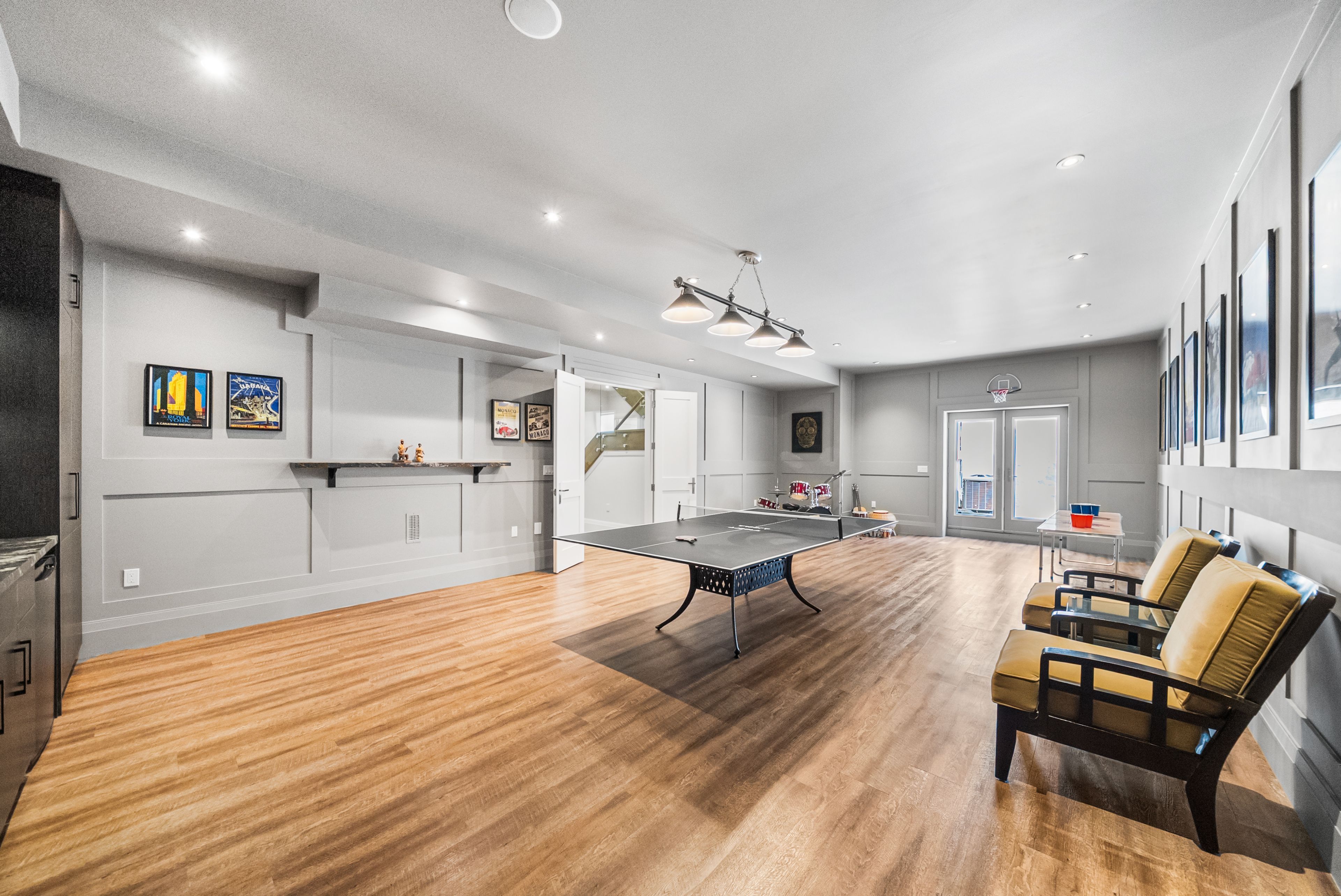 • Lower level features entertainment room, gym, and access to a landscaped backyard.
