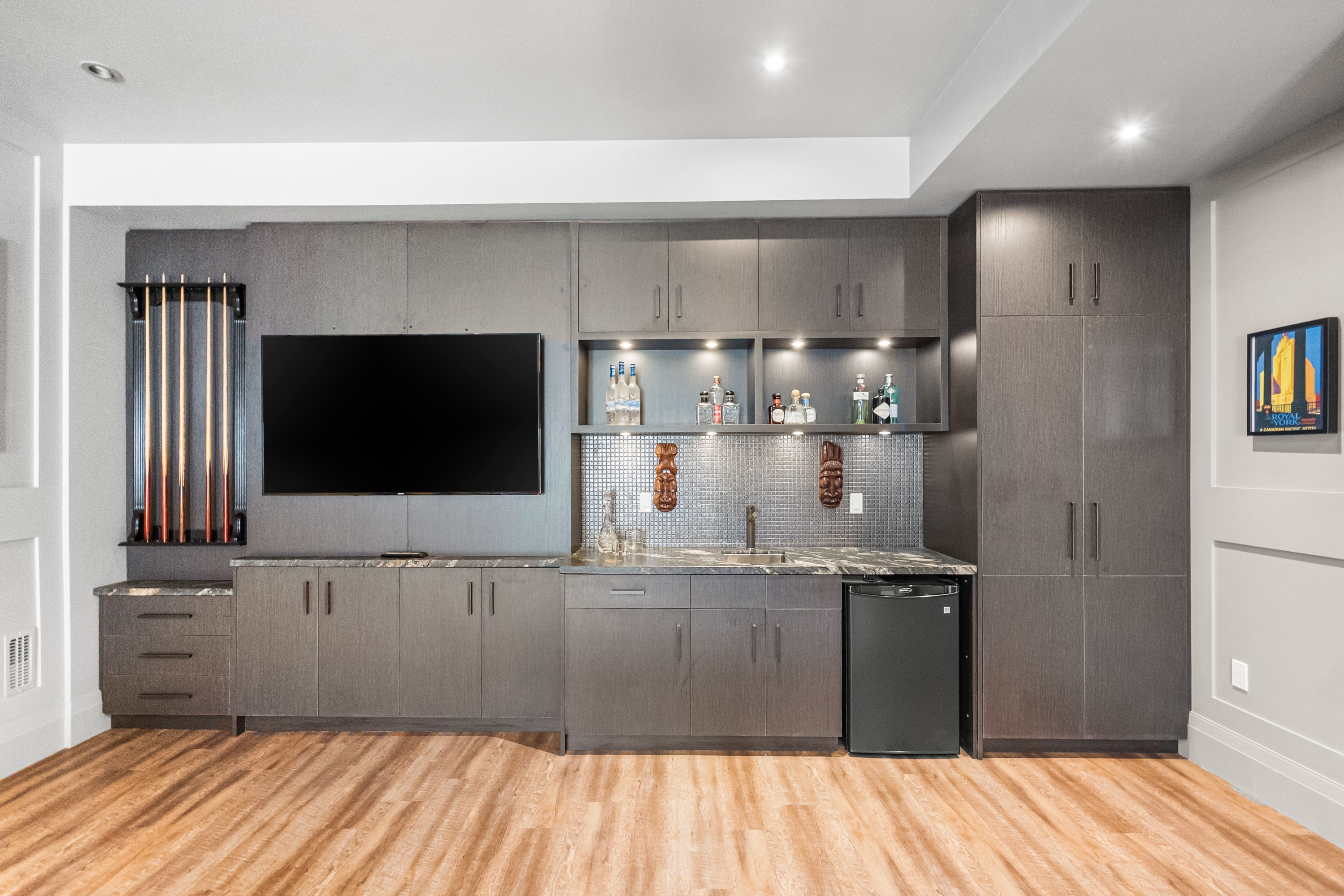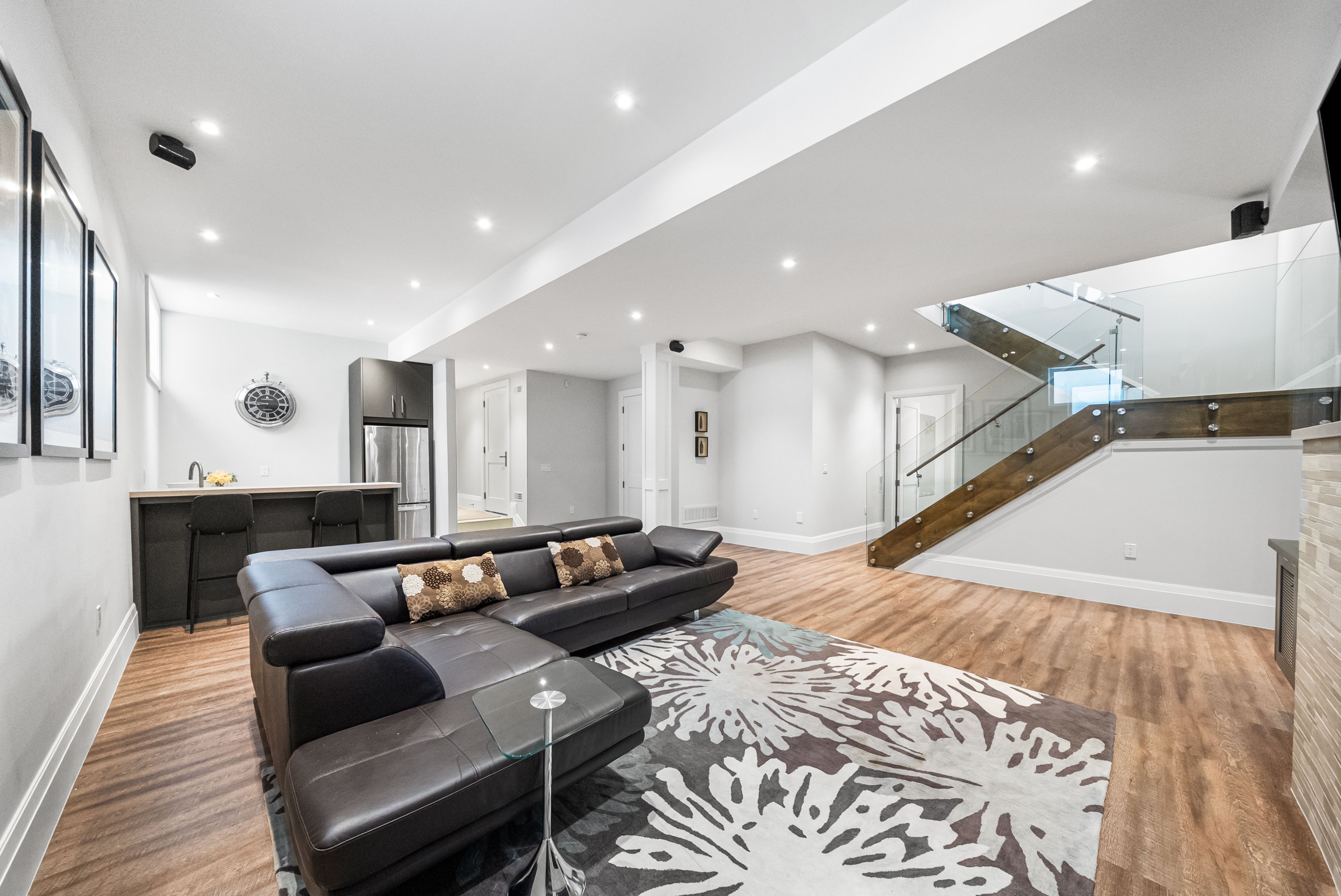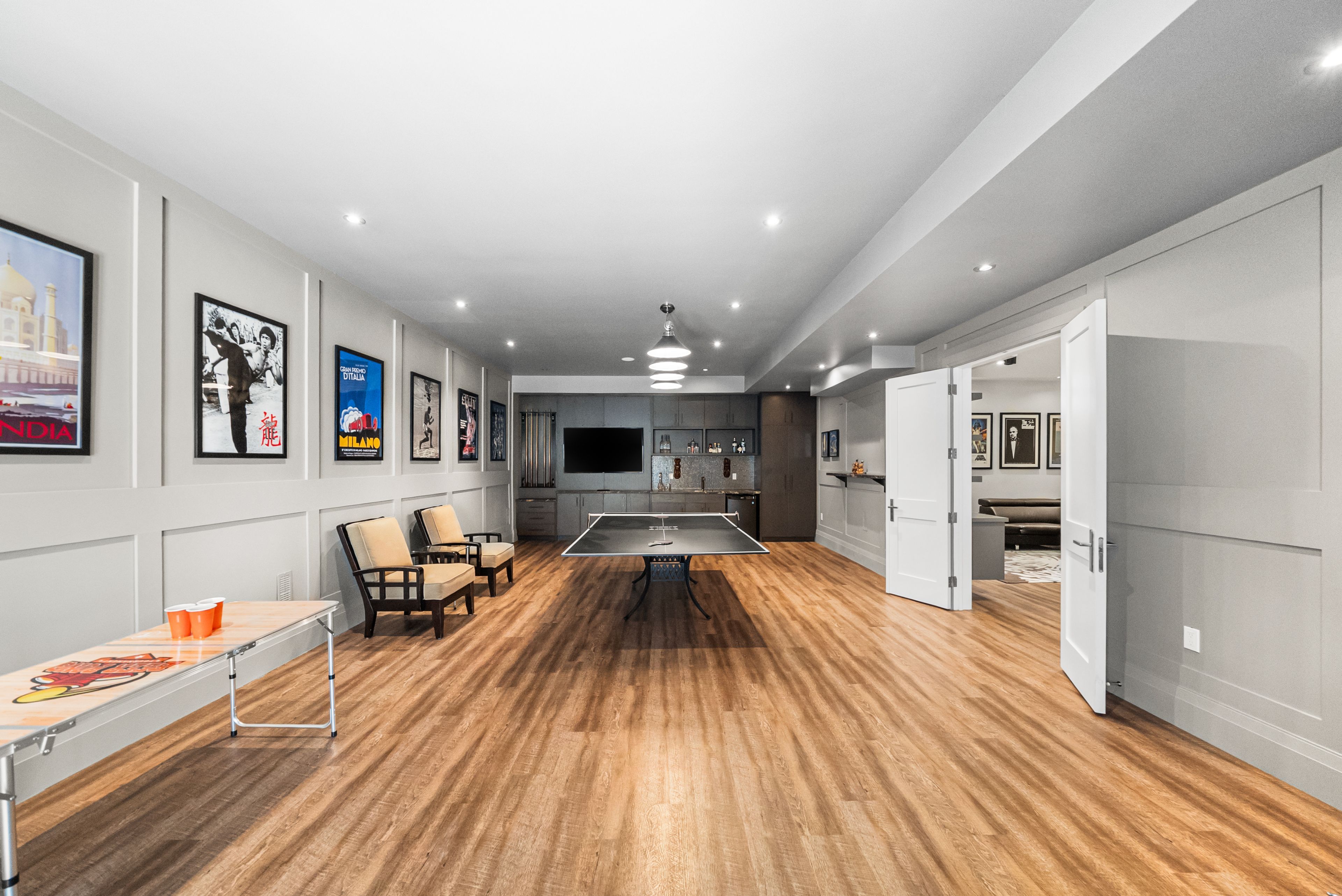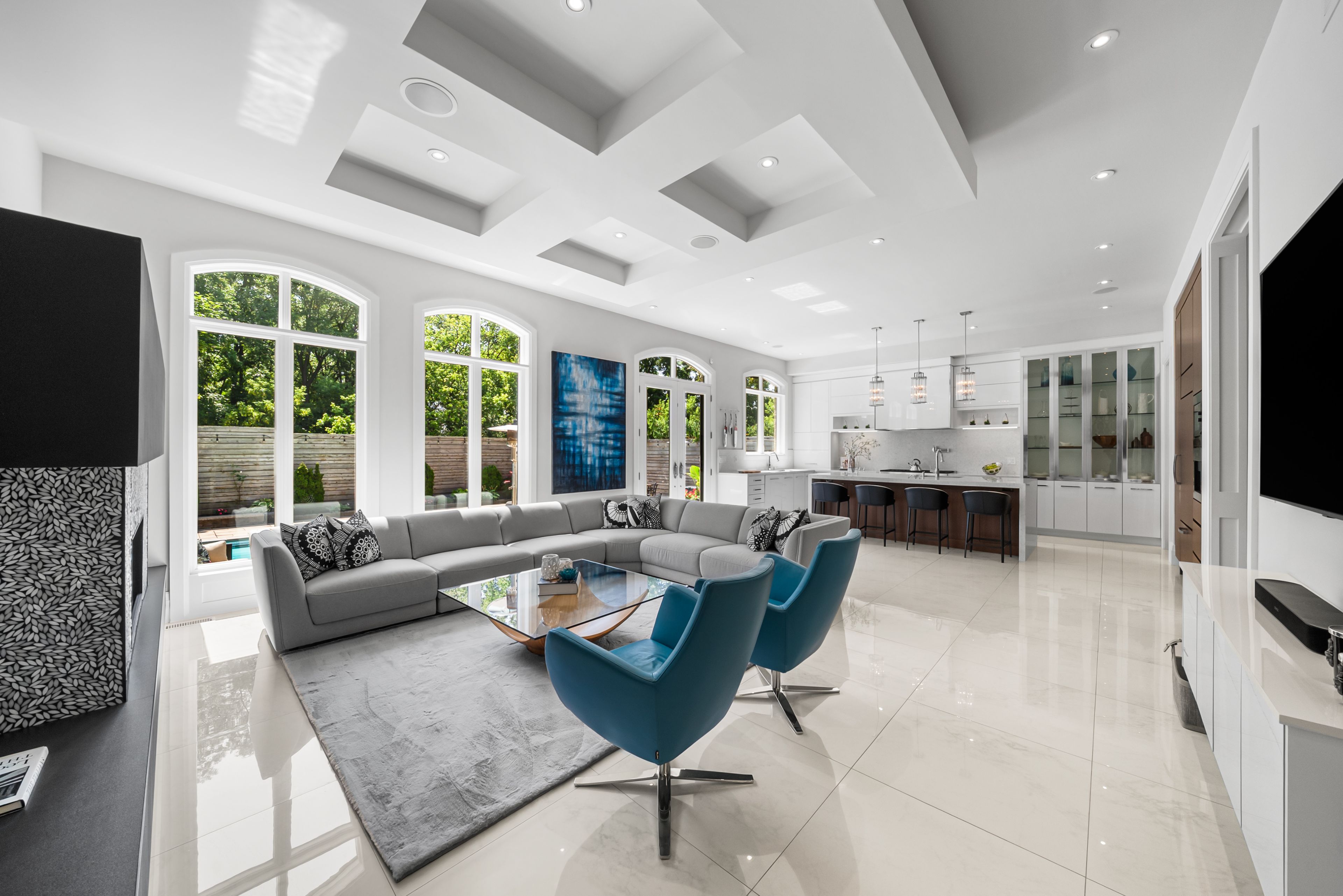 • Lower level features entertainment room, gym, and access to a landscaped backyard.