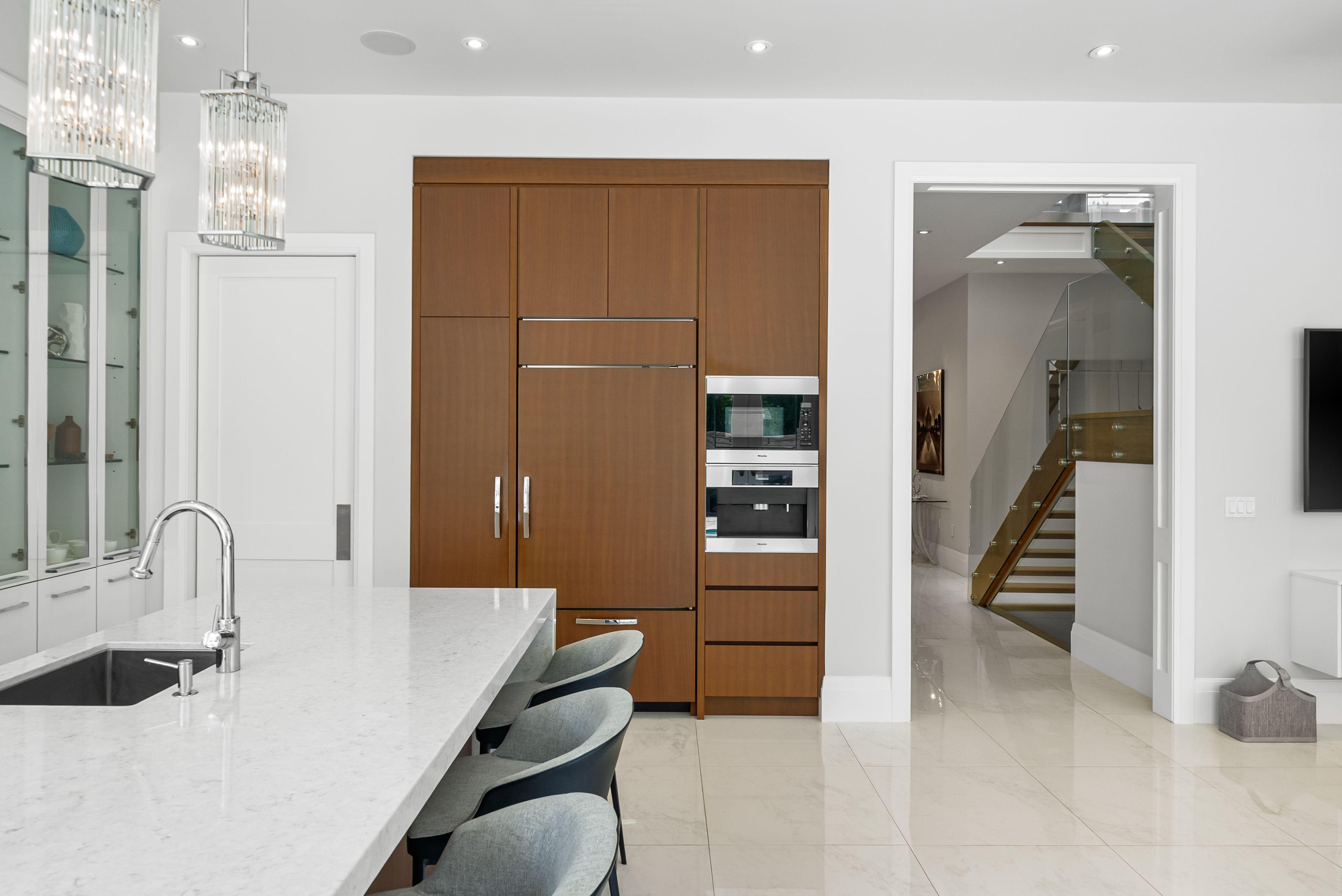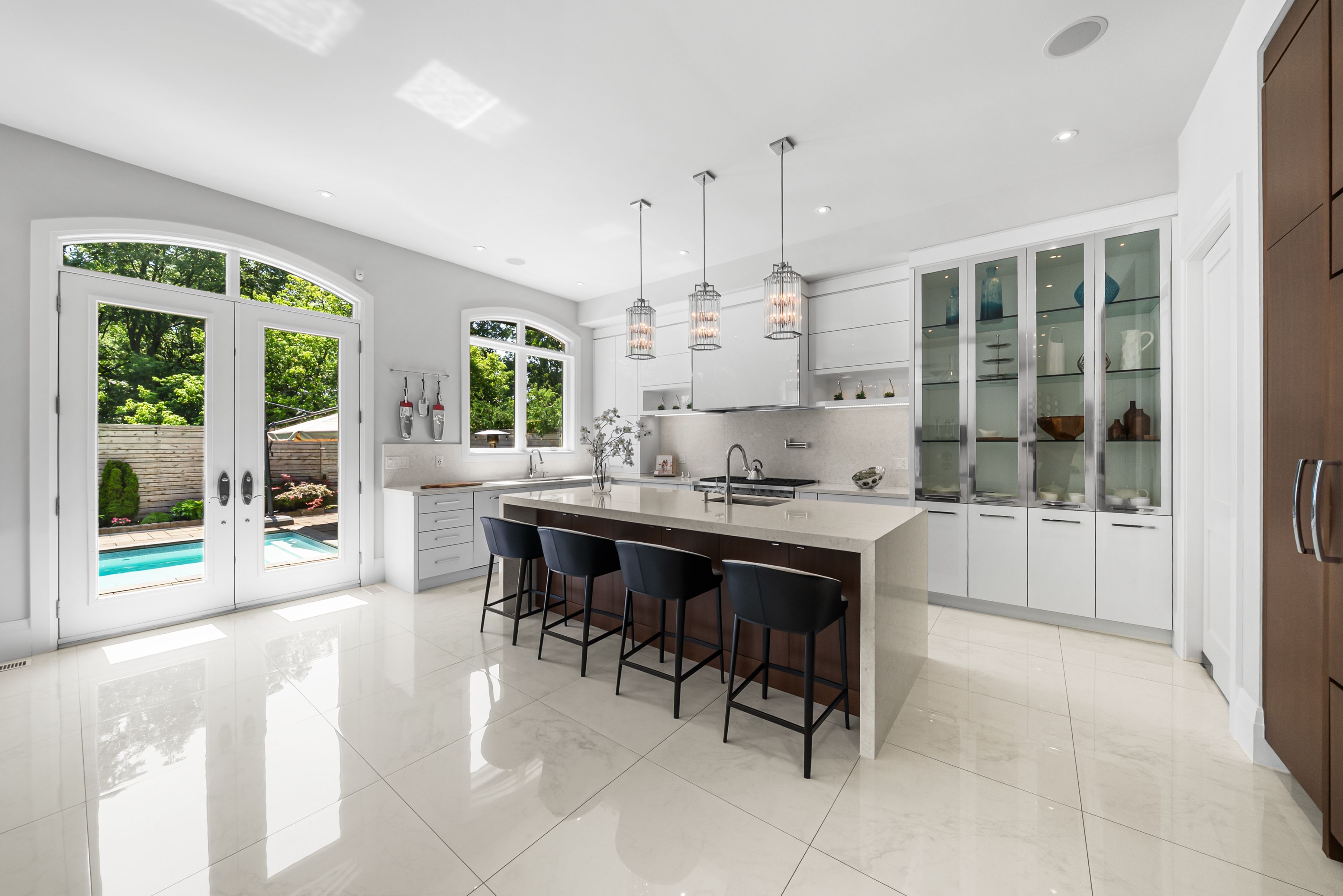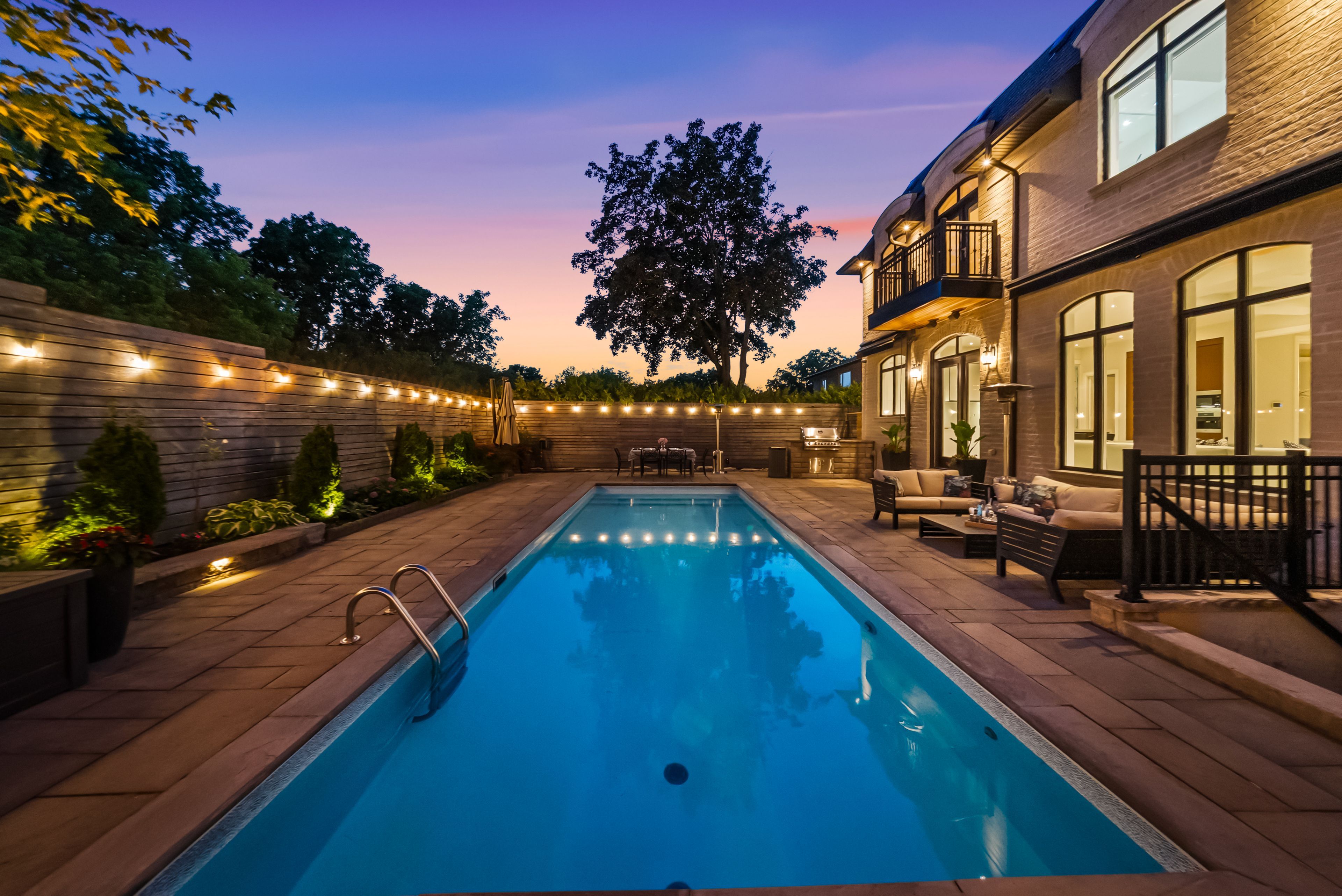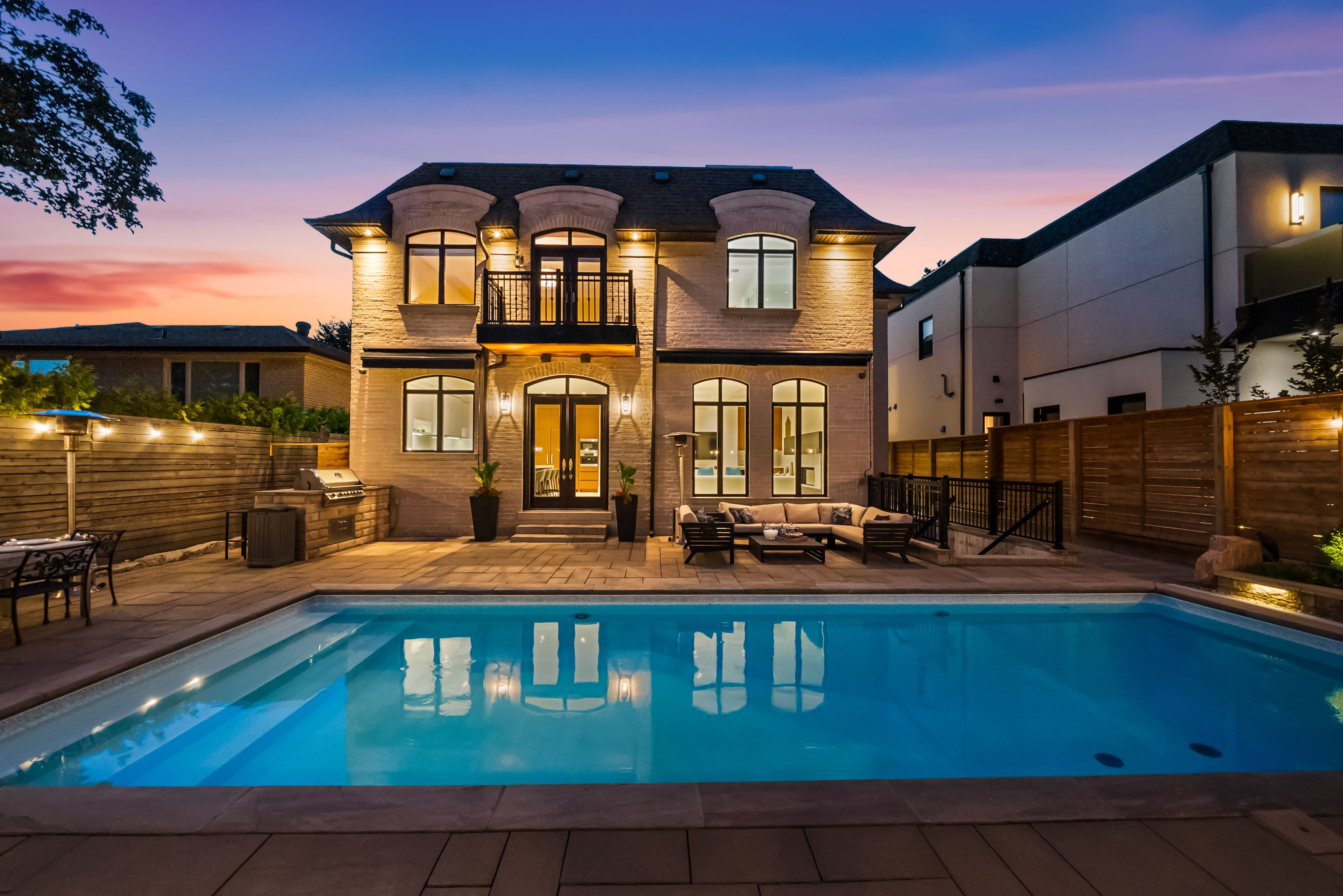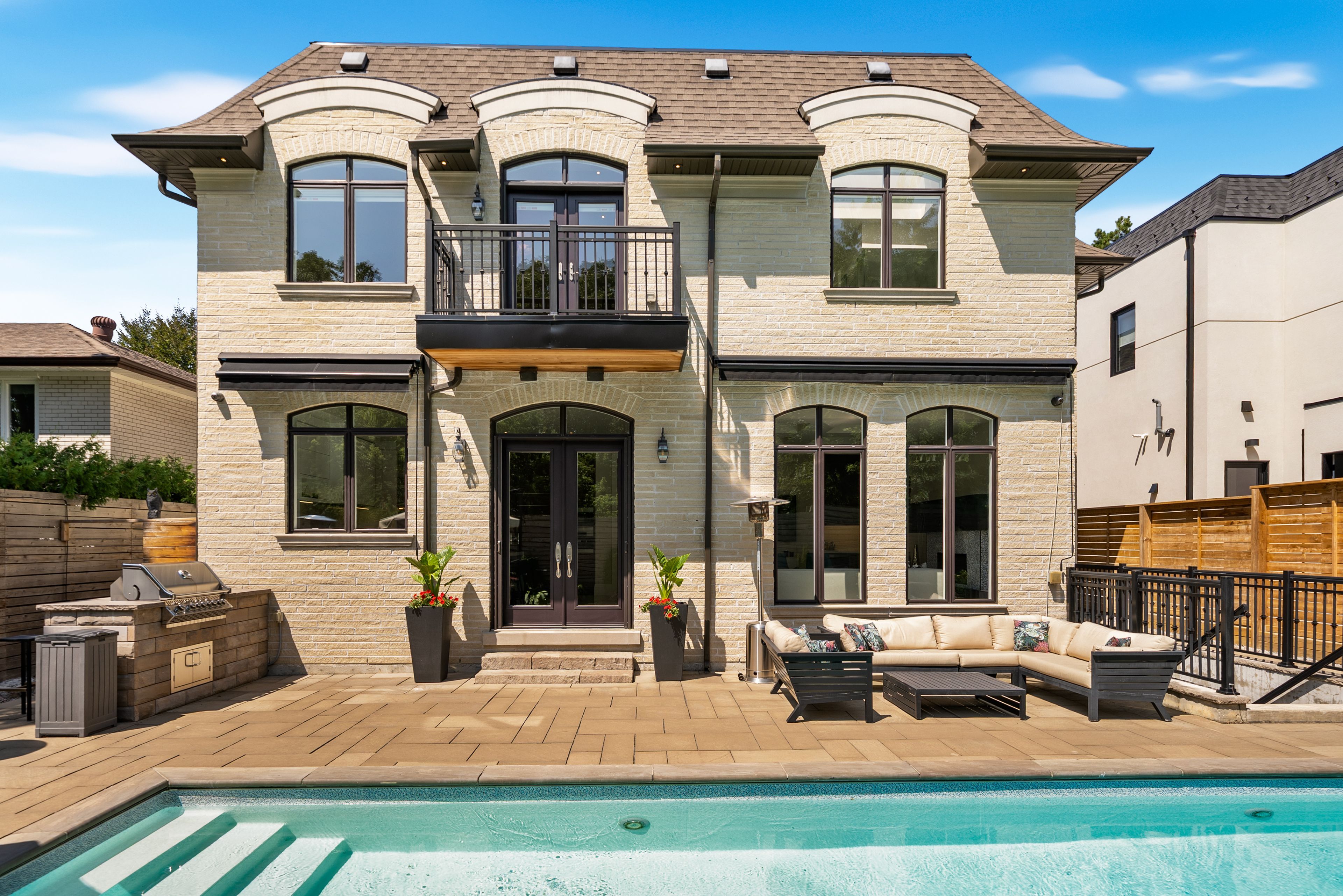 Stunning custom-built luxury residence on a 55 x 120 lot with over 4,200 sq. Ft. Plus a fully finished walk-out basement. Exceptional craftsmanship throughout with premium finishes, coffered ceilings, and designer fixtures. Gourmet chefs kitchen with quartz countertops, waterfall island, sub-zero fridge, wolf range, miele coffee maker, and dual bosch dishwashers. Open family room with custom cabinetry, gas fireplace, and built-in entertainment system. Formal dining with restoration hardware chandelier and hunter-douglas powered blinds. Four spacious bedrooms each with ensuite baths and walk-in closets. Primary features private balcony, spa-like ensuite with steam shower, soaker tub, toto washlet, urinal, and dressing room with skylight. Lower level includes games room, entertainment room with kitchenette, gym, and walk-out to landscaped backyard. Resort-style saltwater pool, bbq station, awnings, pool washroom with hvac and secure access to city green space. Two-car garage with cedar doors, bike lift, and slatwall system. A rare opportunity to own an elegant, turnkey home in a prime location.