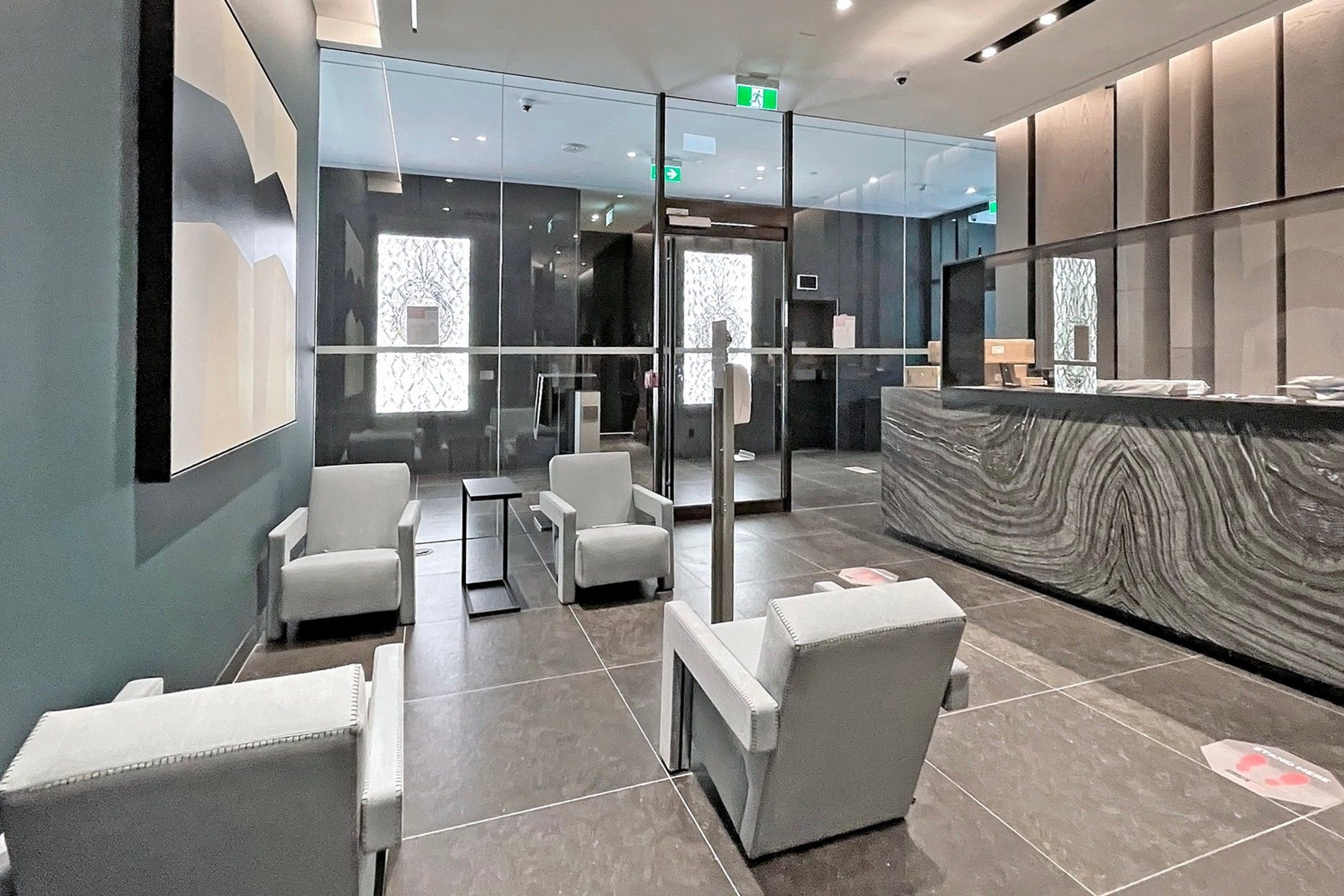 • Stylish design featuring high ceilings and floor-to-ceiling windows.