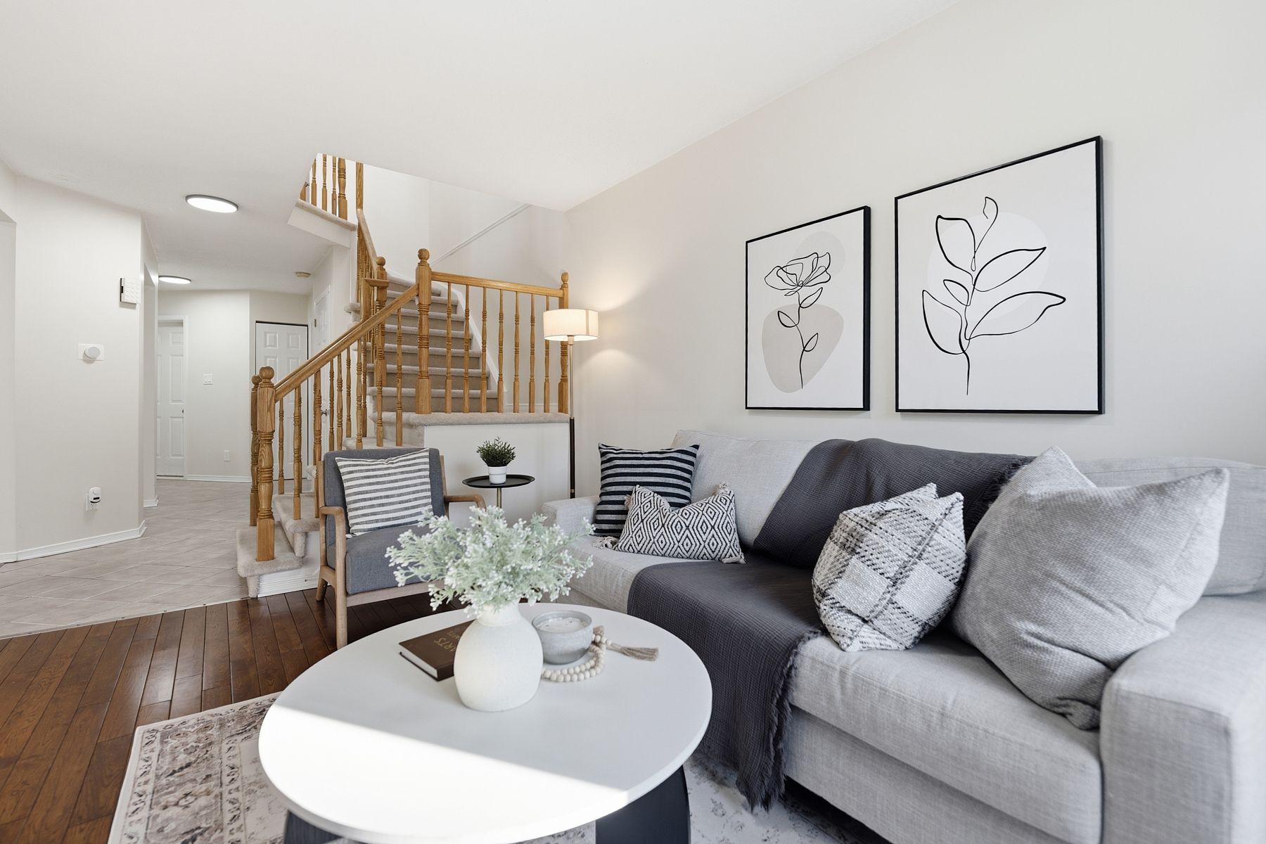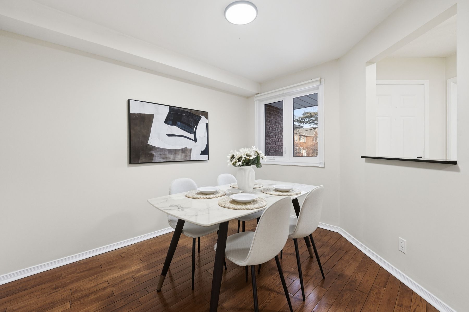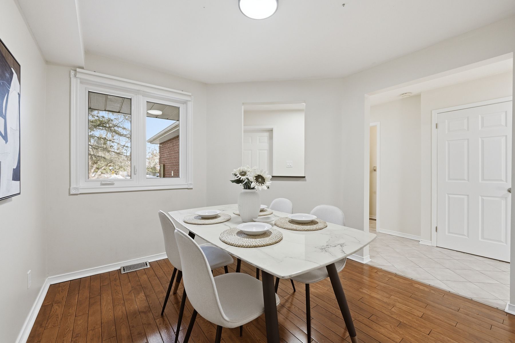 • Bright and spacious kitchen with hardwood flooring in living and dining rooms.
