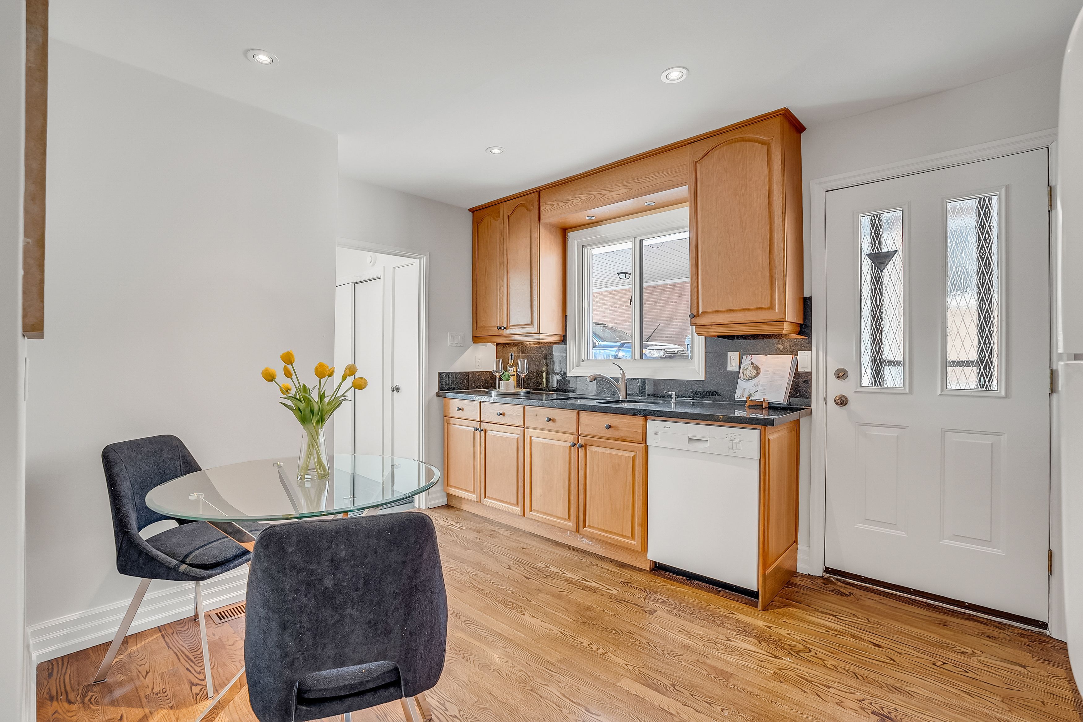 This lovely backsplit is filled with natural light and a welcoming sense of warmth. Ideal for first-time buyers beginning their homeownership journey or empty nesters looking to settle into a cozy, comfortable space. The updated eat-in kitchen features fresh paint ('26), granite countertops & backsplash, hardwood flooring, and a convenient separate side entrance. The open-concept living and dining room is freshly painted ('26) and showcases hardwood flooring, elegant crown moulding, and a large bay window overlooking the front garden, creating a bright and inviting atmosphere. Thoughtfully updated throughout, this home offers plenty of opportunity to add your own personal touches. Proudly enjoyed by the owners for over 55 yrs, it's ideally located close to schools, churches, parks, public transit, and shopping. Come see for yourself and feel right at home.