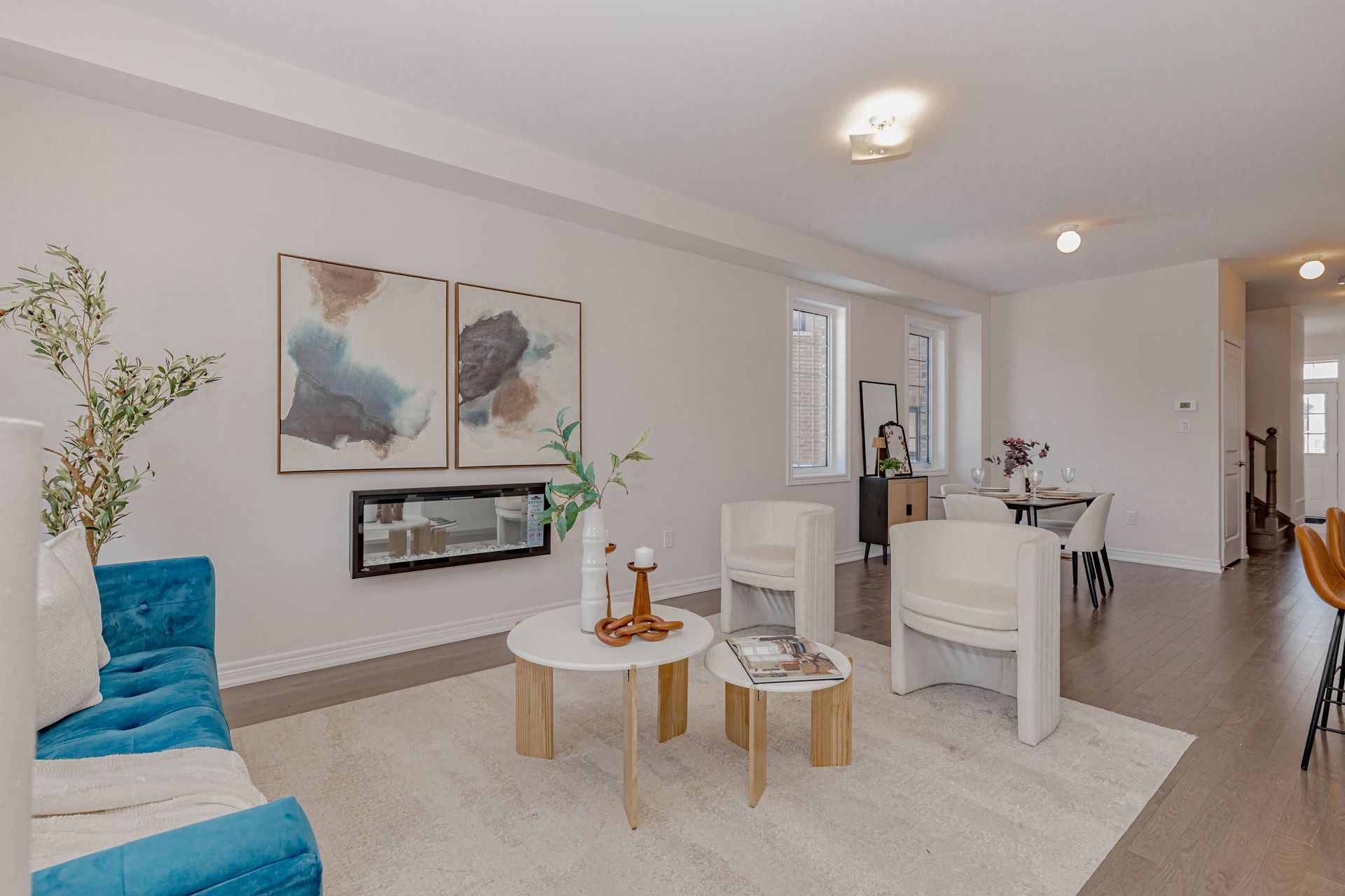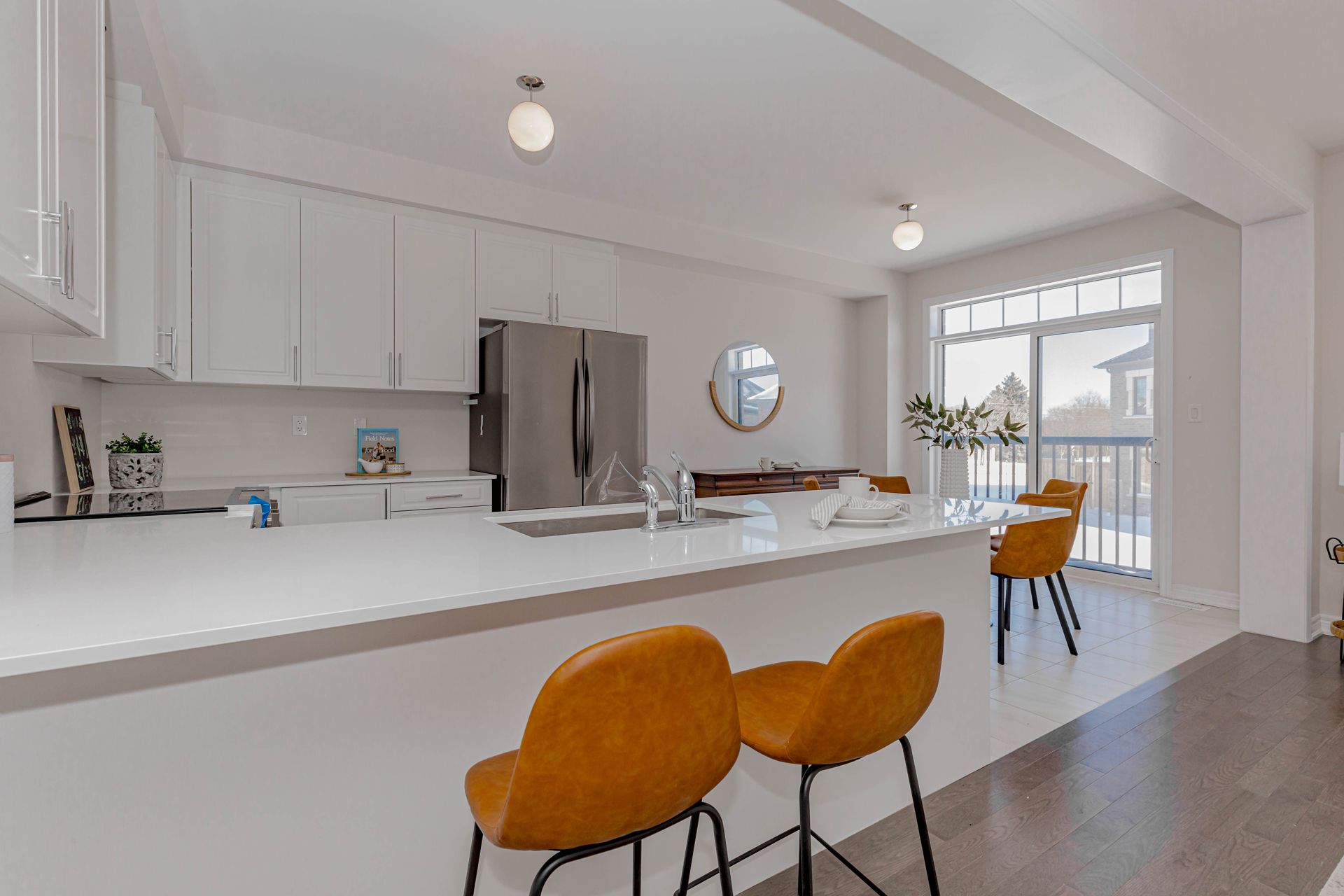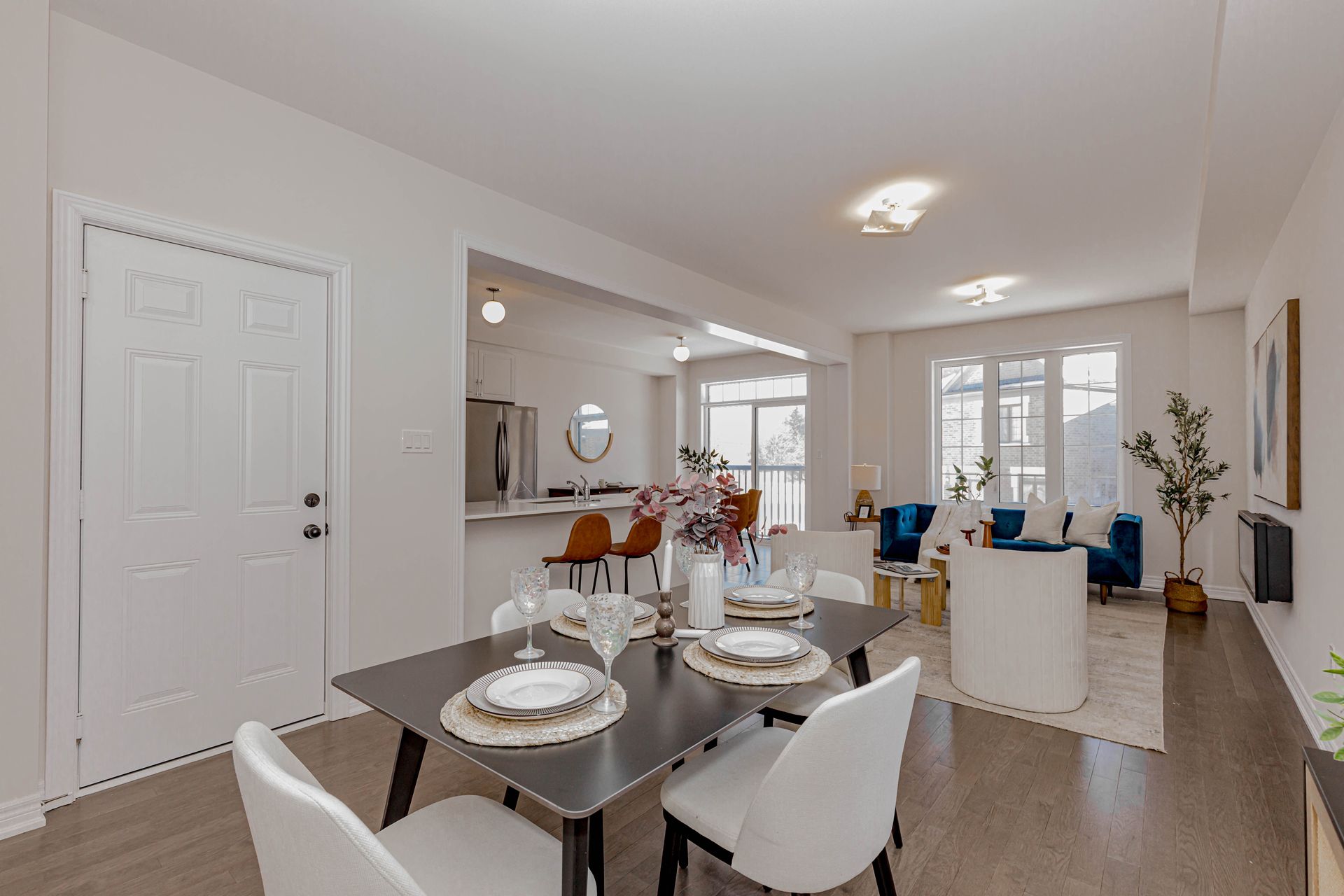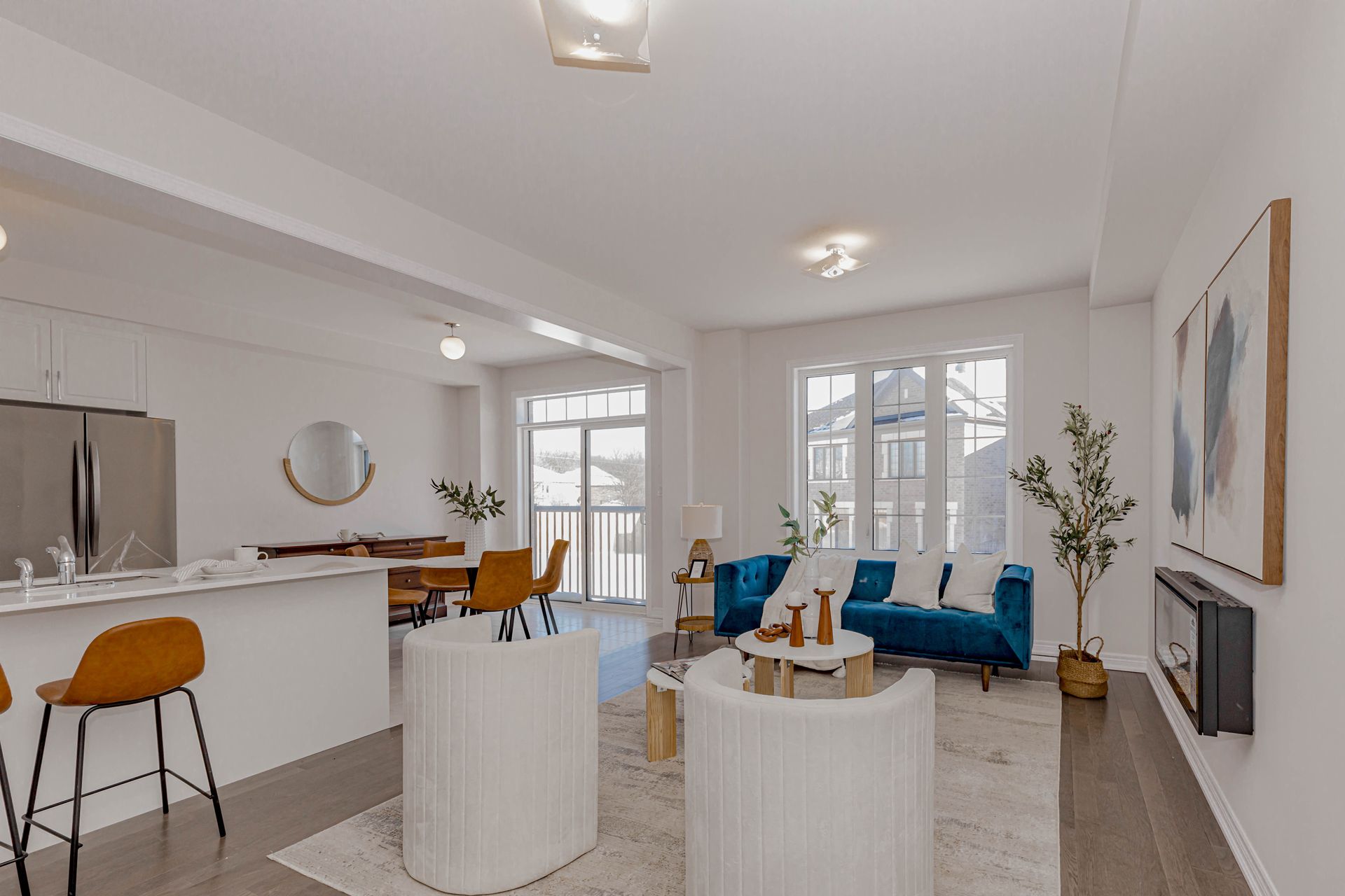 • Bright open-concept layout with abundant natural light and hardwood flooring.