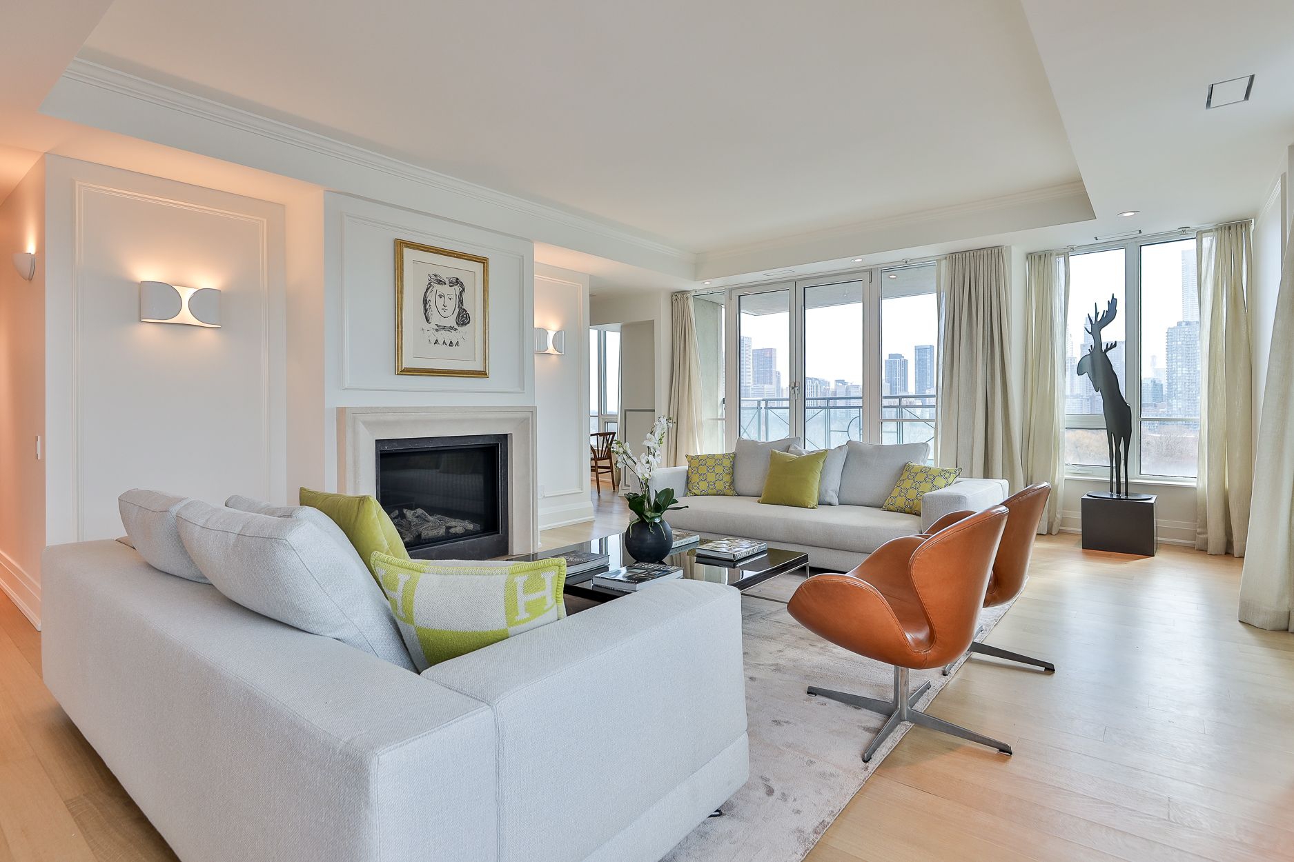 This superbly styled luxury space awaits you! Rarely available 2+1 bedroom has been transformed with a complete high-end renovation. This sophisticated sun-filled southwest corner of thornwood 2 is the space you've been dreaming of in toronto's best boutique condo building, complete with its own dedicated elevator. Classically designed with beautiful modern finishes. Features premium fixtures and european appliances. Solid new white rift-cut oak floors throughout and curated, designer light fixtures. The living, dining room and kitchen are ideal for entertaining. The living room is a palatial space with a new gas fireplace, built-in speakers, and a walk-out balcony. The enormous gallery/dining room off the new generous foyer, has sweeping west views and a full library, with gallery-like art walls and lighting. The large eat-in kitchen features wall-to-wall oak cabinetry for every need, top-of-the-line built-in appliances, and marble countertops which overlook the breakfast room and a city view of the lake. Superb primary south-facing bedroom retreat offers comfort and peacefulness with two new walk-in closets and a five-piece ensuite. Thornwood 2 is known for its superior central rosedale/summerhill location. Fabulous views, first-class amenities, 24-hour concierge, valet parking and guest suites cater to your every need and make it a true oasis in the heart of the city. Steps from exquisite shops, restaurants, and the yonge street subway. Don't miss this opportunity to experience luxury living in toronto's finest condo building.