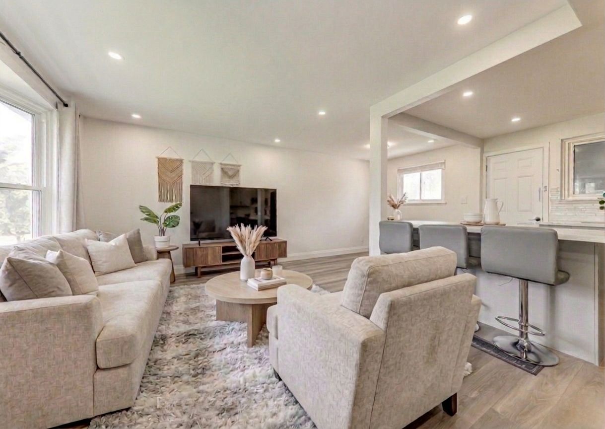 Attention first time home buyers !! A must see 3 levels home fully renovated from top to bottom located in a quiet neighbourhood, sitting on a large lot with many potentials. Boasting 2 separate living units; upper level 3 bedrooms plus 1 bath, modern open concept kitchen with centre island and dining area, walk out to backyard. Lower level unit with 2 bedrooms and 1 bath, separate kitchen. Additional big sunroom for entertainment and a hugh lot with plenty of parking spaces. Close to schools, parks, ttc, shopping, york university and major highways.