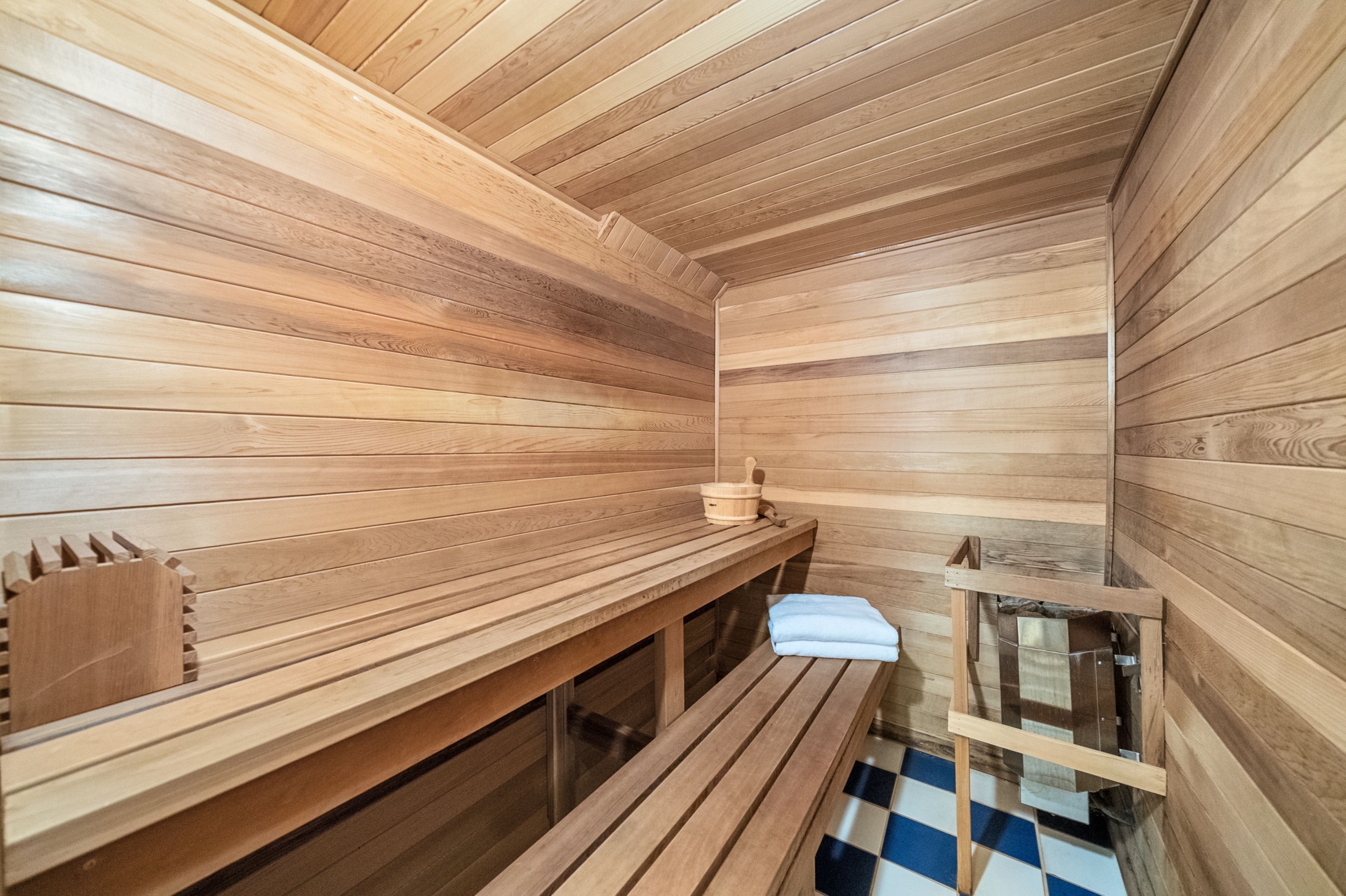• Oversized lower level recreation room with kitchen, sauna, and wine cellar.