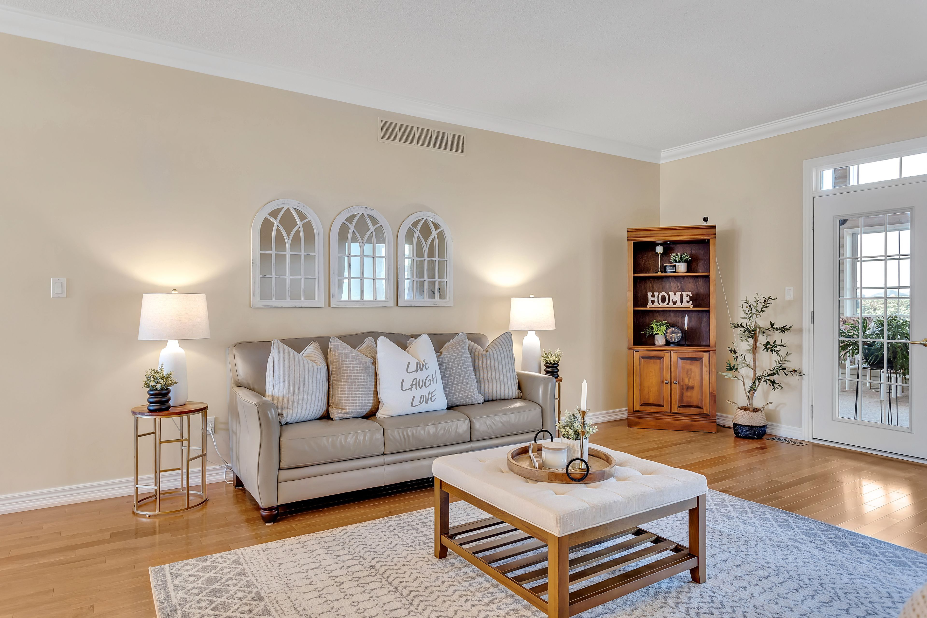 • Open-concept layout with high cathedral ceilings for spacious living.