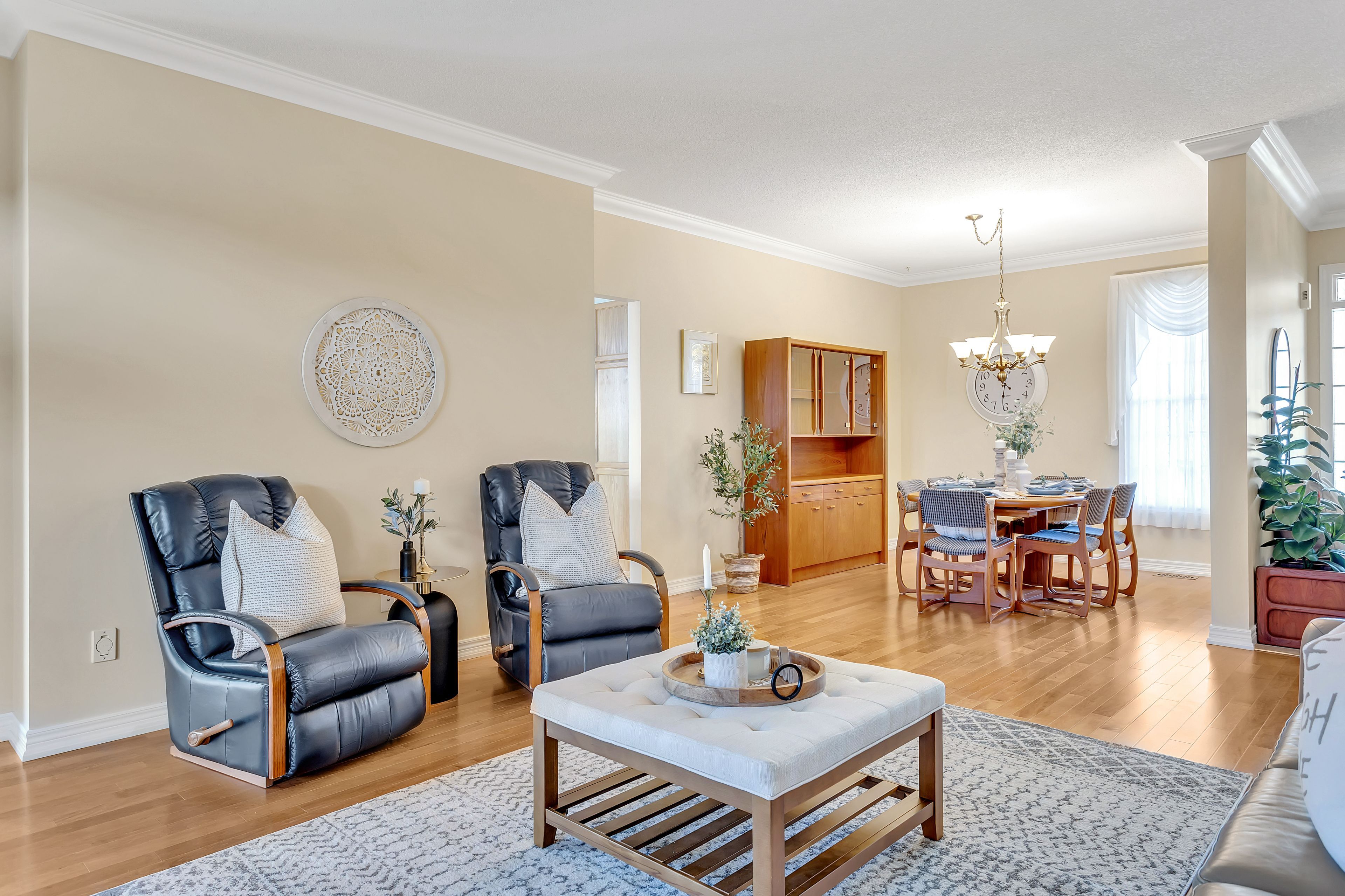Welcome to this sprawling bungalow tucked away on a quiet in-town street, backing onto lush green space and bordering a municipal park offering a rare blend of privacy and convenience, just minutes from shops, schools, and all amenities . Inside, soaring cathedral ceilings and an airy open-concept layout set the tone for relaxed living. The spacious living and dining areas flow seamlessly into a bright three-season sunroom with a walkout to a large deck perfect for summer bbqs or peaceful morning coffees. The enclosed hot tub adds a touch of luxury, making it an ideal space to entertain or unwind year-round . The main level features two well-sized bedrooms, including a serene primary suite with a walk-in closet, 4-piece ensuite, and private access to the sunroom. Downstairs, the finished lower level offers two additional bedrooms and a full bath perfect for extended family, guests, or a growing family. A welcoming front porch adds even more outdoor living space, perfect for enjoying the peaceful surroundings or planning your next great gathering. This warm, inviting home checks all the boxes for comfort, space, and location truly a must-see!