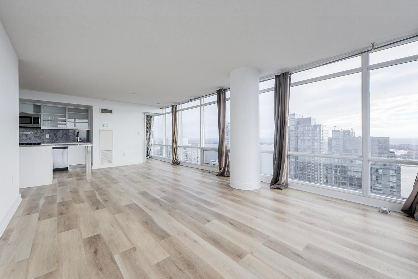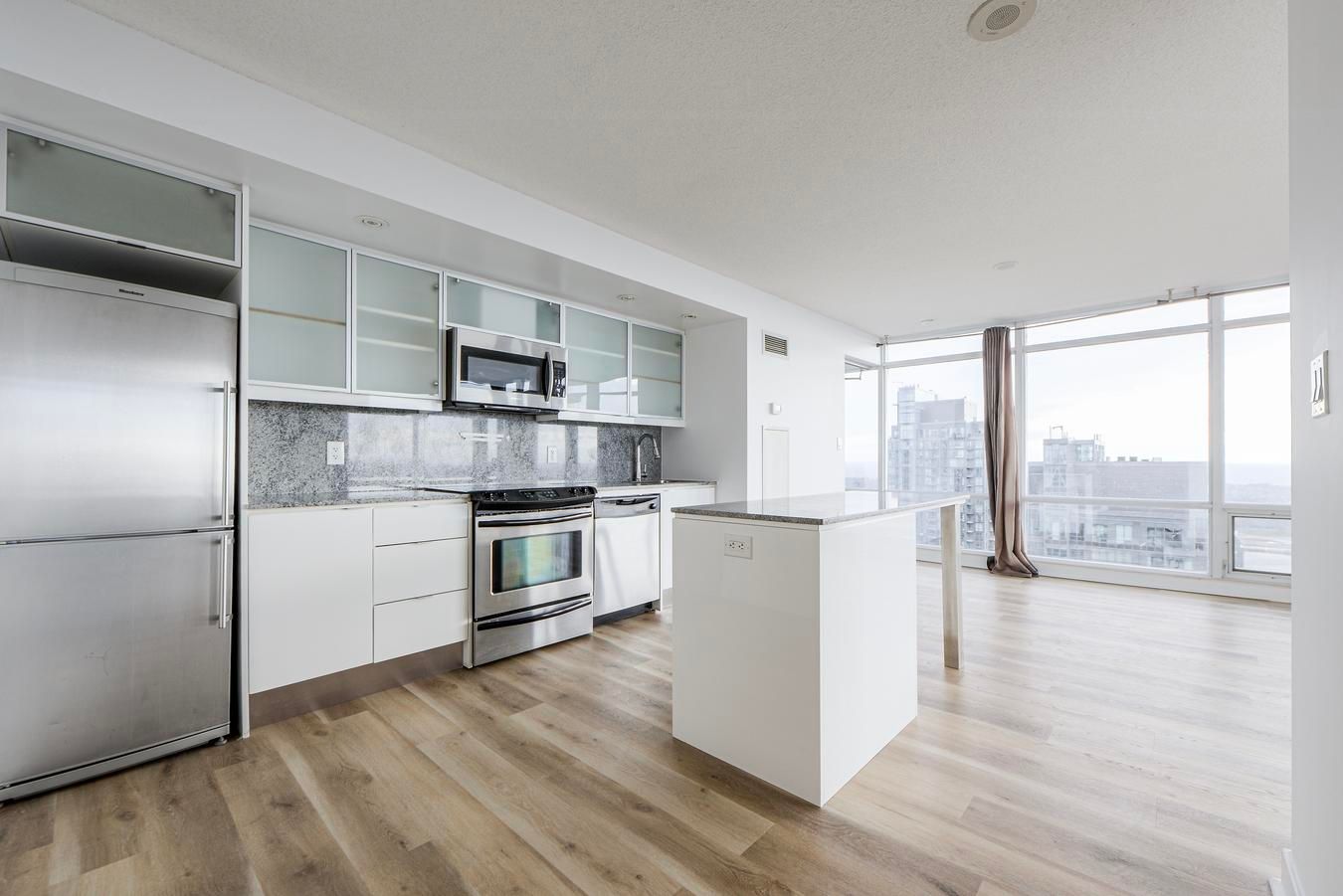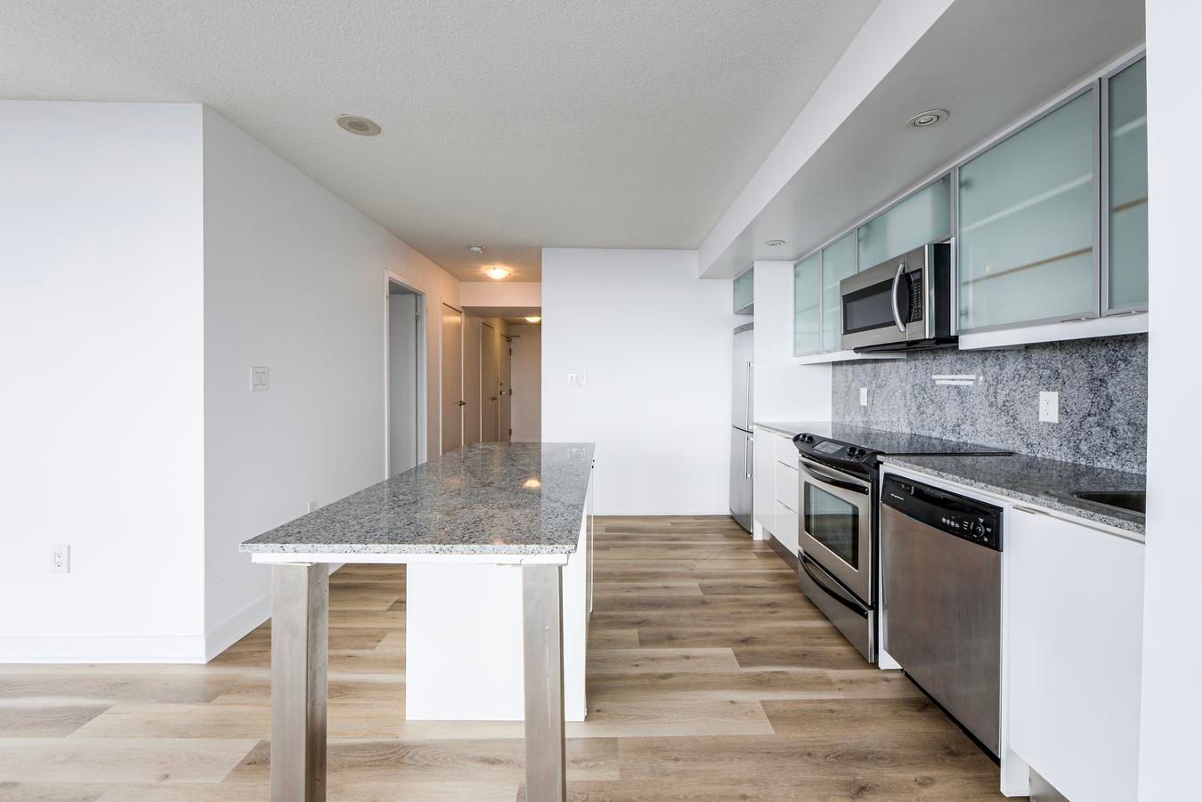 Rarely offered corner suite | 2 bed + full-size den | 2 bath | 1,170 sqft + balcony | 2 parking | 1 locker | unobstructed lake views. Step into luxury with this rarely available 2-bedroom + full-size den corner suite offering brand-new flooring and freshly painted walls throughout its 1,170 sqft of sun-drenched, open-concept living space. Enjoy an additional 38 sqft balcony with breathtaking, unobstructed lake views. Floor-to-ceiling windows and southwest exposure flood the home with natural light, creating a warm and inviting atmosphere. The modern kitchen is both stylish and functional-ideal for cooking and entertaining. The spacious primary suite features a walk-in closet and a sleek 3-piece ensuite with a full glass shower. The full-size den is a standout feature-generously sized and enclosed, it easily serves as a third bedroom or dedicated home office. Enjoy the rare convenience of 2 premium parking spots and 1 storage locker, a true luxury in downtown toronto. Located in one of the city's most connected neighbourhoods, with direct underground access to sobeys and the newly opened "the well" shopping centre. Just steps from the ttc, harbourfront, financial & entertainment districts, as well as the rogers centre, scotiabank arena, cn tower, island airport, and some of toronto's finest cafes, restaurants, and cultural destinations. Live where convenience meets luxury! Your urban oasis awaits! Please see the virtual tour!