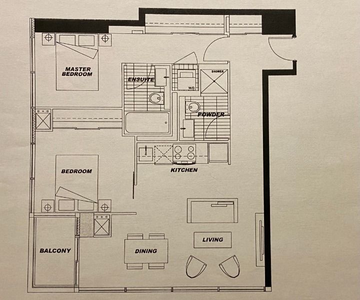 • Corner suite with two bedrooms and two bathrooms in downtown location.