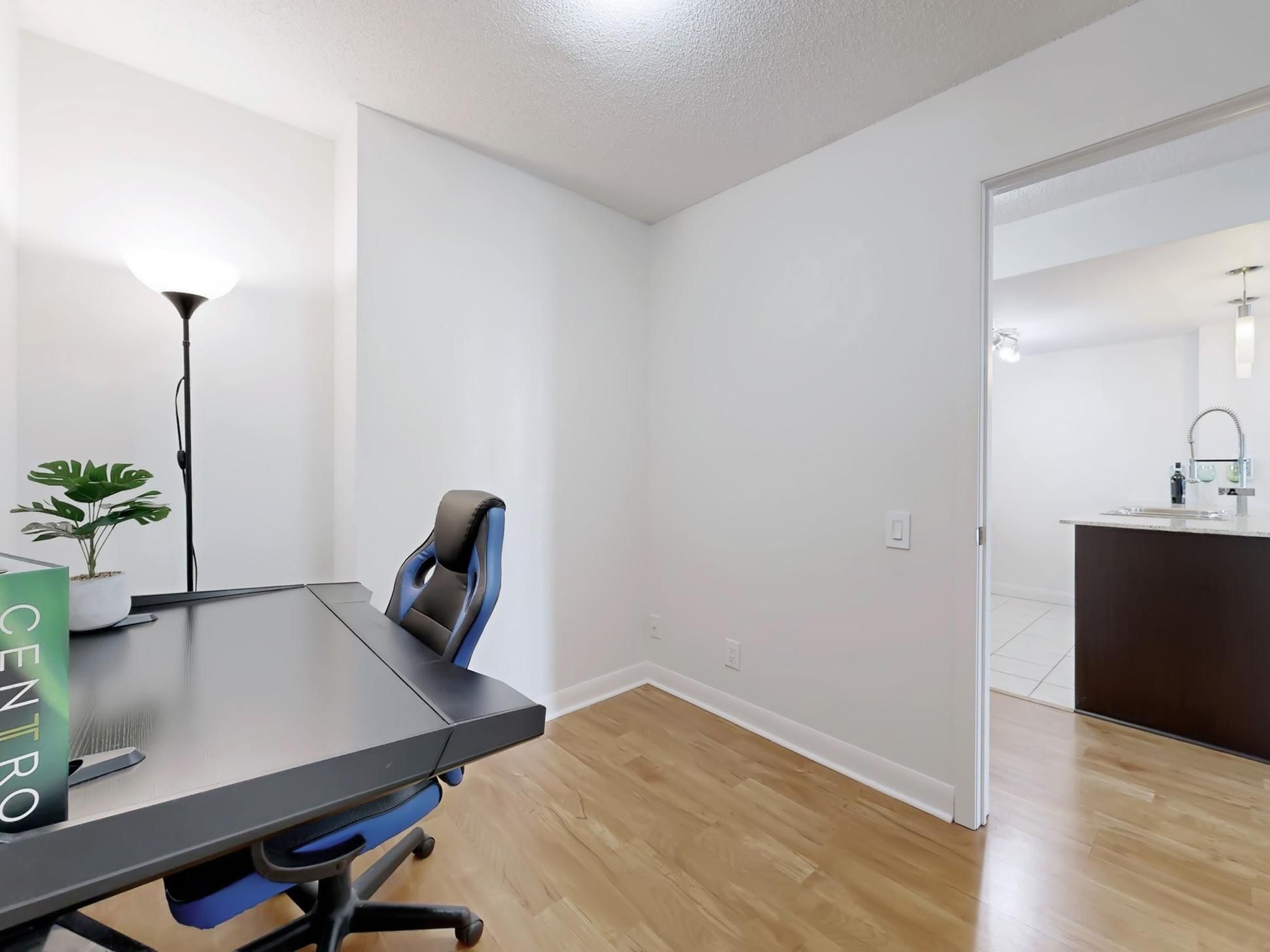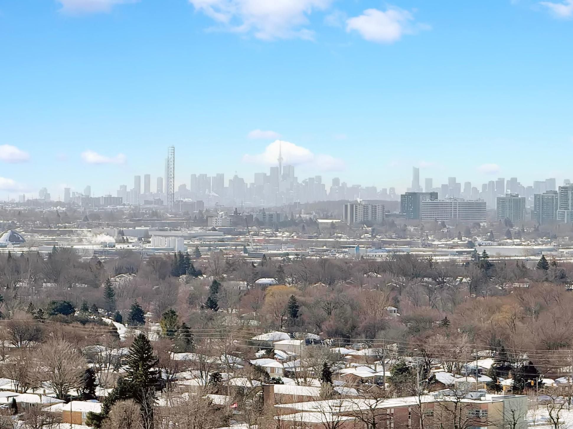 High floor skyline suite at centro condos in the heart of scarborough. This 1+1 sits on the 25th floor and offers a full toronto skyline view, including the cn tower rightfrom your balcony. New flooring (2025), new heat pump (2025), den that be used as office or bedroom, the unit is truly move-in ready with zero wasted space and open-concept layout filled with natural light. Lock in the skyline and capture long-term upside.