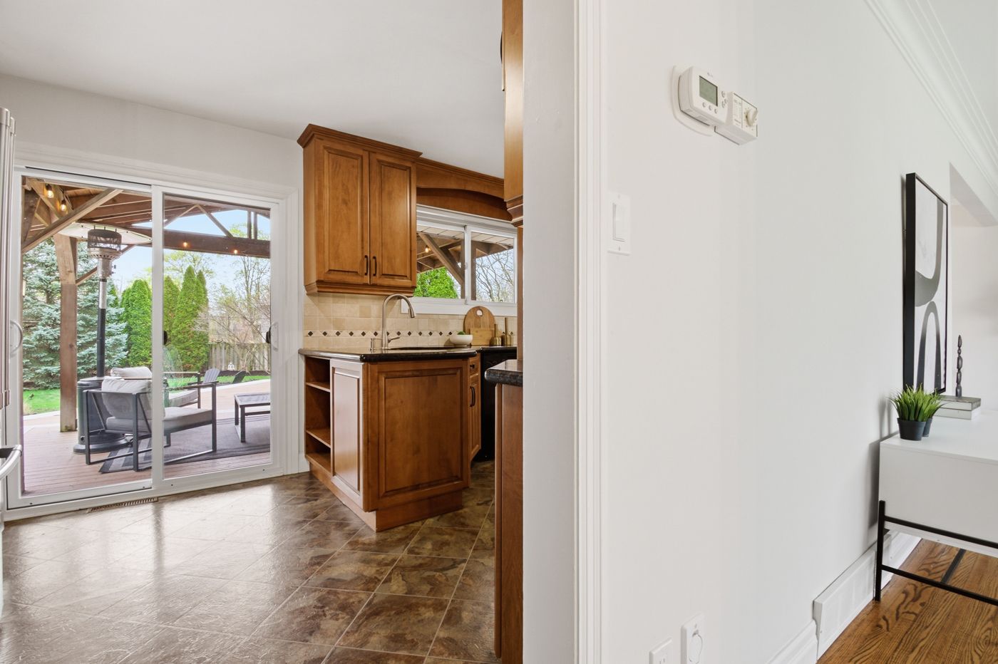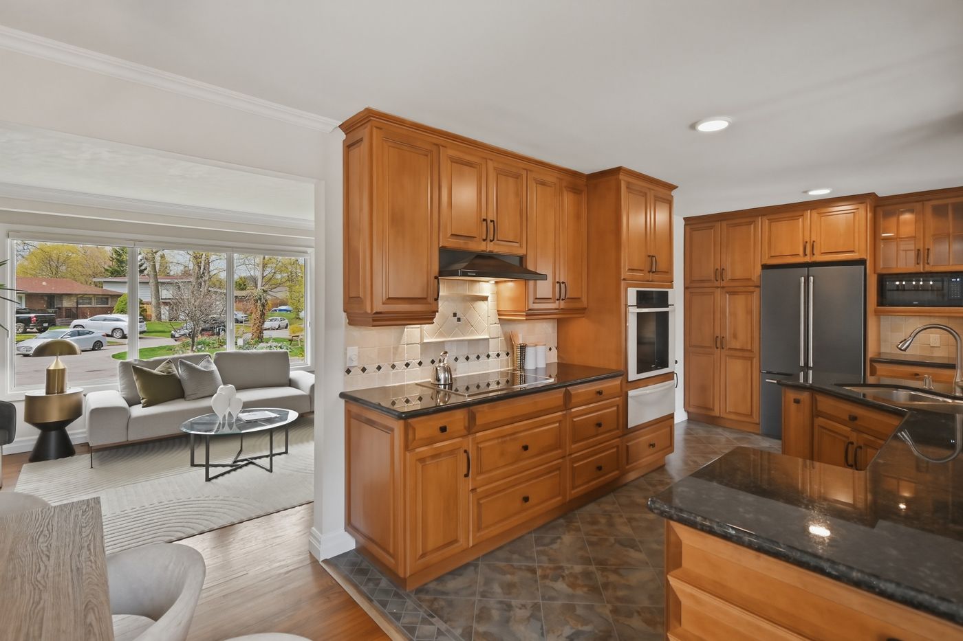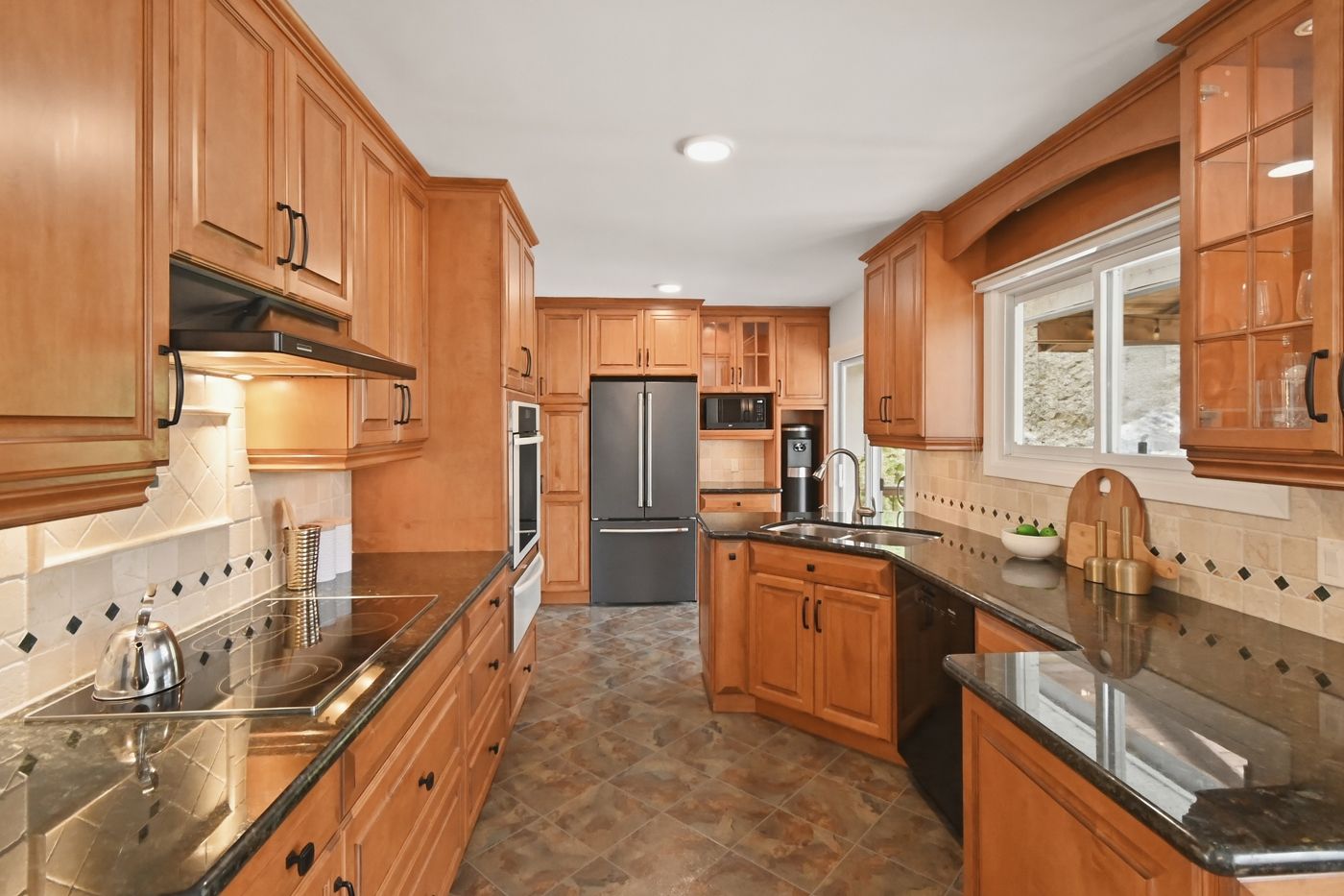 • Stylish kitchen with granite countertops and easy access to outdoor deck.