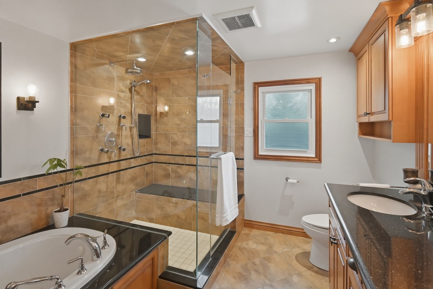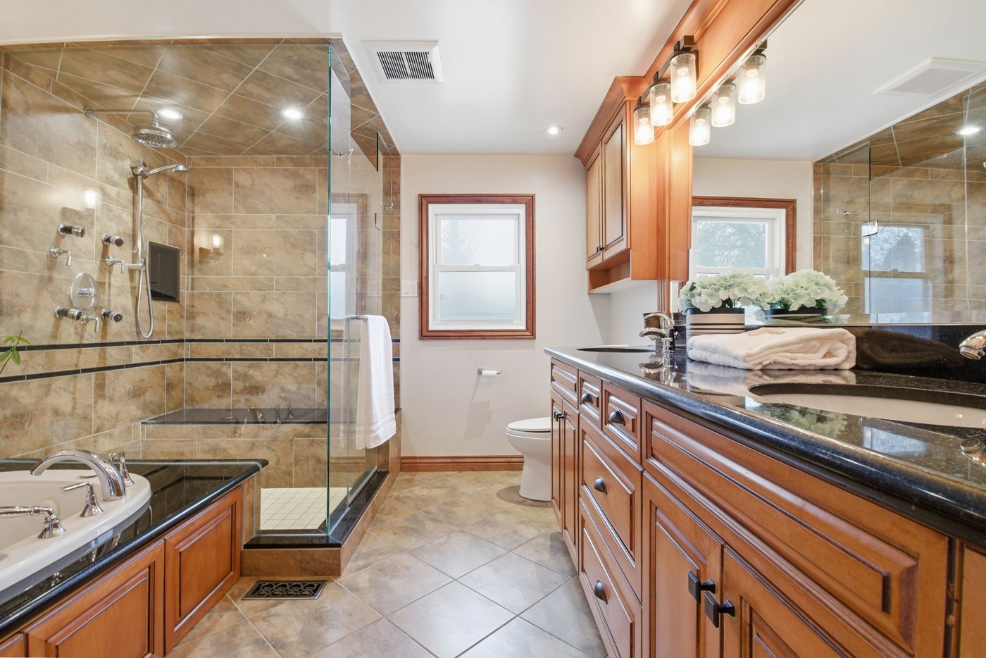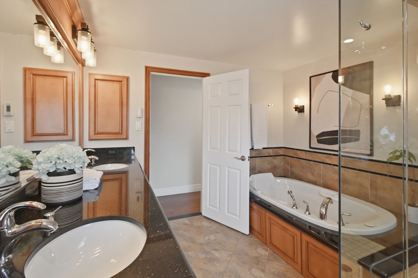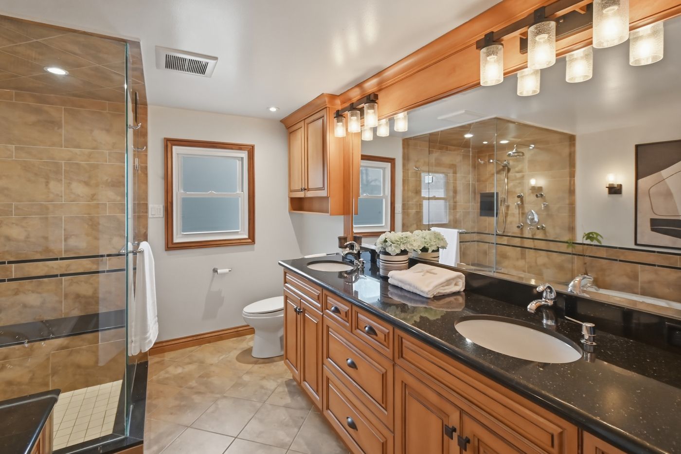 • Stylish kitchen with granite countertops and easy access to outdoor deck.