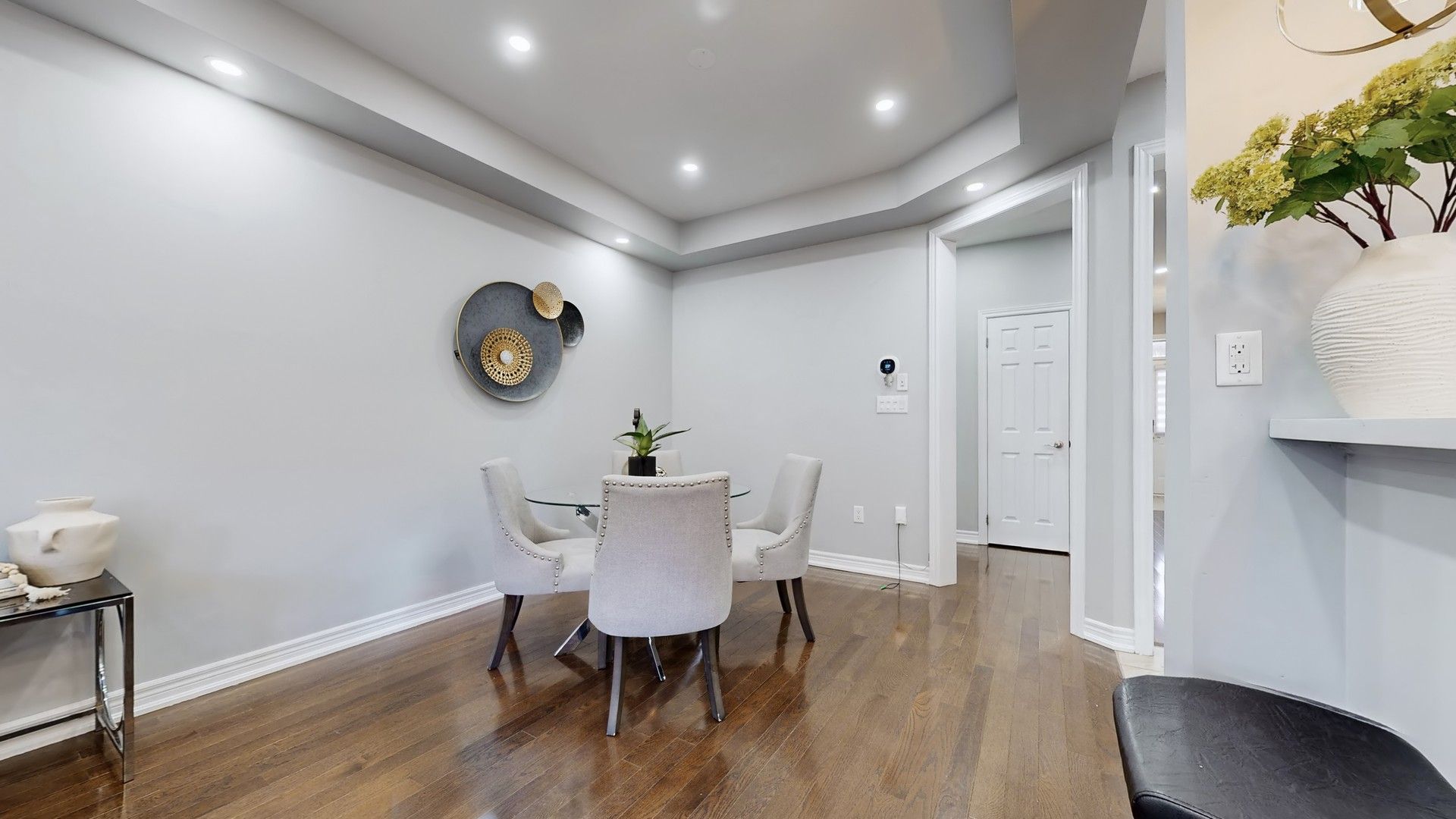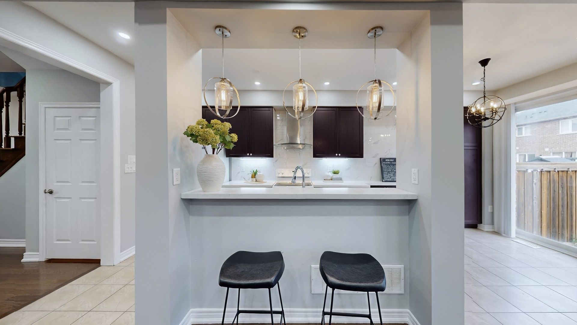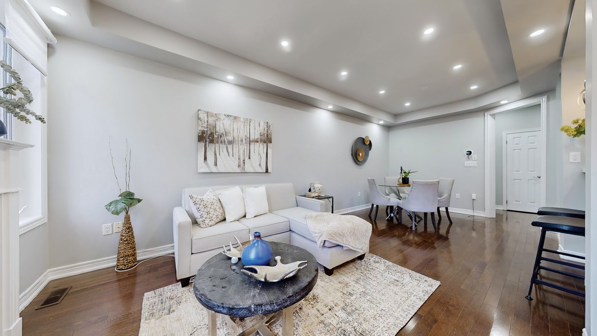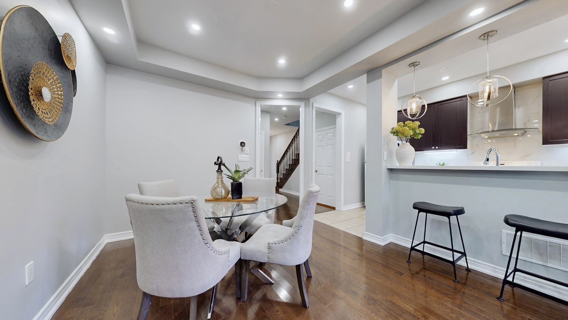 "freshly painted, whole house full of pot lights" beautifully upgraded 3-bedroom, 3-washroom freehold townhome in the desirable southfields village community. Designed for modern living, the open-concept kitchen seamlessly connects to the dining, breakfast, and family areas, with a walkout to the backyard ideal for family gatherings and summer bbqs! The spacious primary suite features a large walk-in closet and private en-suite bath. This home offers thoughtful updates, including an extended interlock driveway for extra parking and convenience. Perfectly situated close to walking trails, top-rated schools, public transit, and easy highway access. Just minutes from dougal plaza, offering subway, indian restaurants, grocery stores, bakery, and child care services everything you need at your doorstep! Elementary school and bus stop are just a few steps away, with parks, plazas, and other amenities nearby.