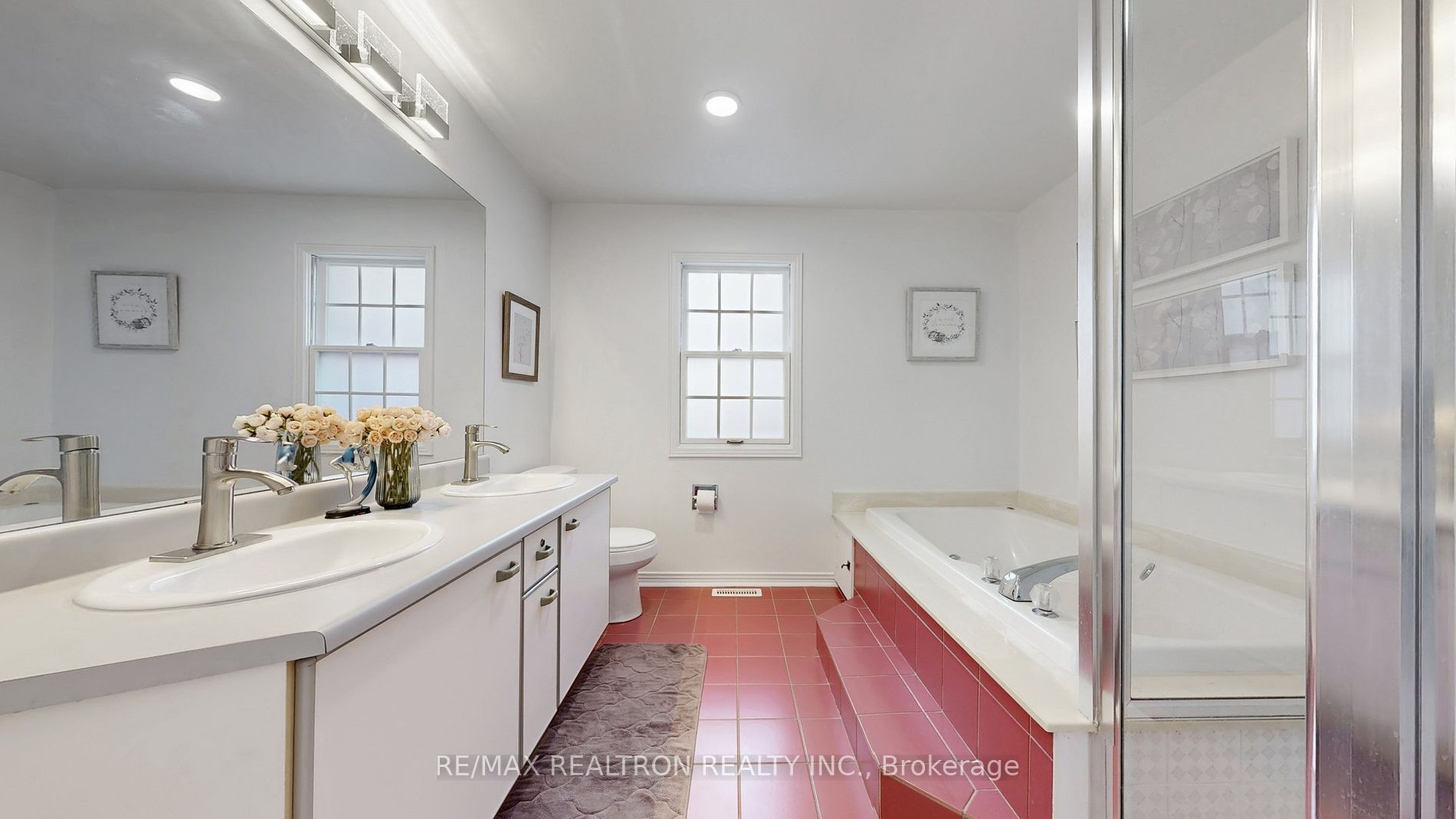 Located in a highly desirable top school area of unionville. Rare spacious front courtyard terrace is your entry point into this uniquely styled home, which boasts 3+1 bedrooms and 3. 5 bathrooms. Approximately 3000 square feet of total living space, well laid out living, eat-in kitchen w/o to the deck and overlook sunny, colorful backyard. A cathedral ceiling family room creates a serene retreat. The ensuited master bedroom owns double sinks, a shower, a tub, and a jacuzzi, elevating everyday comfort and convenience into a moment of luxury. East-west facing bedrooms with lots of sunlight. Professionally finished walk-out basement completed with 3pce bath, wet bar, and a separate entrance suitable for adult children or a multi-generation family. Great neighbourhood for family and kids, with short walk to schools. Excellent location to mall, all amenities, toogood pond, etc. This magnificent home truly has it all. Must see!!!