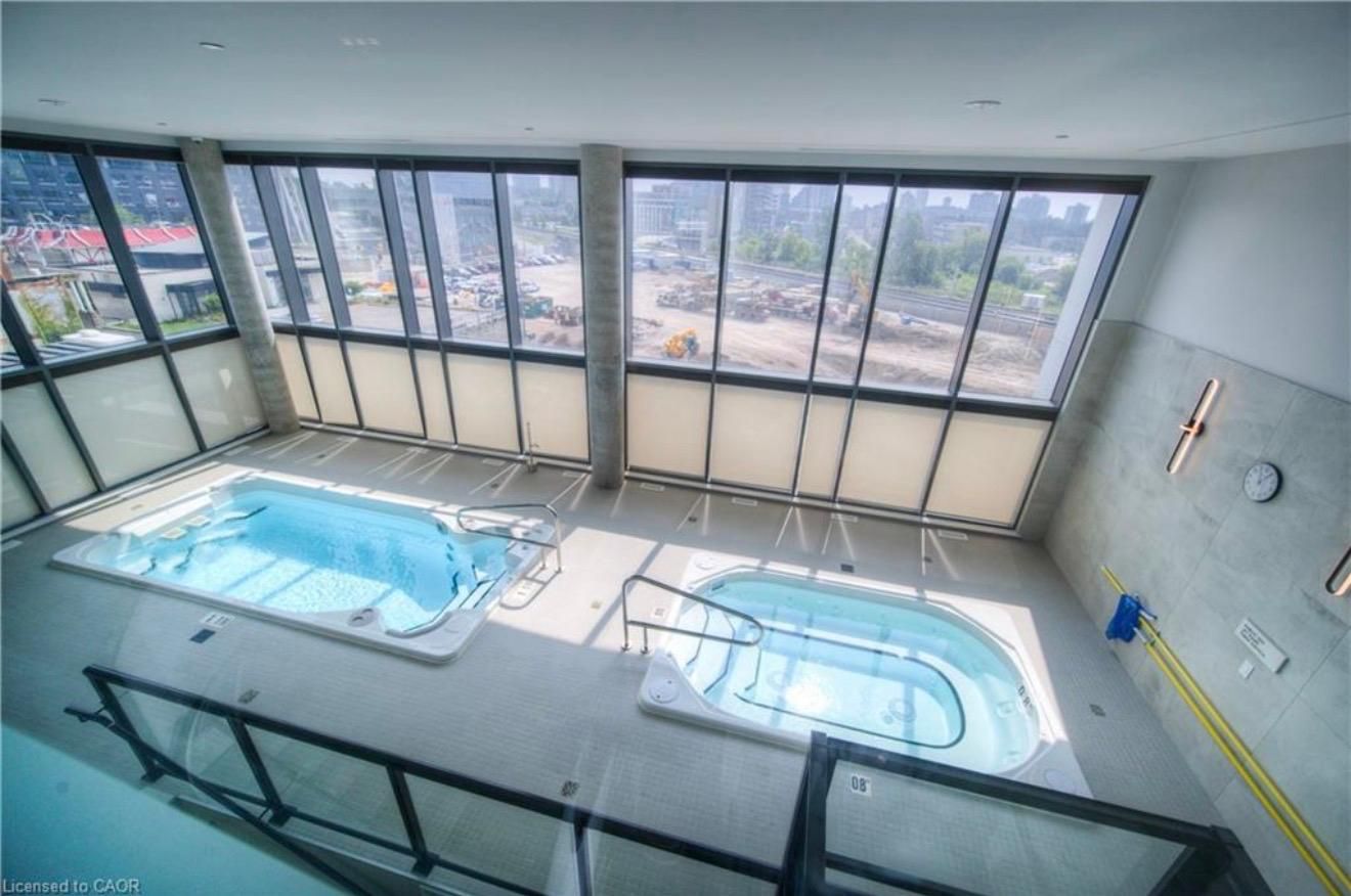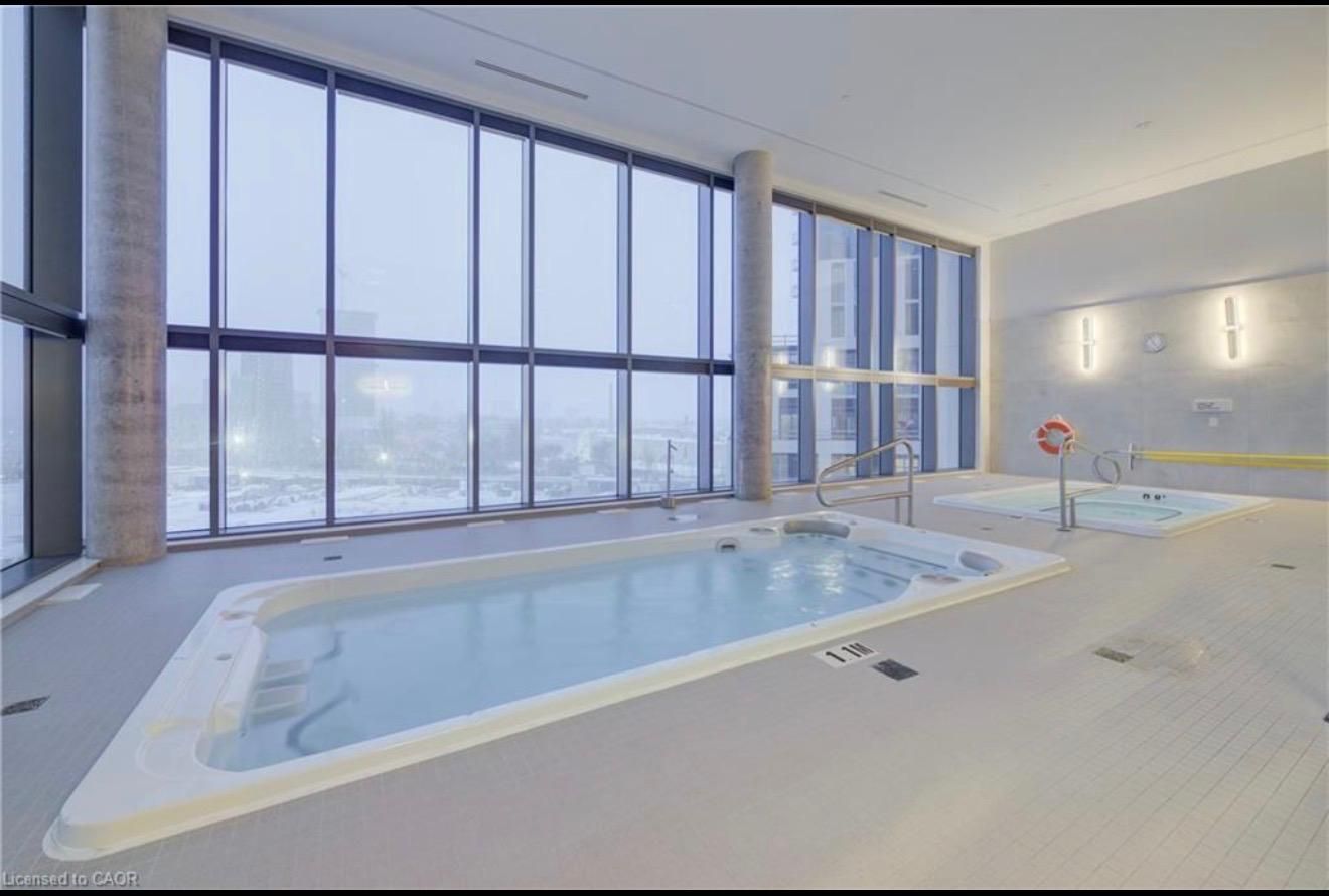 Available immediately! Modern 1+den suite in kitchener's sought-after duo condos, featuring a bright open-concept layout with floor-to-ceiling windows and a private balcony. The sleek kitchen features stainless steel appliances, quartz countertops, a tile backsplash, and ample storage, while the versatile den is ideal for a home office or guest space. The contemporary bathroom includes a quartz vanity and soaker tub, complemented by in-suite laundry and underground parking. Enjoy luxury amenities such as a fitness and wellness centre, swim spa, bowling alleys, arcade, party lounge, dog park, hit theatre, bbq areas, work pods, and cabanas, all conveniently located near google, grand river hospital, lrt, go station, shopping, dining, and victoria park.