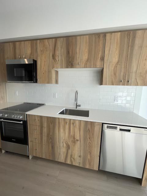 Welcome to duo condos station park community in downtown kitchener. Obstruction free view 1-bedroom suite on higher floor (31st floor)with an open-concept layout. 9-ft ceilings, floor-to-ceiling windows, quartz countertops, high-efficiency stainless steel appliances, in-suite laundry, and a private balcony with no obstructions view of the city. 24-hour concierge service. Amenities including a two-lane bowling alley with lounge, games room with bar, hydro pool, swim spa, unisex sauna, and a fully equipped fitness centre featuring a peloton studio plus yoga and pilates areas. The outdoor amenities include an outdoor gym zone, yoga platform, table tennis court, leisure courtyard with astro-turf for lawn games, and beautifully landscaped terraces. Perfectly located just steps from google, the lrt, go station & hospital.