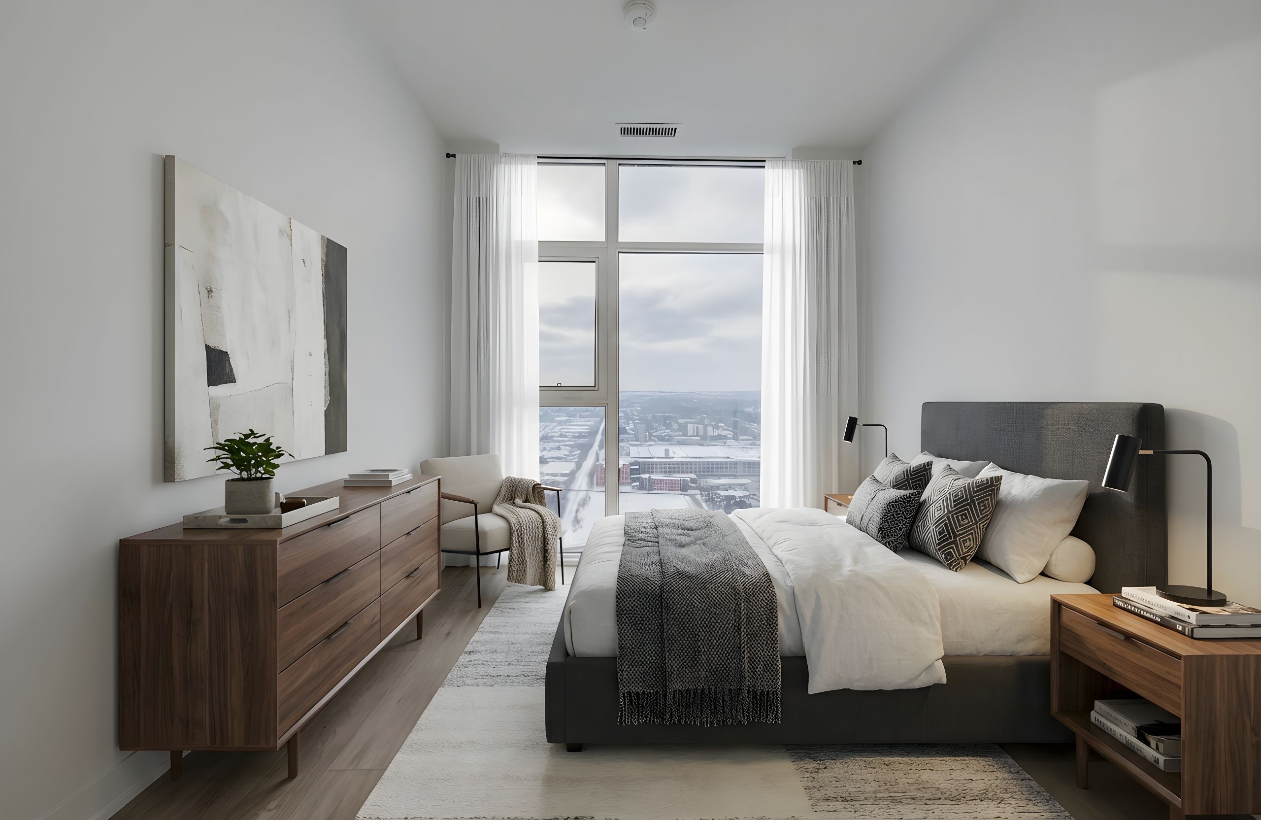 • Sun-filled one-bedroom suite with stunning city views on the 27th floor.