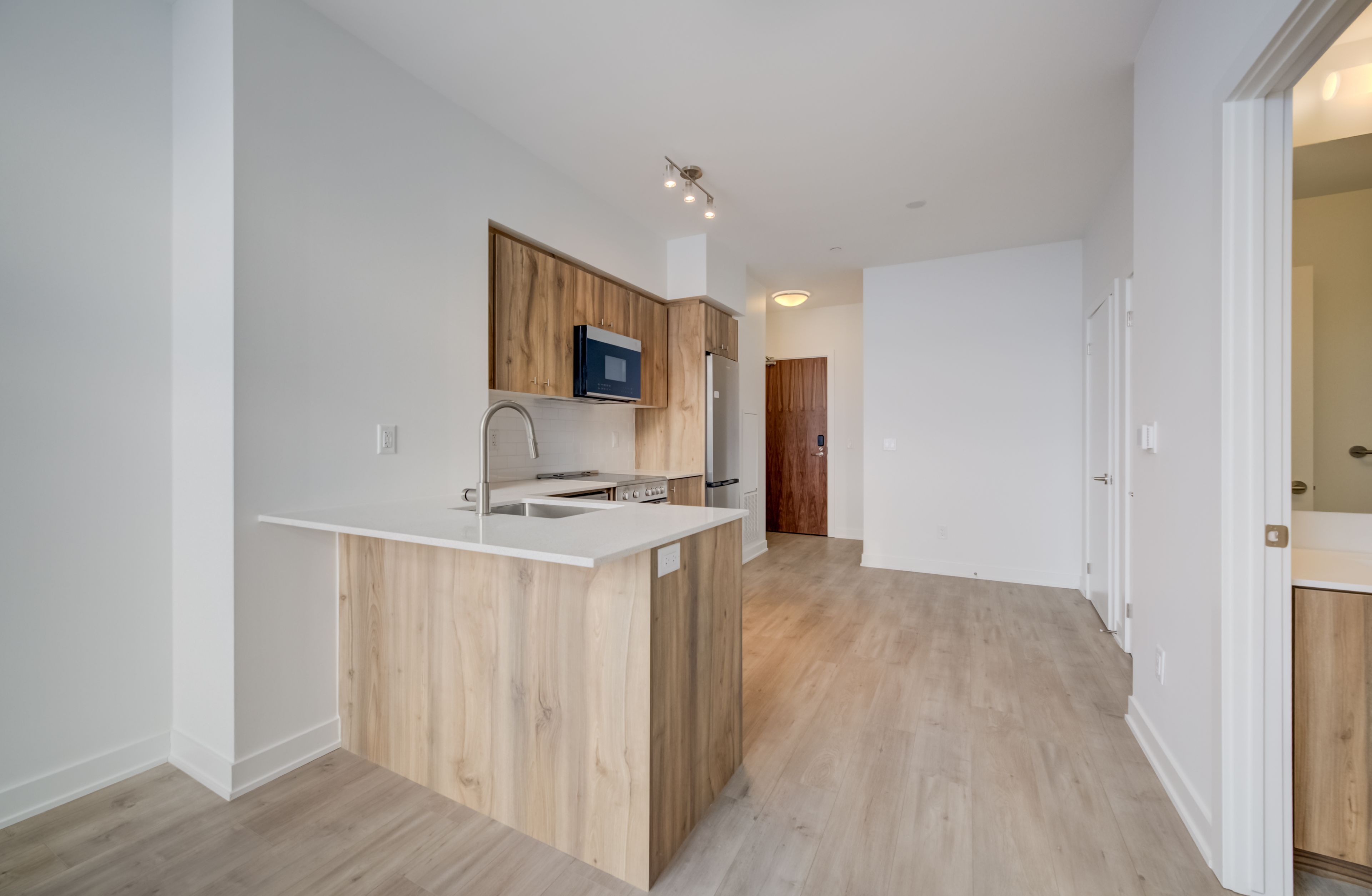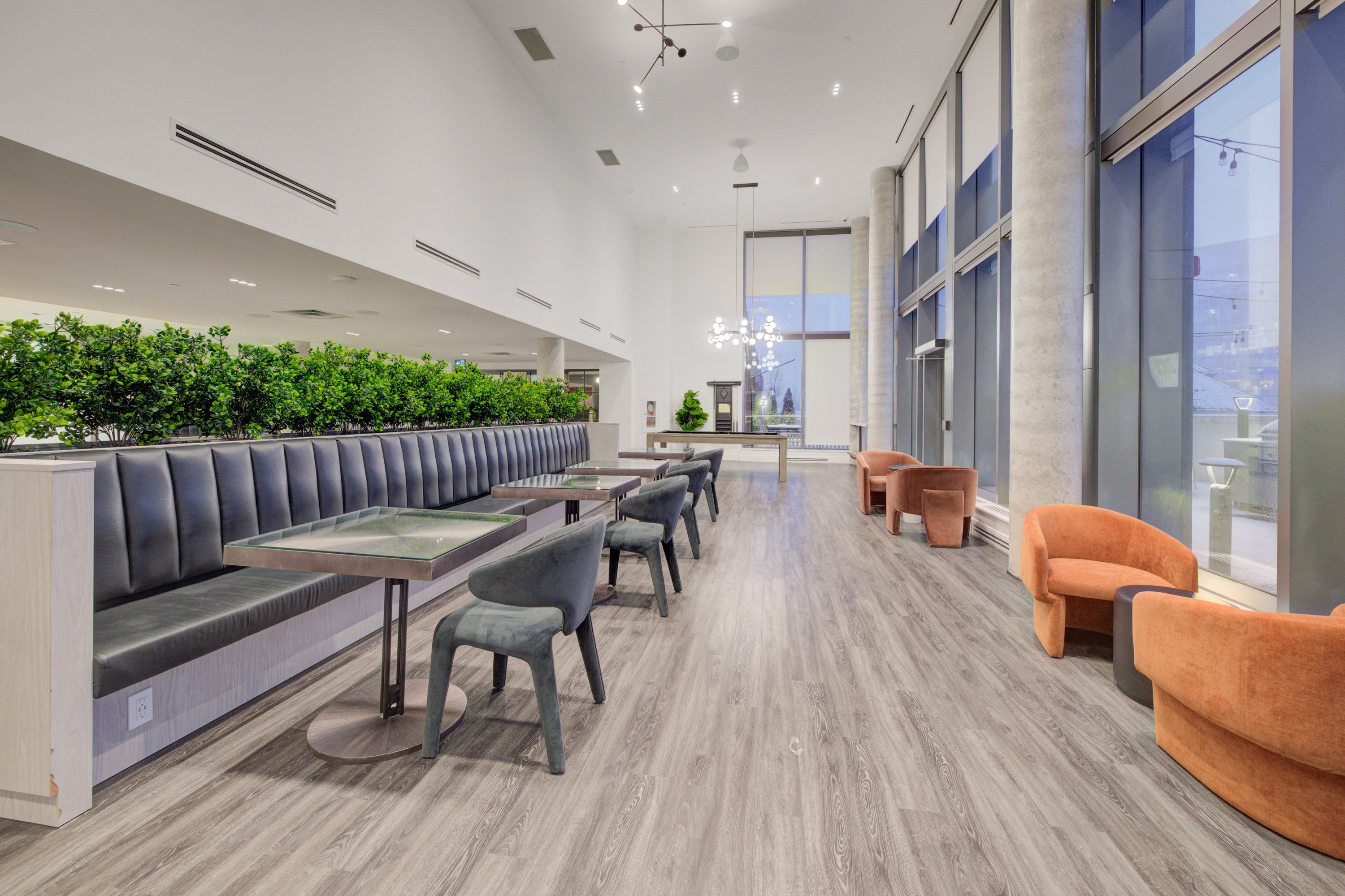 • Modern open-concept layout with high ceilings and contemporary finishes.