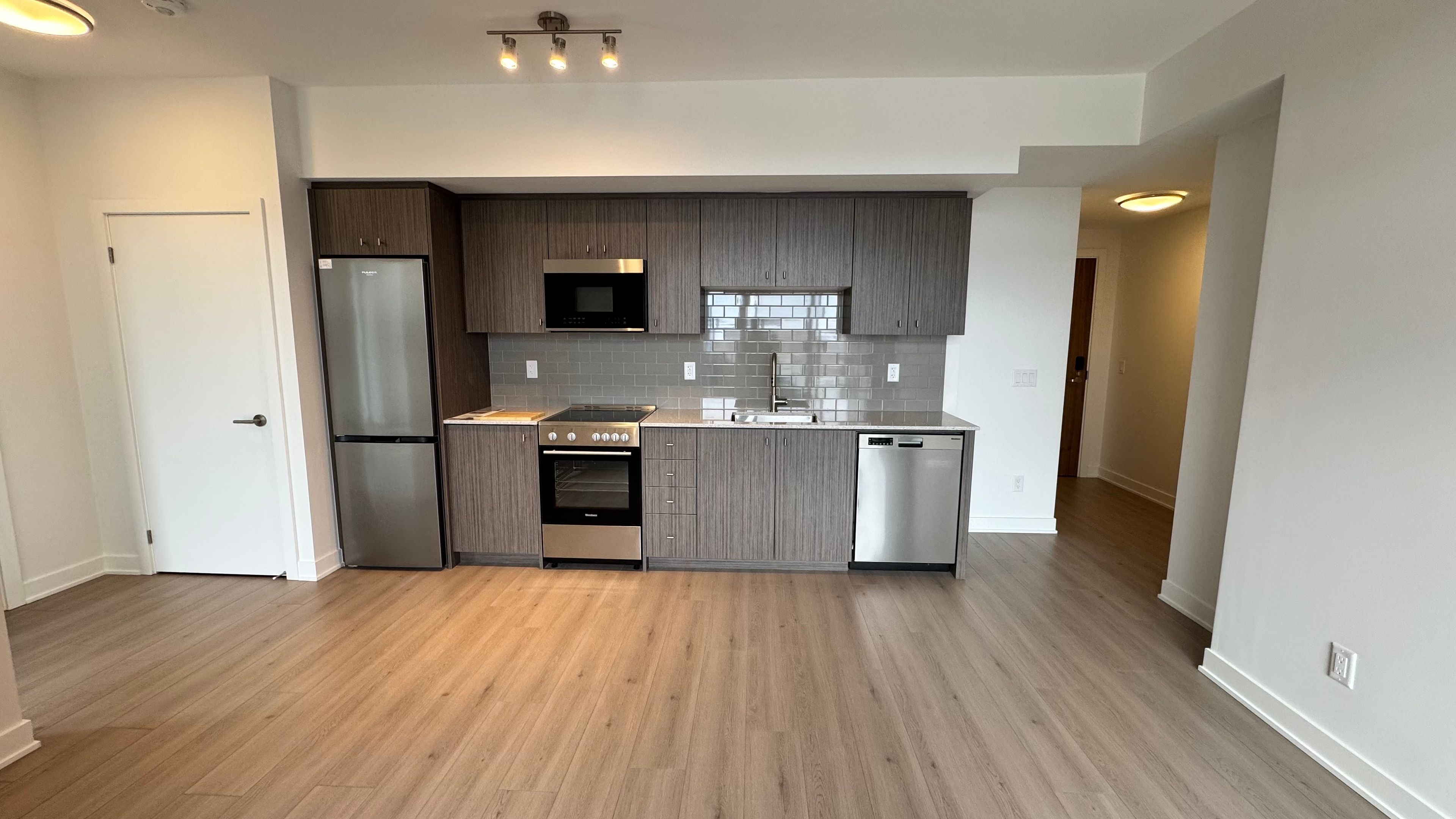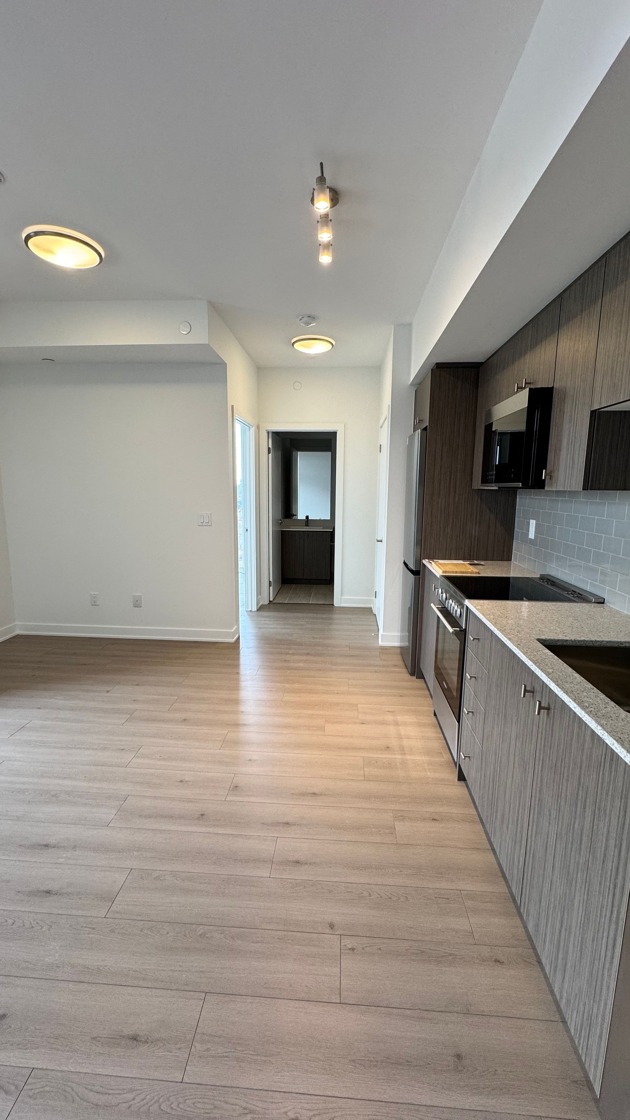 Welcome to unit 806 at station park duo, the latest addition to kitchener's sought-after urban community. This bright and impeccably finished one-bedroom, one-bath condo offers stylish, low-maintenance living in the heart of midtown. The modern kitchen features stainless steel appliances, granite countertops, soft-close cabinetry, and pot lights, seamlessly flowing into a sun-filled living area. Step out onto your private balcony and enjoy breathtaking sunset views. In-suite laundry provides added convenience, while one underground parking space. Station park is renowned for its exceptional resort-style amenities, including concierge service, a sky deck, swim spa and hot tubs, bowling lanes, a fully equipped fitness centre with peloton and yoga studio, resident lounges, co-working spaces, bbq terraces, dog-friendly amenities, ev charging, and more. Located just steps from the lrt, google, downtown kitchener, uptown waterloo, dining, shopping, and the innovation district, this is urban living at its finest.