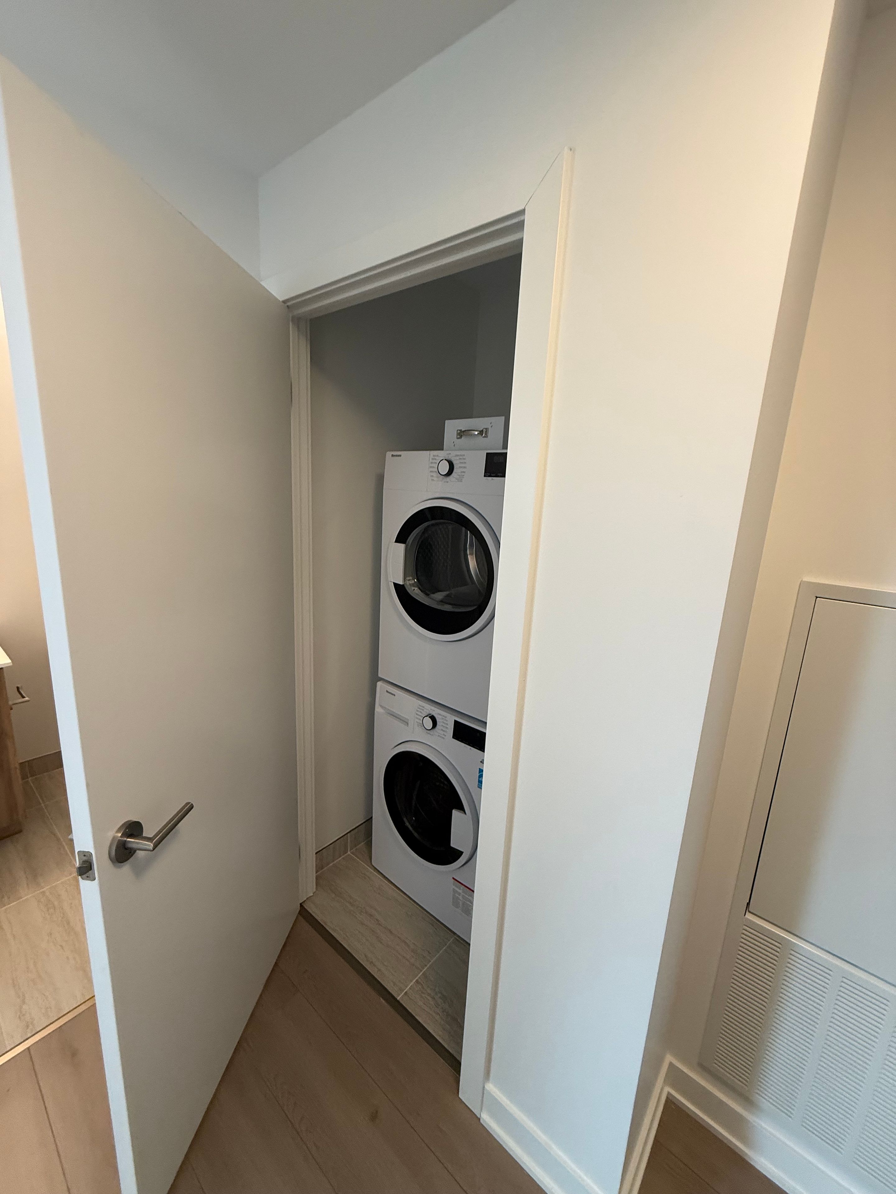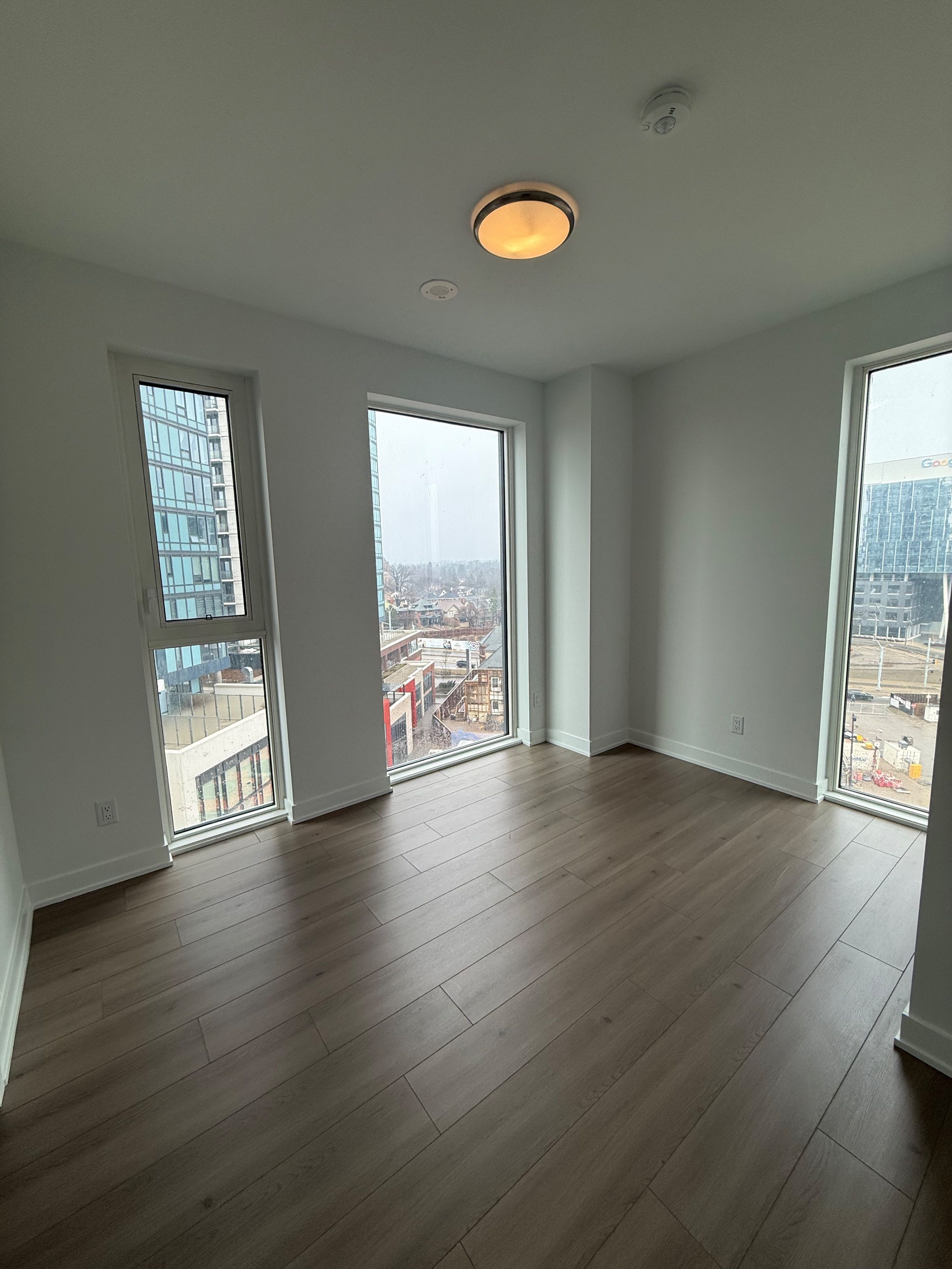 Welcome to this brand-new never-lived-in 2-bedroom, 2-bathroom suite with 1 parking and 1 locker. Enjoy smooth ceilings, floor-to-ceiling windows, and a private balcony with unobstructed views of the google building and the city's tech hub. Modern kitchen with premium stainless steel appliances and sleek countertops engineered flooring throughout-suite laundry. Prime location and steps from king street west, downtown kitchener, and the lrt. Minutes to google office, communitech, and the accelerator centre. Walk to shopping, groceries, grand river hospital, victoria park, and wilfrid laurier's pharmacy school.