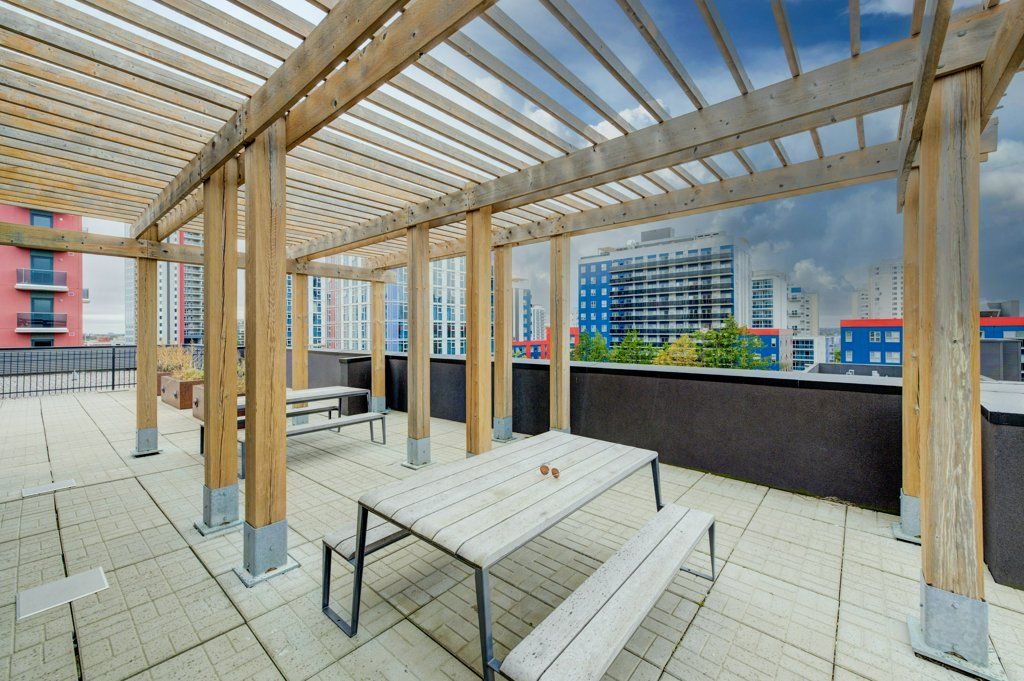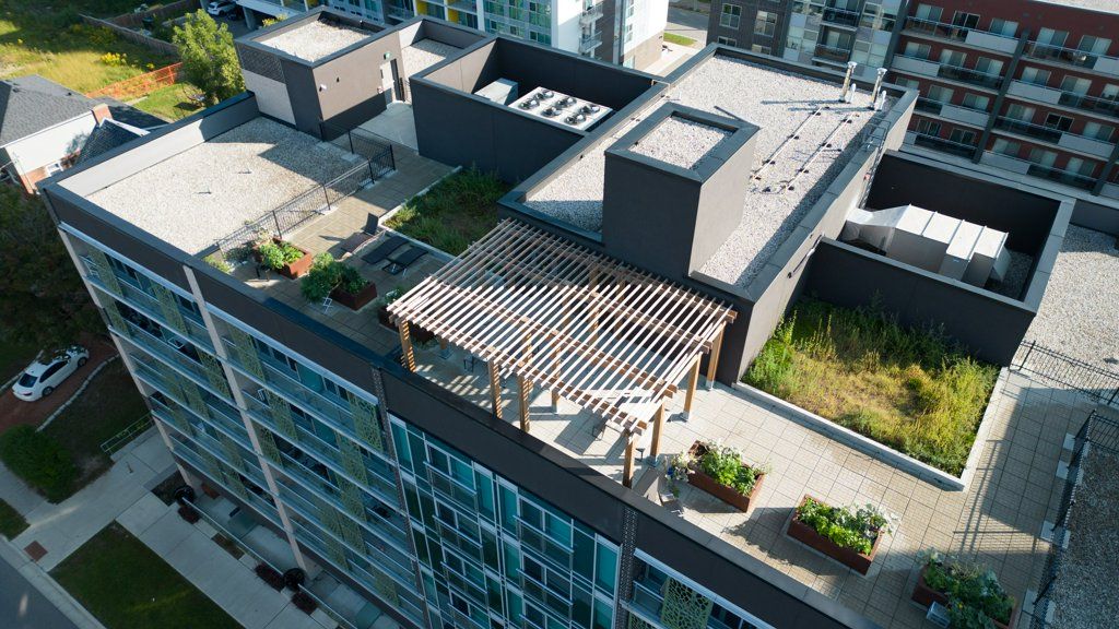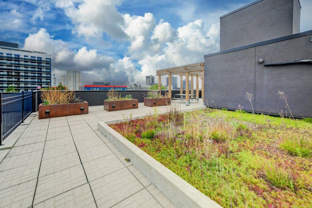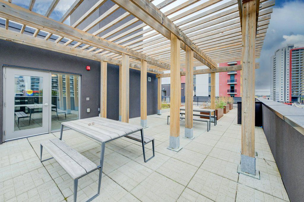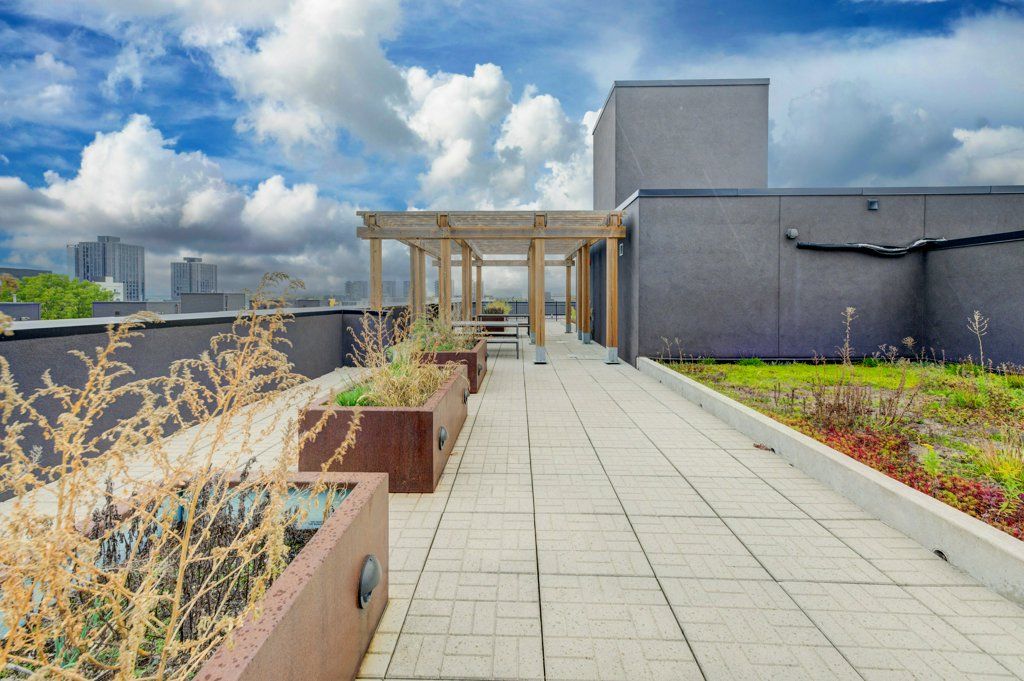 • Building amenities include rooftop deck, bike storage, and secure entry.