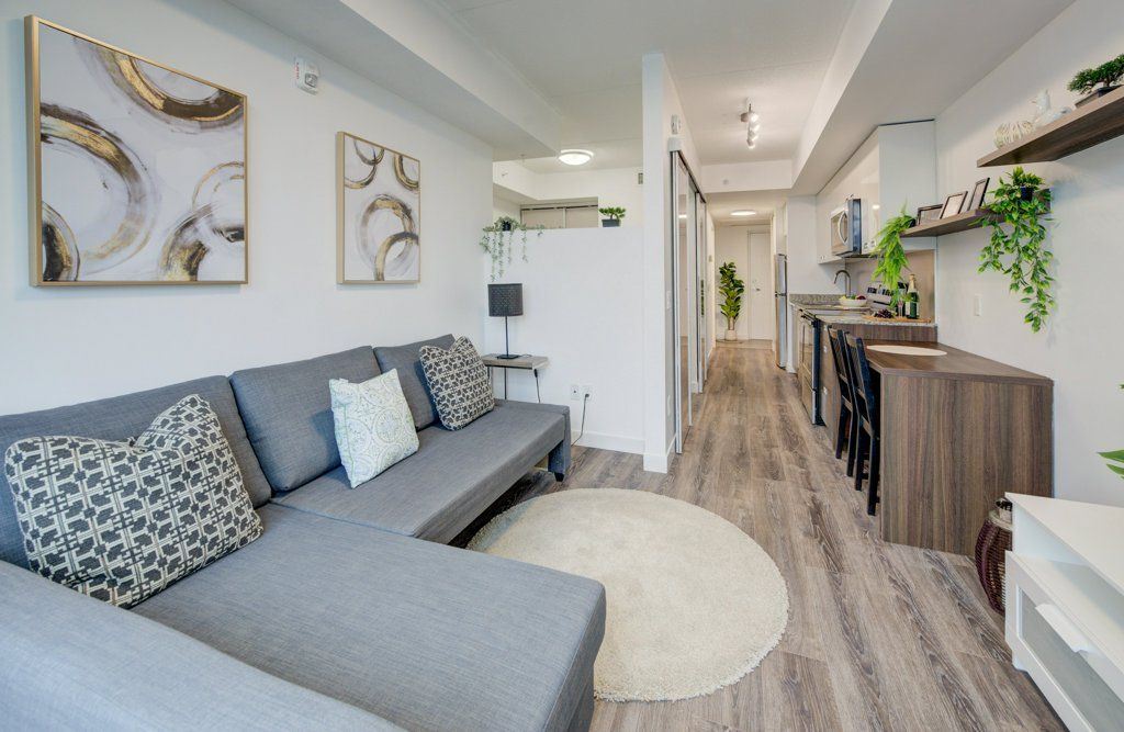 Lite and sophisticated 1-bedroom, 1-bath condo with modern finishes and a smart, functional layout. The optimized kitchen offers ample storage and sleek design, complemented by in-suite laundry and a juliette balcony that brings in natural light. A cozy and welcoming home with style and comfort combined. Unbeatable location-close to universities, colleges, shopping, dining, and public transit. Perfect for students or professionals seeking convenience and accessibility. The building features outstanding amenities, including rooftop deck with bbqs, bike storage, visitor parking, and secure entry. Modern urban living at its finest.