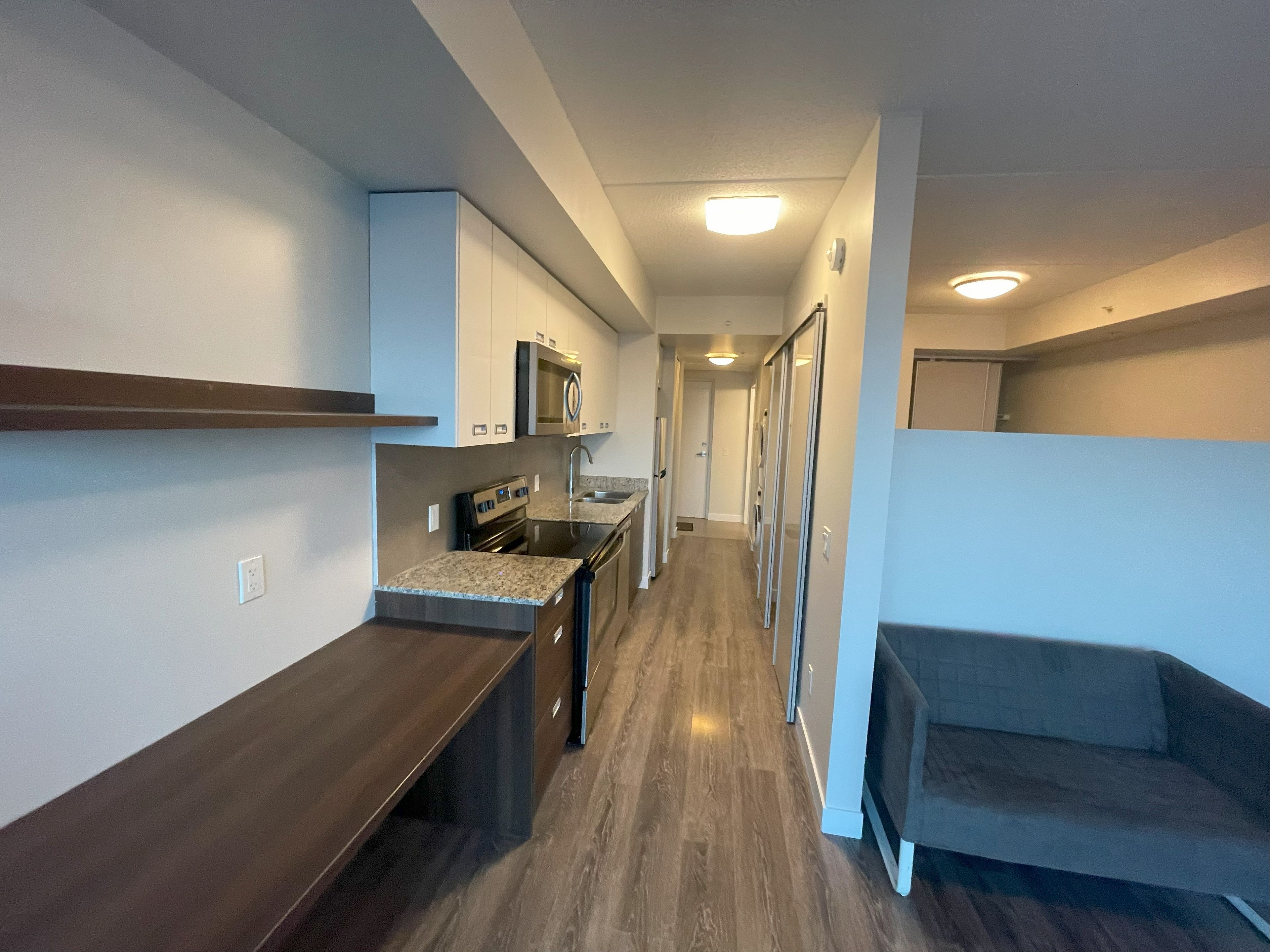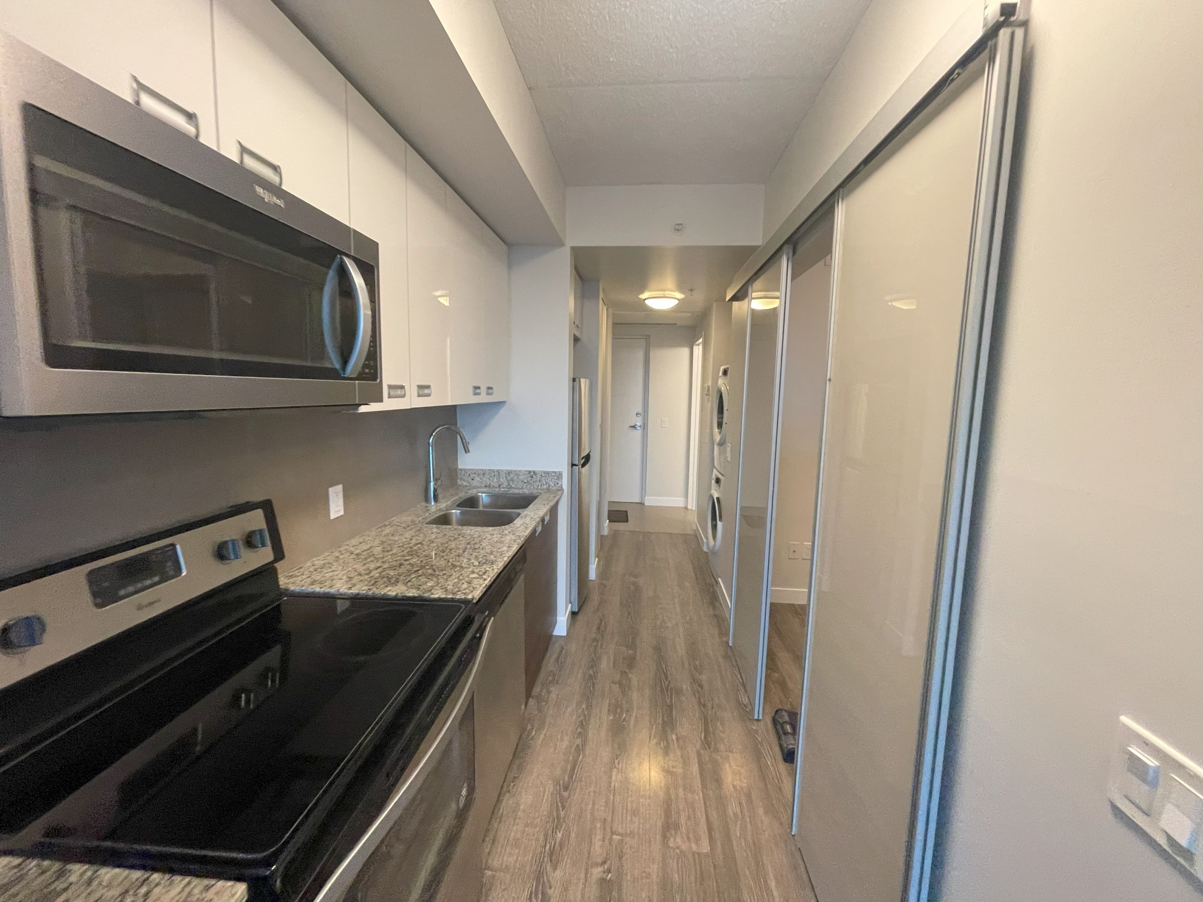 • Building amenities include rooftop deck, bike storage, and secured entry.