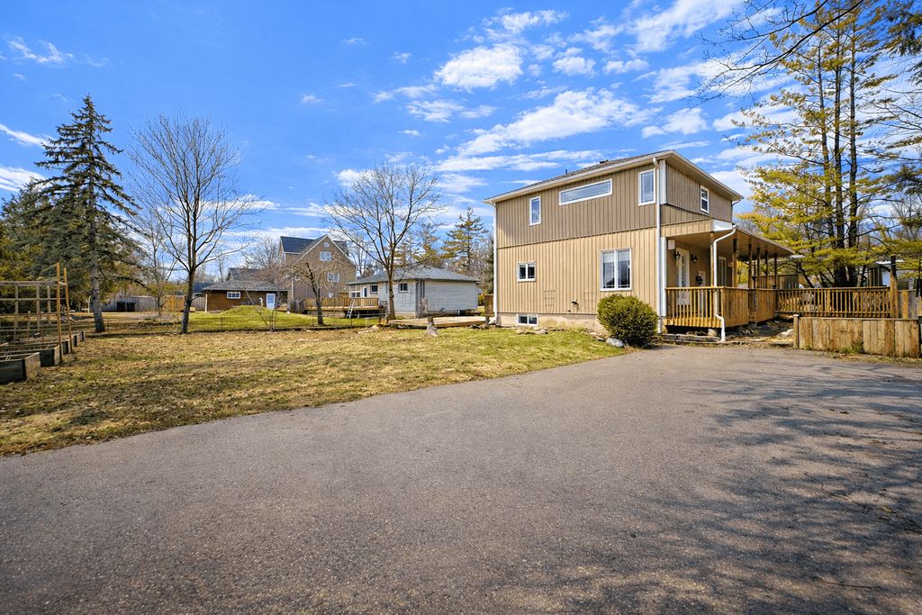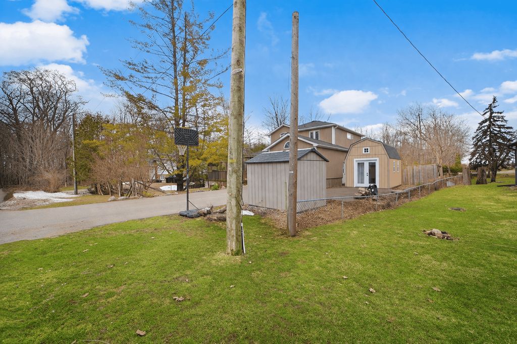 Your private lakeside retreat with exclusive beach privileges & in-law suite potential ! Experience the best of lakeside living with deeded access to rockaway beach, a private, members-only escape just a short walk away. Enjoy exceptional amenities including a park, dock, boat launch, picnic areas, and breathtaking sunset views. Ideally situated under five minutes' walk from friday harbour resort, you'll have convenient access to fine dining, boutique shops, golf, a full-service marina, and year-round activities. Set on a generous, tree-lined lot, this property offers a peaceful and private setting. The home's attractive exterior features updated garden beds, a flagstone walkway, a large covered deck, a charming pergola, and an additional raised deck-perfect for outdoor entertaining. Inside, approximately 2,400 sq ft of finished living space showcases hardwood flooring, pot lighting, and neutral décor throughout. The well-appointed kitchen includes a stainless steel fridge and freezer combo, gas stove, ample cabinetry, and a bright eat-in area overlooking the natural surroundings. The main level also offers a cozy living room, a versatile den, and a convenient laundry room. Upstairs, you'll find three spacious bedrooms, including a primary retreat complete with a walk-in closet and a luxurious 5-piece ensuite featuring a jetted soaker tub ( as is ) and a glass-enclosed steam shower. The partially finished basement, with its own separate side entrance, is ideal for an extended family or potential income. It includes a second kitchen, living area, bedroom, bathroom, and laundry space. Additional features include an oversized single-car garage with interior access and loft storage, as well as two large driveways providing plenty of room for vehicles, rvs, and recreational equipment. A recently upgraded 14 x 9 ft shed with power and loft space offers flexible use as a bunkhouse, workshop, or studio. Remember, that your neighbour is friday harbour first class resort!
