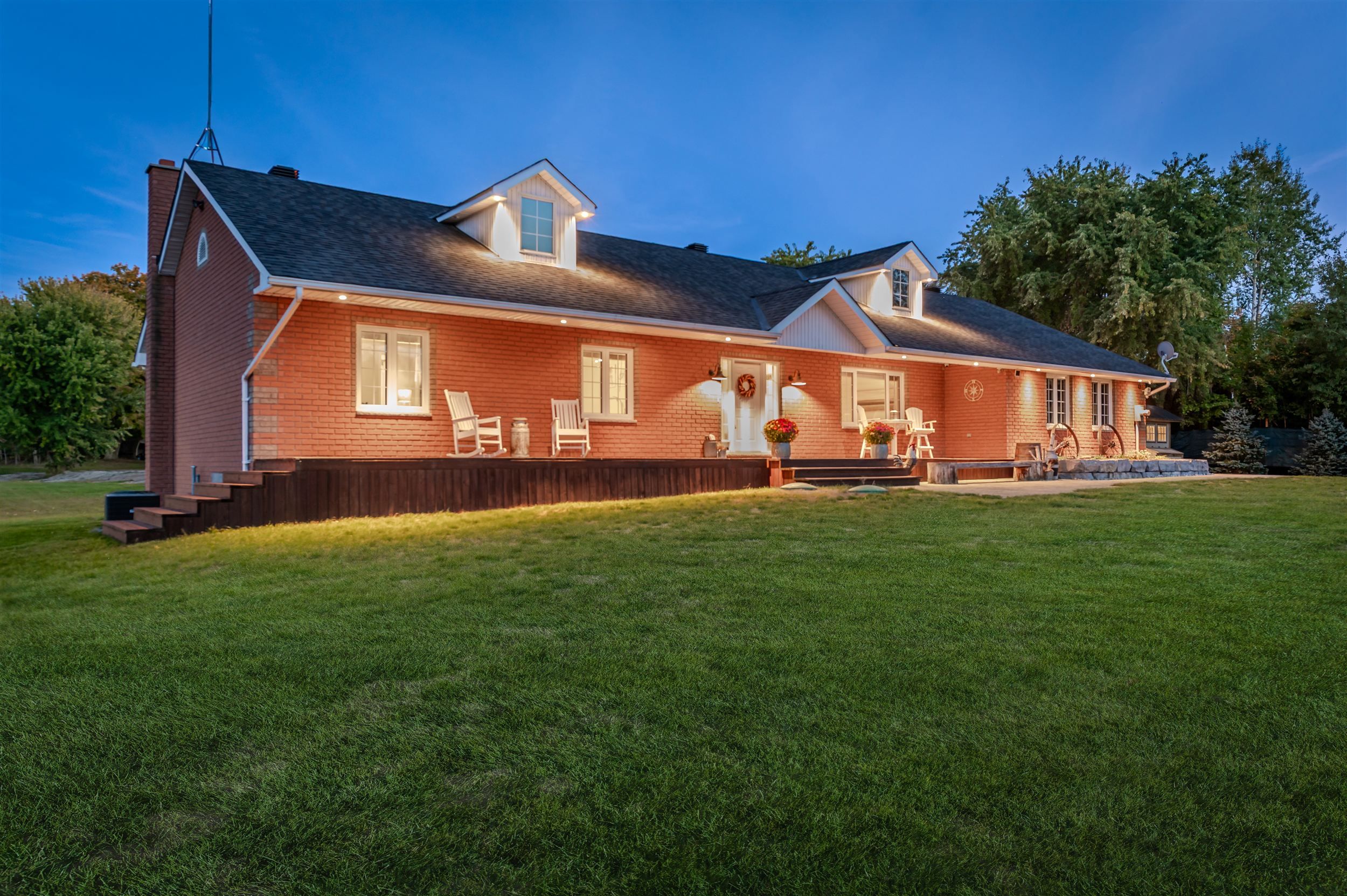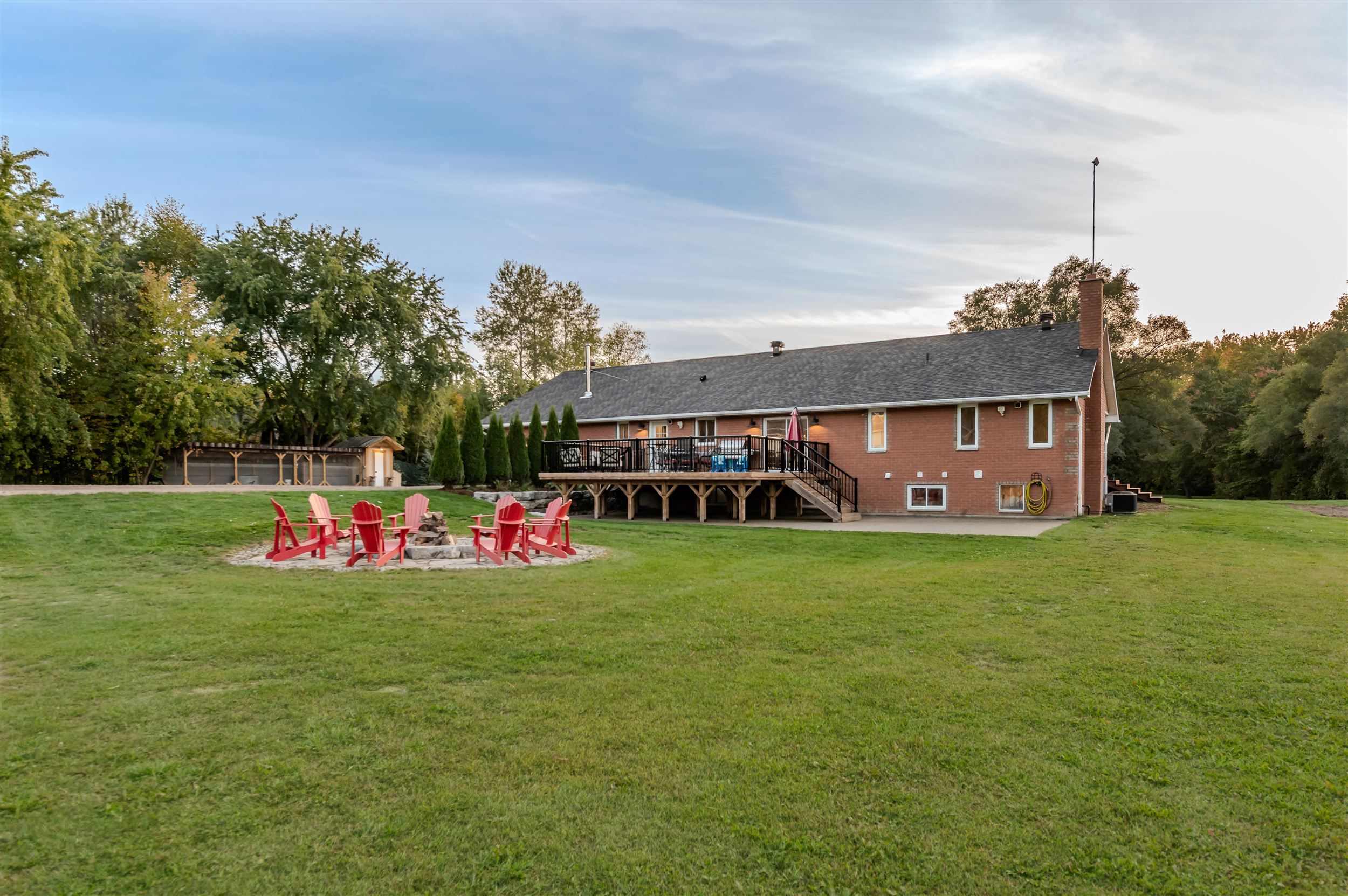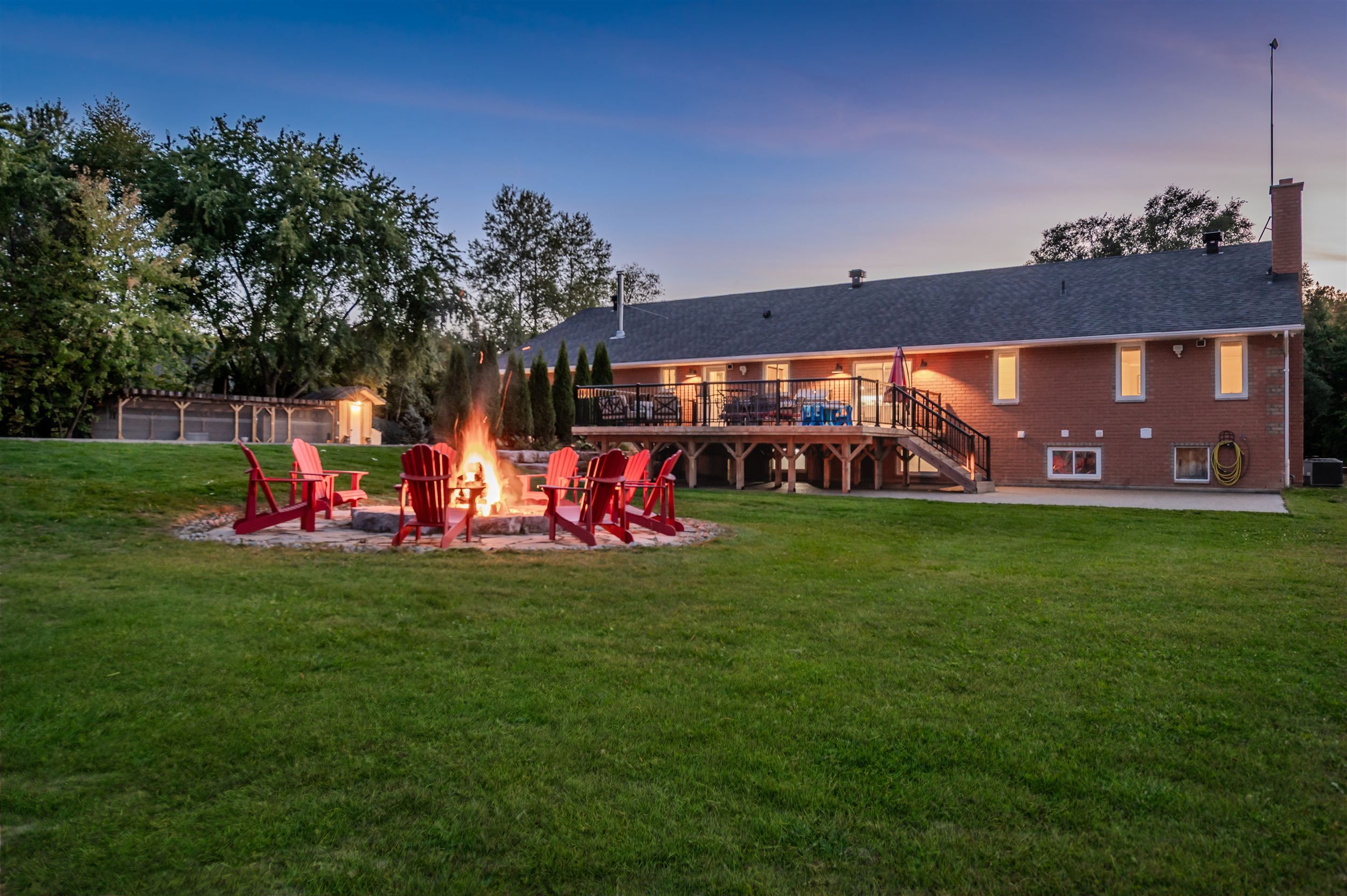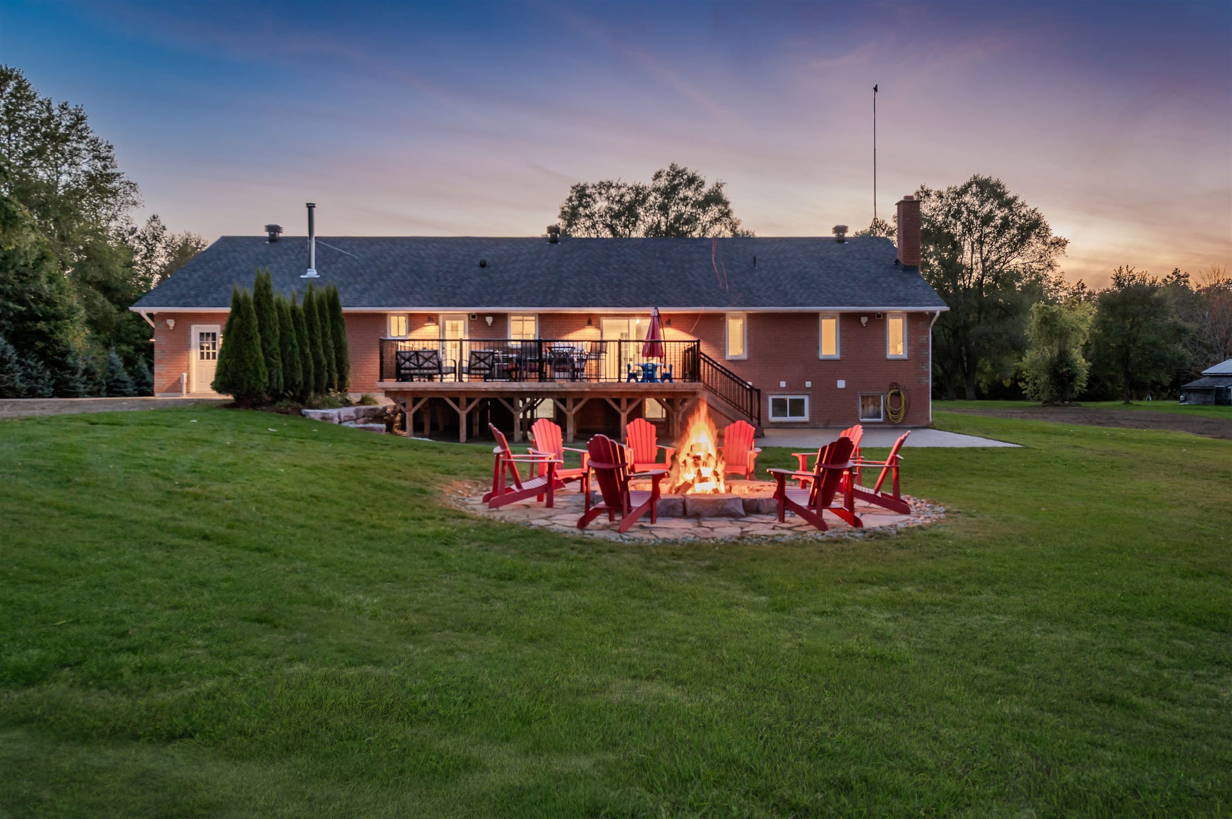 10 acres with incredible workshop & charming brick bungalow! Large 5000 sq. Ft. Detached workshop is ideal for car enthusiasts, truckers, contractors or anyone craving additional space and privacy. This property is a rare opportunity offering both a comfortable home and a massive workshop -aprofessionally engineered structure with 16 ft ceilings, equipped with a 200 amp service andfeatures 3 oversized 14' by 14' garage doors, 1 additional 10' 12' door, and 2 metal mandoors. Endless potential for storage or hobby use. The interior of the home features 3spacious bedrooms floor plus 3 fully renovated bathrooms on the main level. Open-conceptfamily room with electric fireplace, pot lighting and hardwood floors. Generous kitchen withcenter island, breakfast bar, and large eating area with walk-out to deck. Partially finishedlower level with additional bedrooms, 4-piece bathroom and flexible space to create a largerecreational room, games area, or home gym with separate entrance via garage. Professionallylandscaped with garden beds, composite deck and flagstone firepit area. Huge approx. 1200sq. Ft. Aggregate concrete patio-perfect for entertaining. Interlock front walkway with 80mmpavers. Chicken coop with run & power plus goat pen with coop- ideal for a mini hobby farm. Attached double car garage and expansive asphalt driveway with ample parking for multiplevehicles. Great location, approximately 15 minute drive to highway 400! Whether you arelooking for peaceful rural living or need a property with a serious workshop space, this oneof-a-kind bungalow checks all the boxes. Don't miss your chance to make this exceptionalproperty yours! Workshop can be used to generate income, can be usedto store boats, rig's or cars! A rare find!