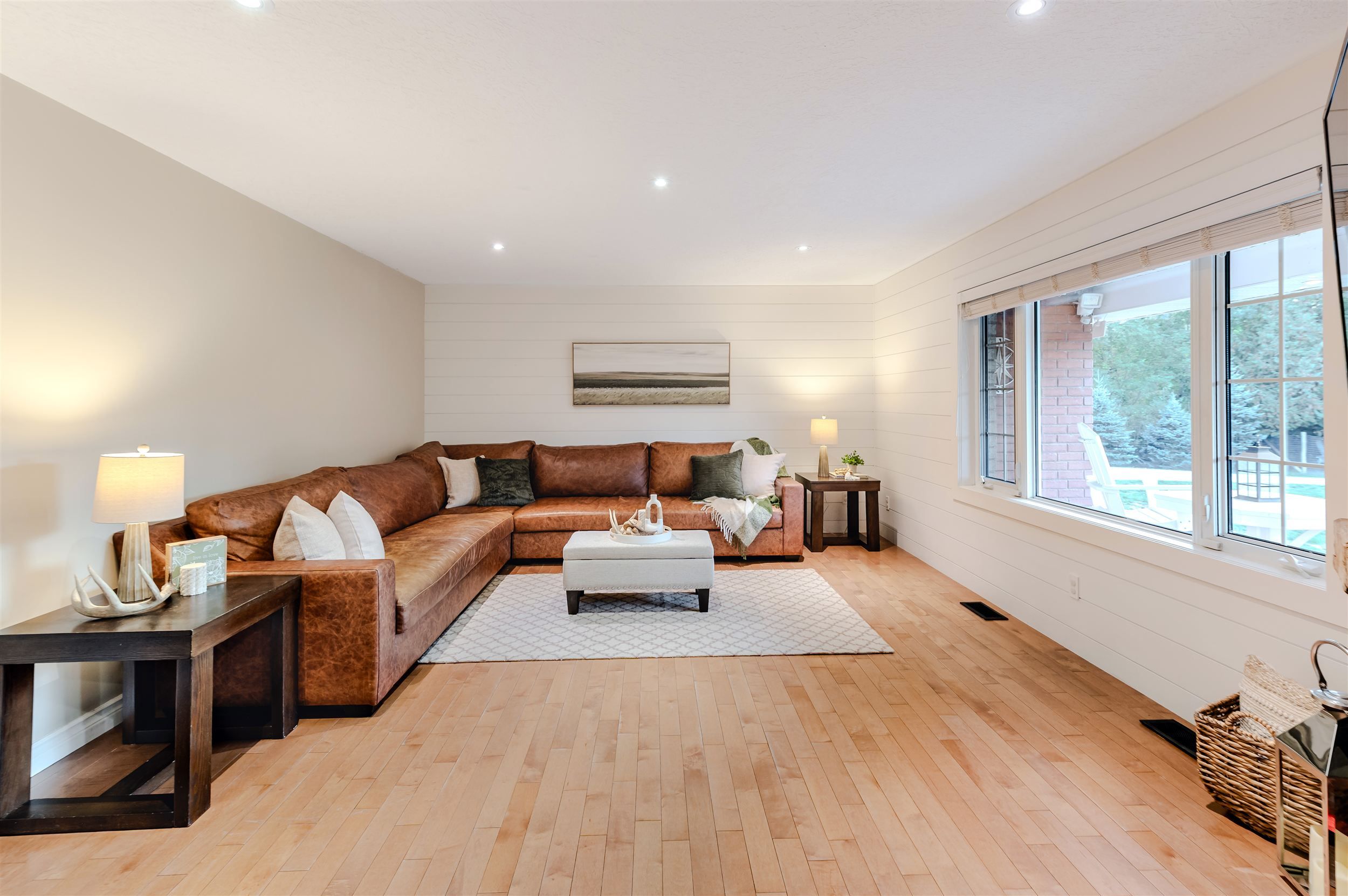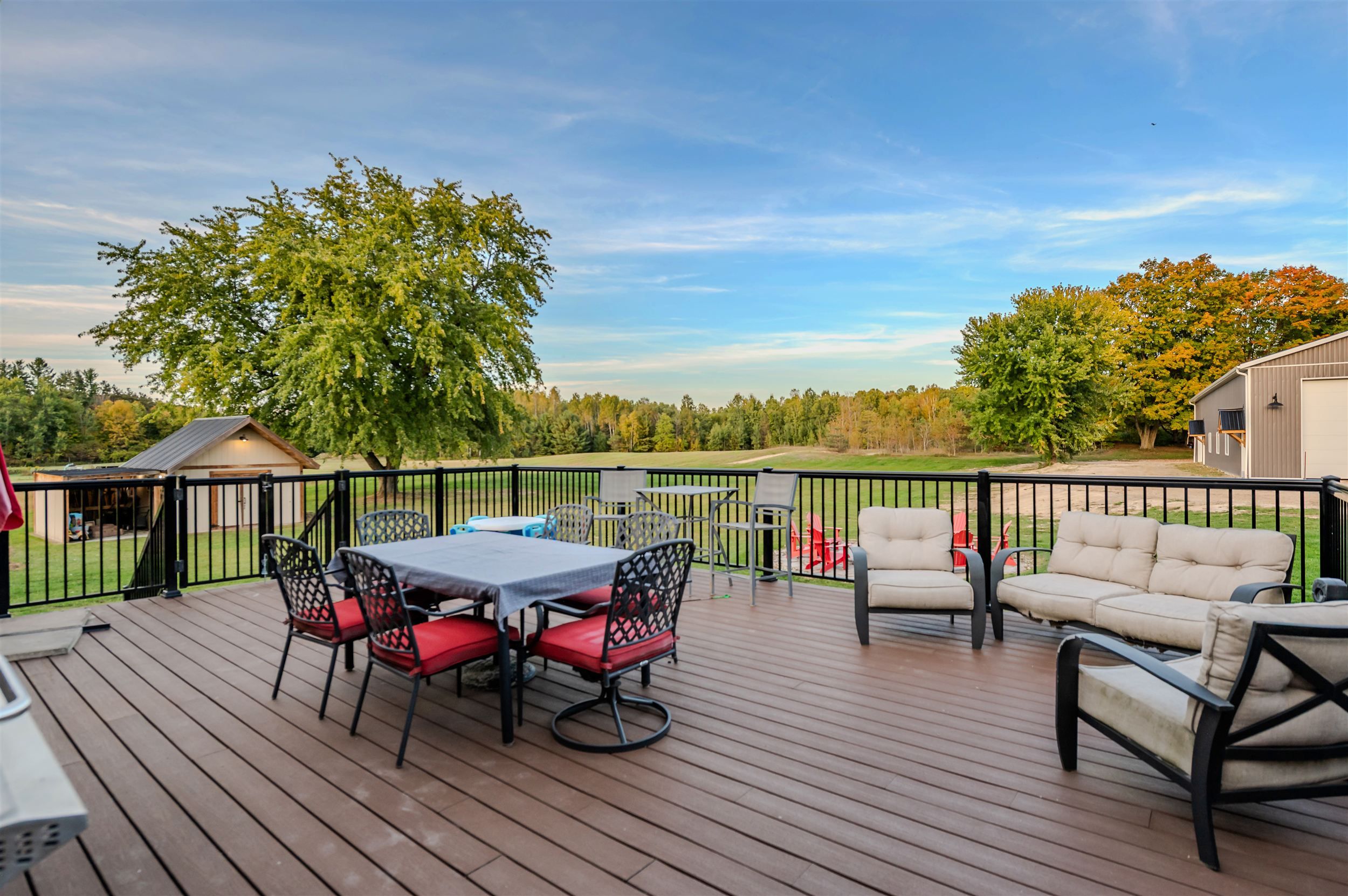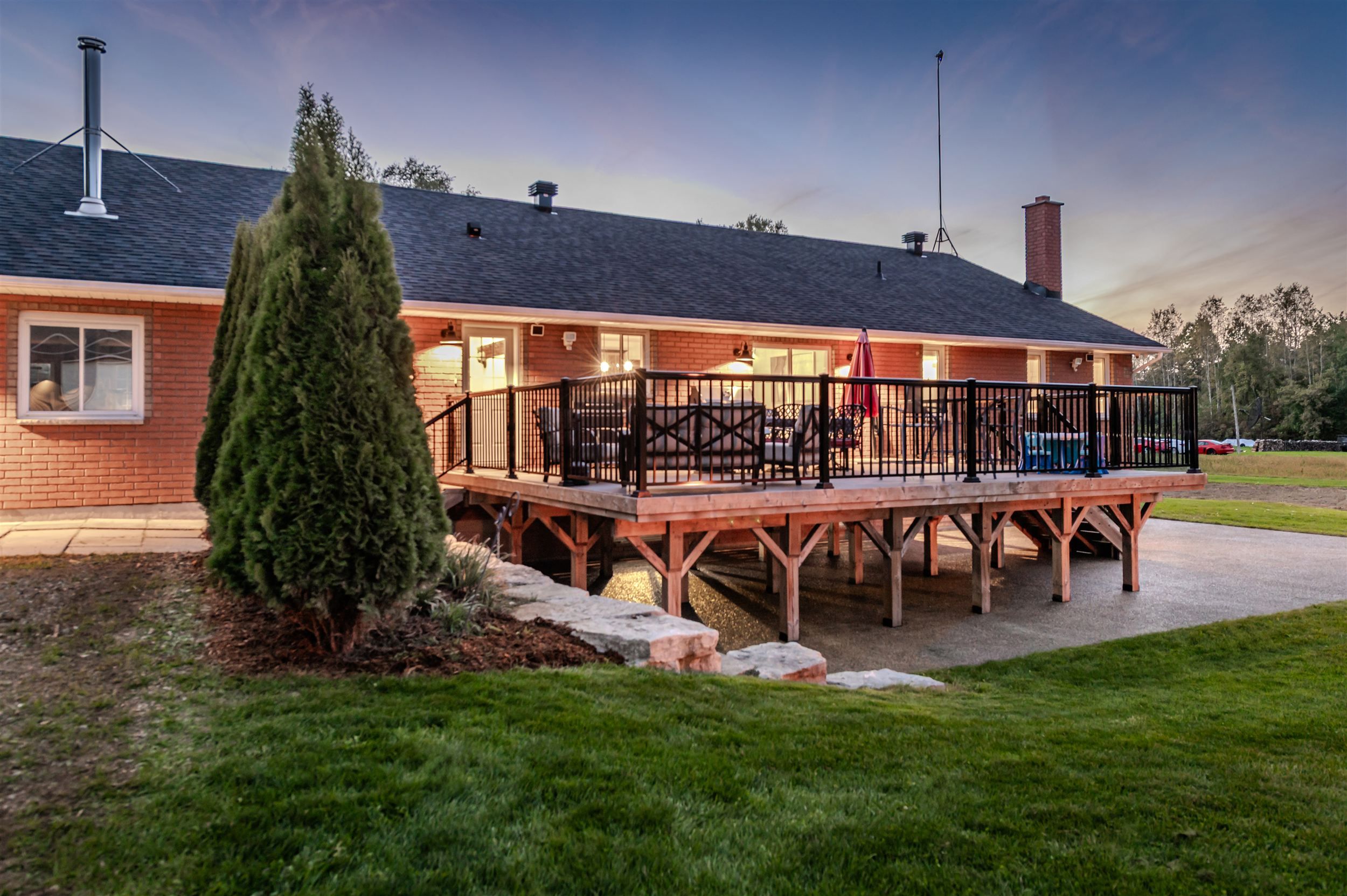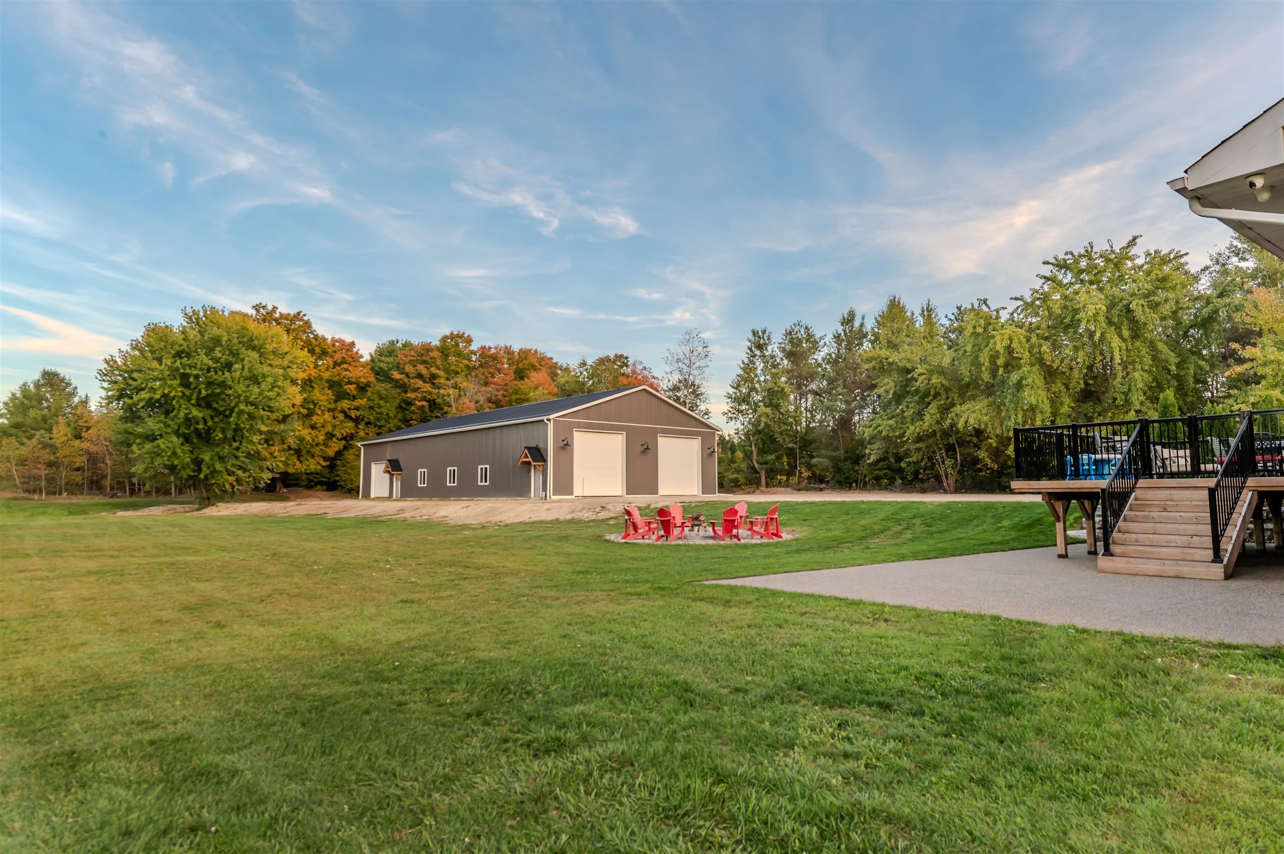 • Expansive outdoor areas, including a large concrete patio and landscaped yard.