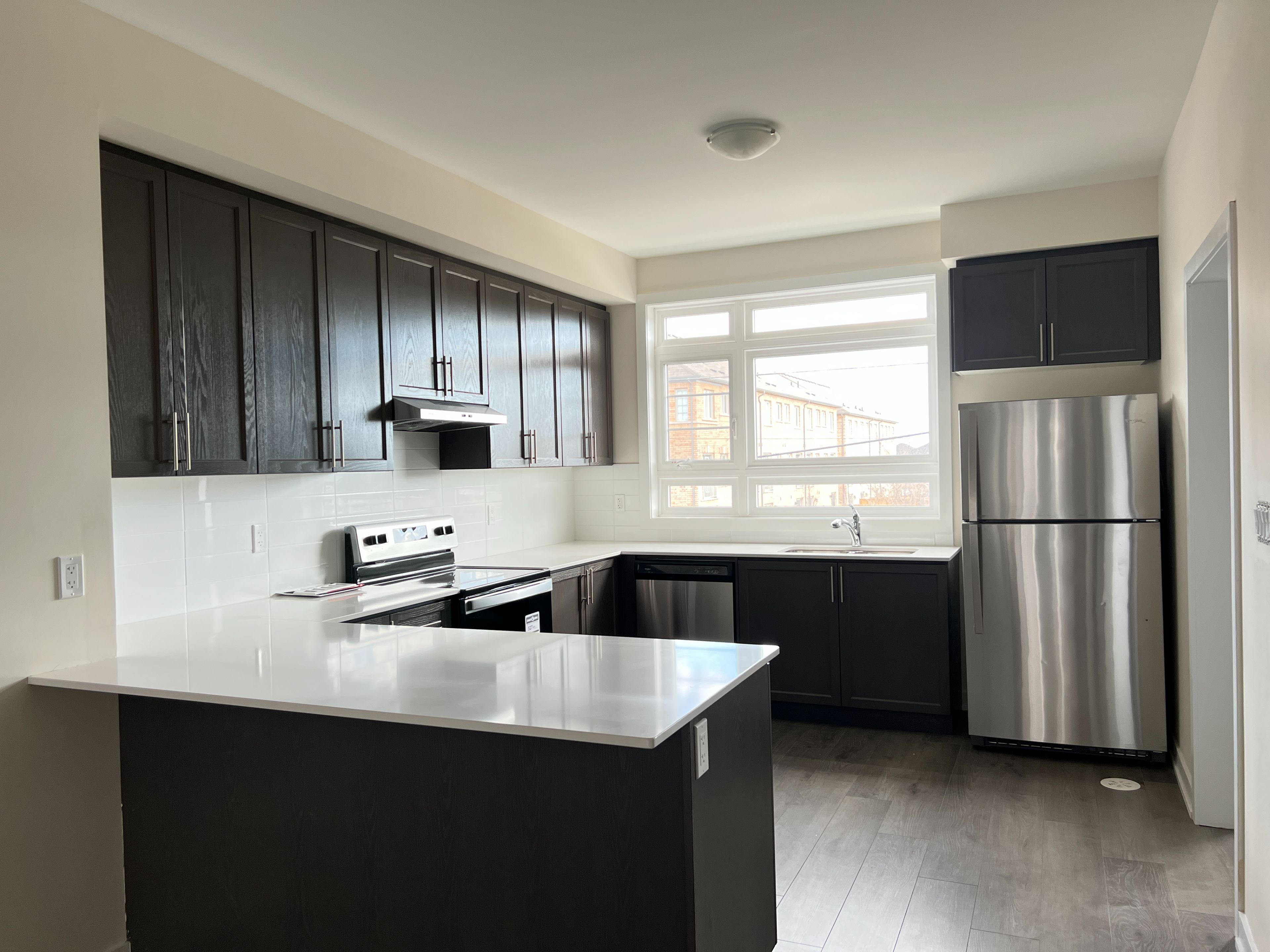Offer anytime. Welcome to this smart townhome. Like new. Prime location. Lots of upgrades, 9' ceiling. Spacious greeting room. Open concept to kitchen, balcony, laminate floors throughout, modern kitchen with granite counters, breakfast bar, extended pantry and cabinets, upgraded interior doors, tiles, stairs and railings etc. Lots of windows. A must see. Close to groceries, pharmacy, shopping etc.