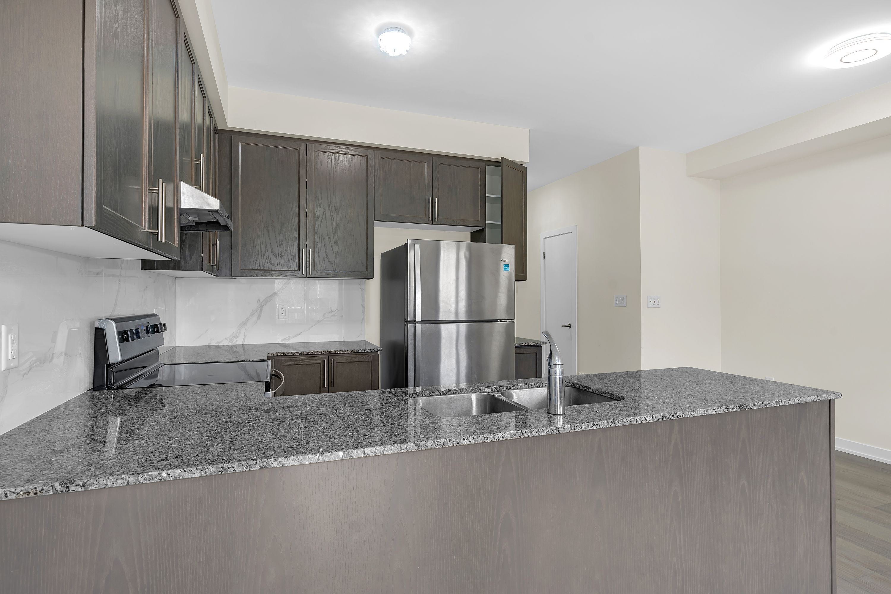 • Modern kitchen features granite countertops and stainless steel appliances.